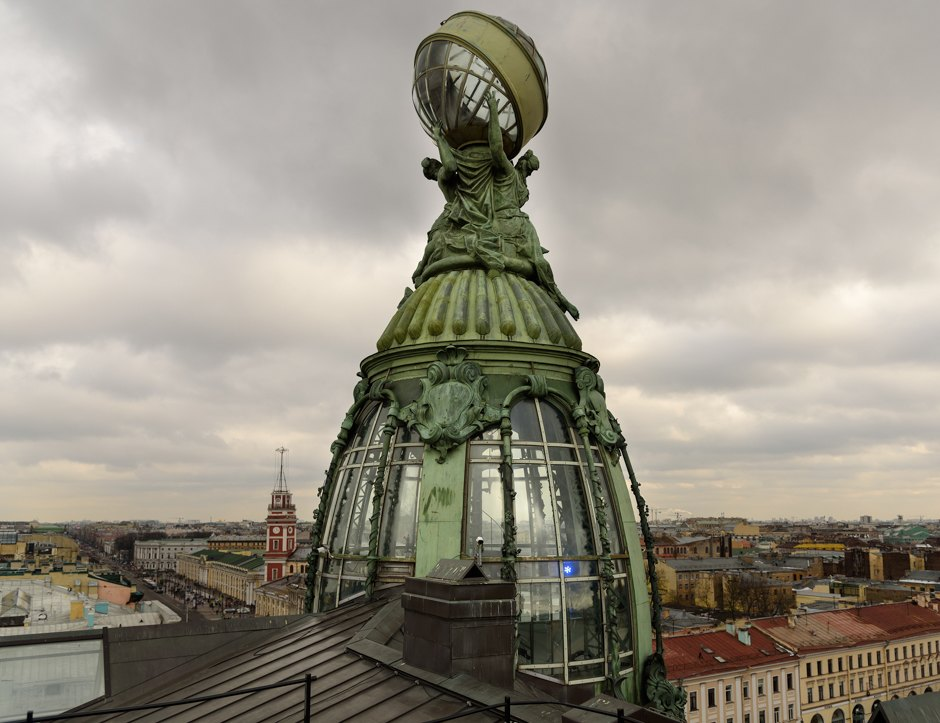 При желании ты можешь найти примеры модерновых зданий с ещё большим использованием стекла и металла на фасада, и с огромными застеклёнными крышами. Пожалуй, Дом Зингера даже не будет лучшим примером - но единственным, чей образ прочно засел у меня в голове, так что использую его.