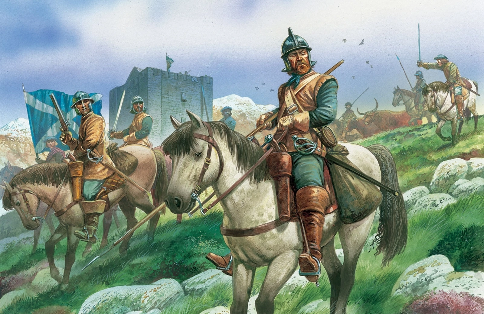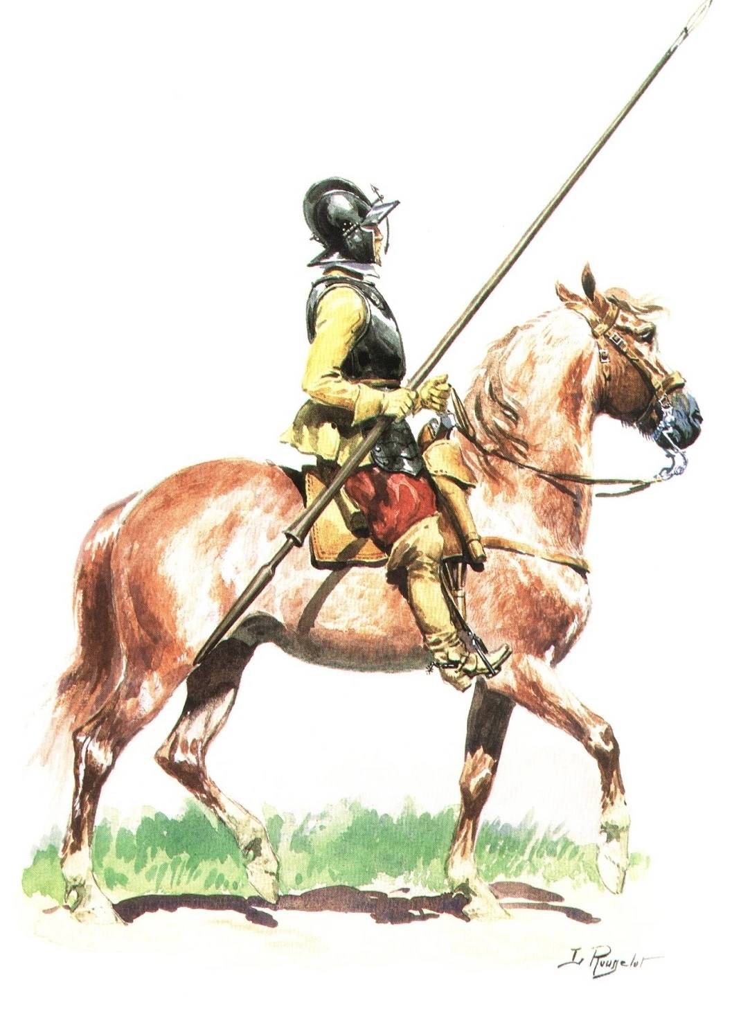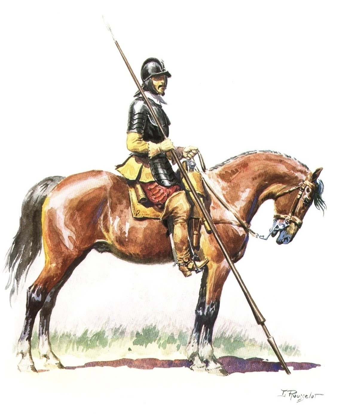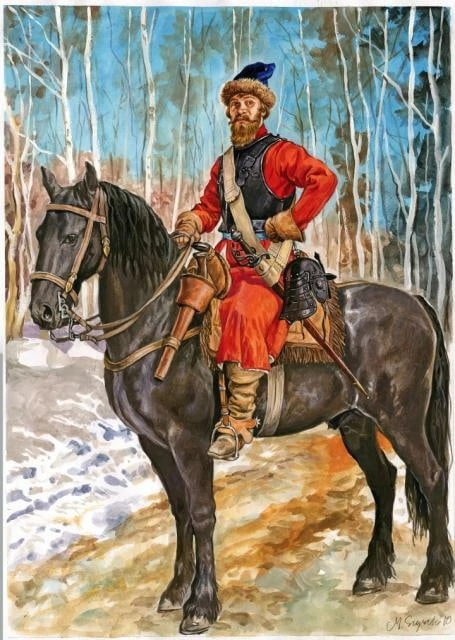 >>581449 1. Конь слишком большой, европейский, должен быть мелкий, ногайской породы 2. Конское оголовье с мундштуком а должно быть трензельное, как у поместного 3. Шпага, должна быть сабля (шпаги рейтарам не выдавали, у них были свои сабли) 4. Европейские сапоги со шпорами ( у рейтар были русские сапоги, без шпор, управляли конём плетью как поместные) 5. Нет карабина, а он должен быть, у русского рейтара могло не быть лат и пистолей, но карабин как основное оружие рейтара-аркебузира всегда был.