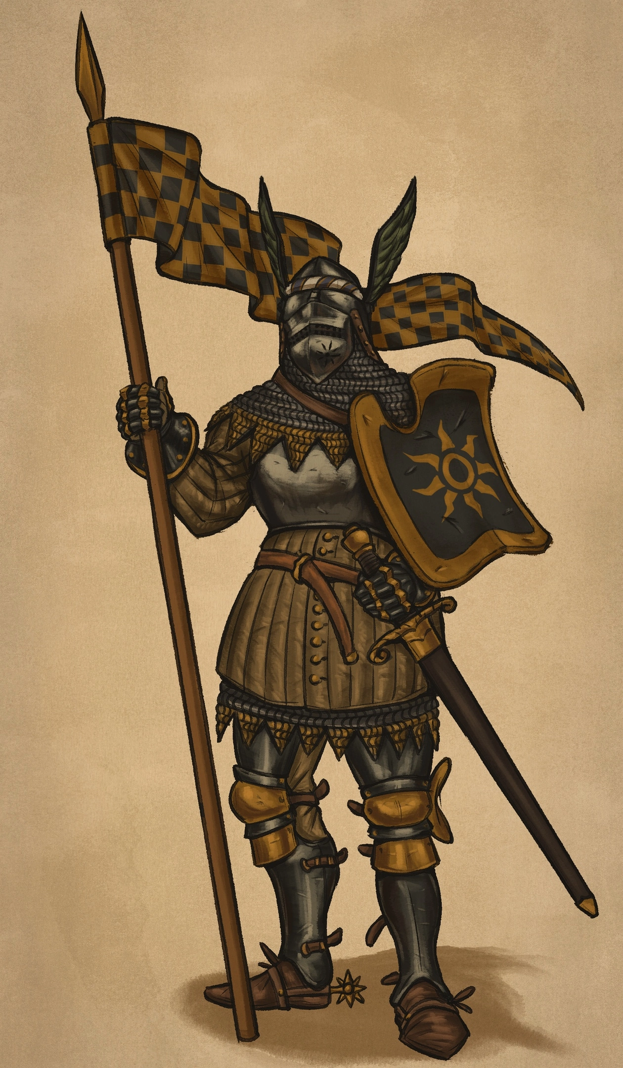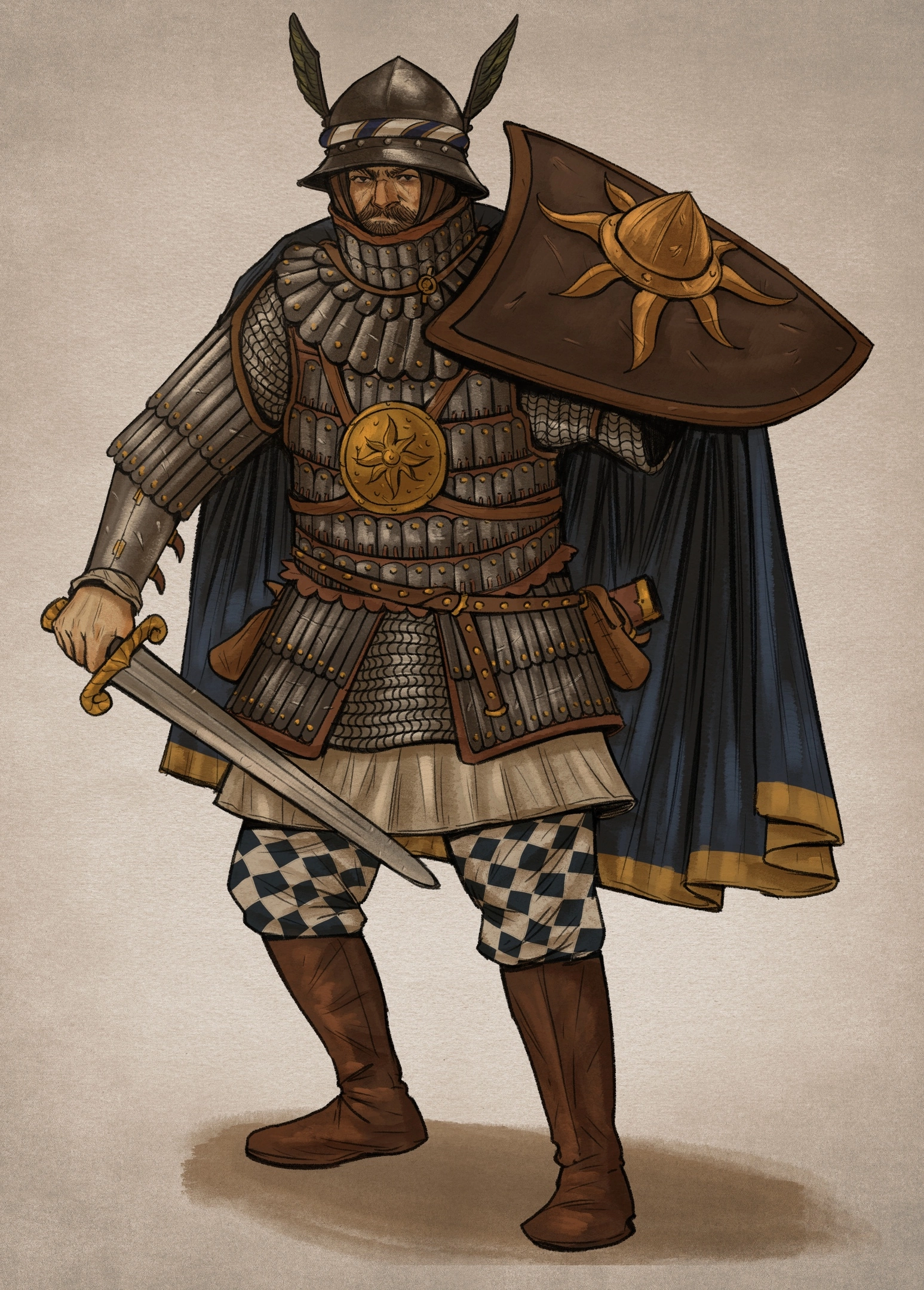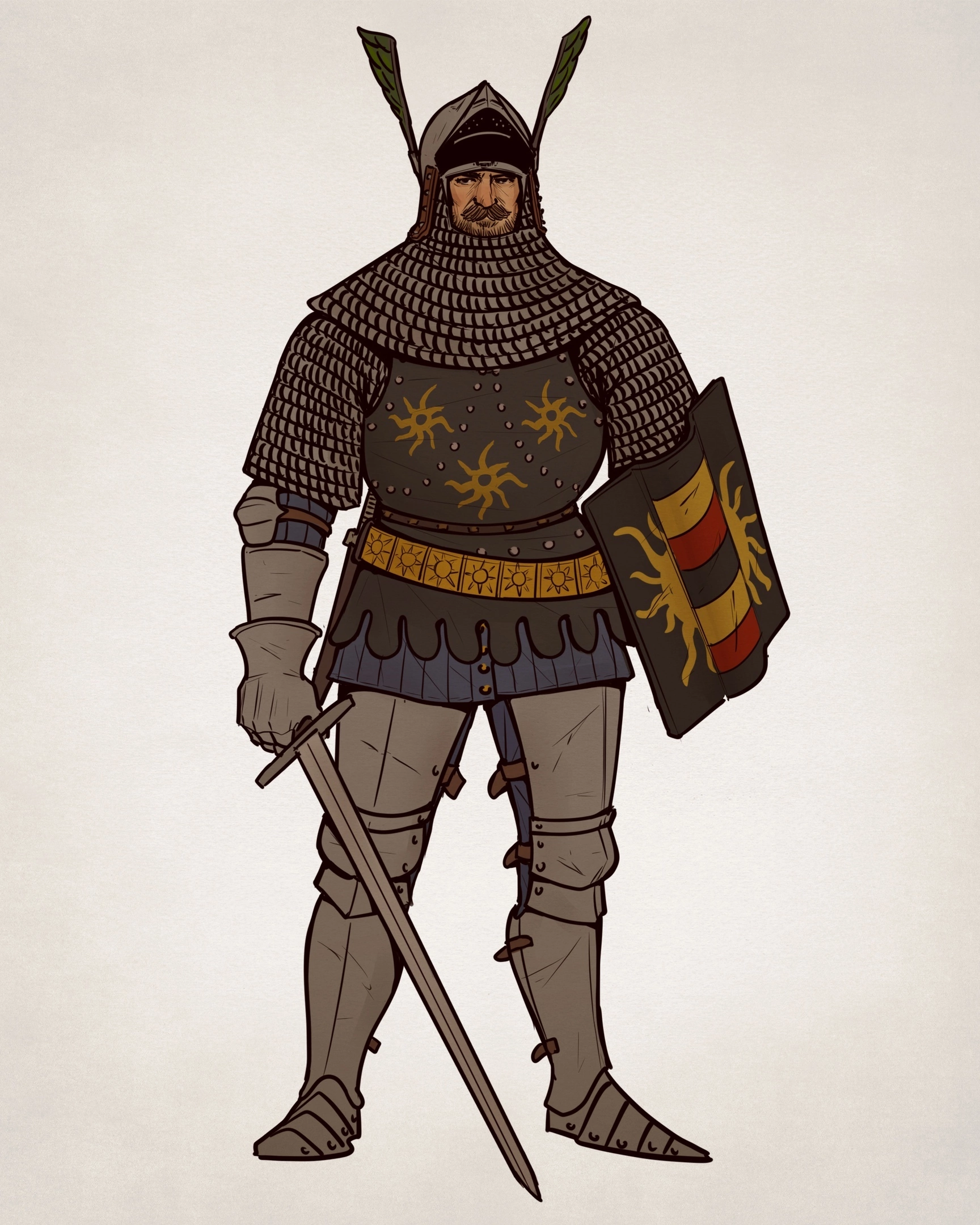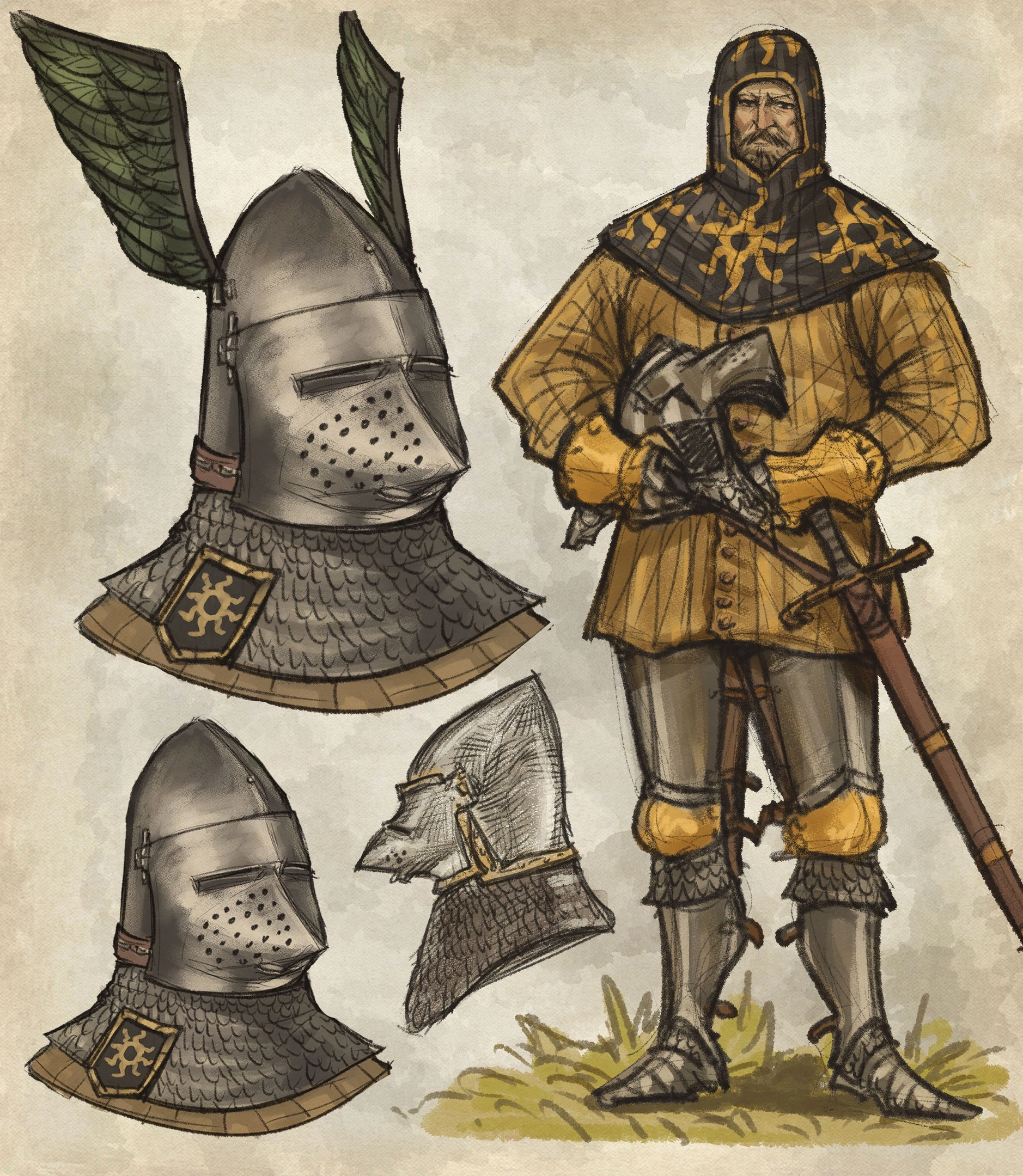 >>582555 >меч для всякого, да шестопер на бедре для доспехов ИРЛ так и было. К мечу и щиту брали клевец/булаву/топор, кинжал(илногда два), копьё(мы же сейчас про рыцарей, раз уж они в доспехах?) Просто ситуации бывают разные, допустим сэр 3/4 с морионом изъявил желание согрешить с мамкой сэра в максимиллиановском фуллплейте и они решили уладить вопрос в поединке.