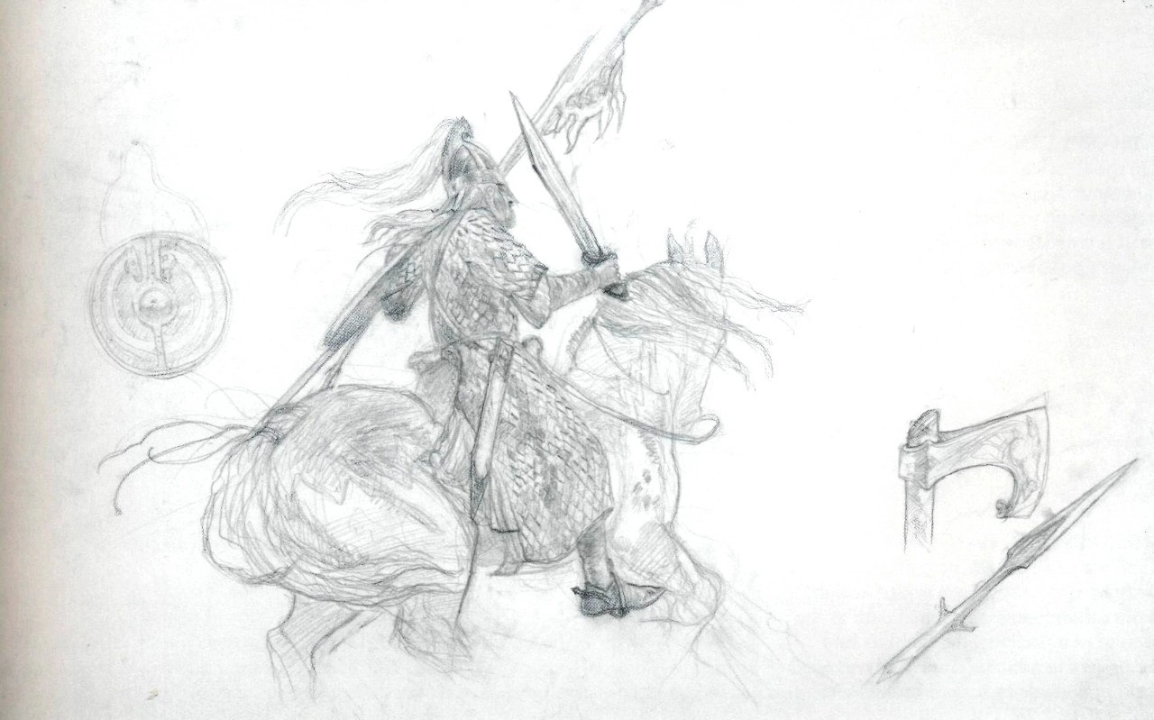 >>584606 Ты почитай как у Толкина описываются рохирримы, они не выглядели как чисто фэнтезийный народ, он еще в письме написал что костюмы и доспехи с гобелена из Байе им бы подошли, в другом он написал что у него примерно уровня 500 года костюмы и доспехи. Что мужчины на северо-западе Средиземья носили плащи, туники и штаны он также там упомянул. В самом тексте ВК всадники Рохана в кольчугах до колен, в лёгких шлемах, с длинными копьями, мечами и щитами.
