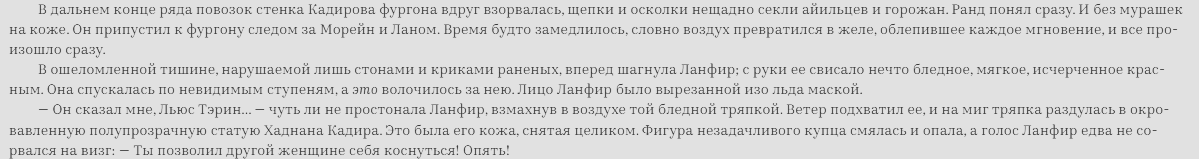 И я еще понимаю, если бы ты начал пиздеть за айил и фрименов из Дюны, тут еще можно было бы дискутировать о чем-то, но блять ВК и КВ имеют какие-то пересечения буквально в одной книге (из 14 нахуй). Колесо это про Избранного, про бдсм, про судьбу. Автор придумал концовку еще до того как начал первую книгу писать. В то же время Толкин сам говорил, что писал ВК "в реальном времени" без загадываний наперед. Книги не только сюжетно (это вообще смешно обсуждать), но и в базовых принципах подхода к написанию разные. И когда я говорю книги, я имею ввиду цикл в общем, нет смысла обсуждать отдельно первую книгу, потому что это буквально 5 процентов от истории (на самом деле еще меньше из-за экспозиции и объяснений лора).
