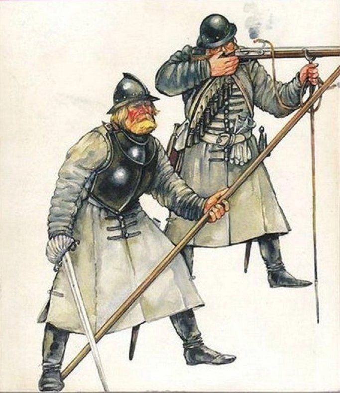 >>588993 Рейтары в 1650-1630 носили 3/4 доспех, аркебузиры, которые появились позже рейтар, примерно с рубежа 16-17 вв., носили полудоспех или одну кирасу и открытый шлем. Кирасиры 1640-1700 носили кирасу и шишак. Аркебузиры и рейтары (кроме шведских, польских и русских рейтар) исчезли во второй половине 17 века. Остались кирасиры и драгуны.