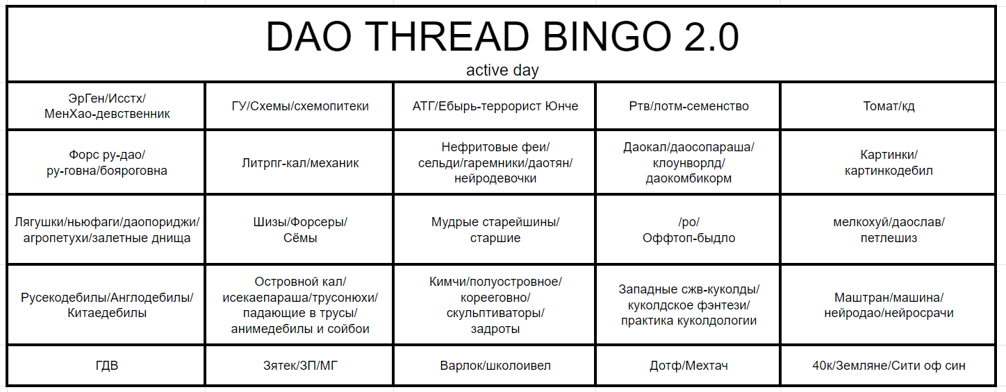 Сокровищница опыта предков: https://controlc.com/8c9feeea - Шапка, предыстория нашего ДАОтреда, ссылки на наиболее популярных переводчиков, аббревиатуры, архивач и русек.