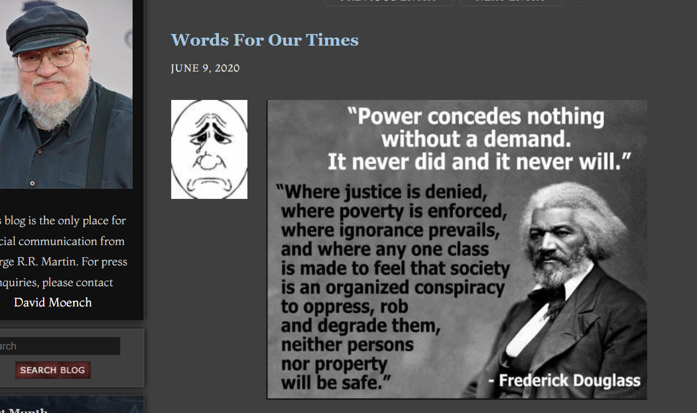 >>601139 Не не не, чел, ты не выкупил. Я говорил именно о современной версии повестки в том случае. Но там же я сказа что Мыртыня у нас адепт Демпартии. Американский прогрессит, хули, он с 70-х пишет в русле прогрессивной общественности. Просто повестка поменялась, что было одобряемыми заповедями 30 лет назад, нынче подлежит отмене. Допустим вот Мартин когда-то давно писал в своих сай-фай романах про черных женщин, которые там трахались со всеми подряд и исповедовали сексуальную свободу. Тогда это было збс, сейчас его за это отменили бы мгновенно. Сексуализация женщин, да еще и черных, все дела. Я кстати удивлен что его до сих пор не шпыняют за ту самую культуру Летних островов. Как так то, представлять черных людей в виде какой то упрощенной сексуализированной карикатуры. Помнится накинулись на него только лет пять назад, и то по какому то странному поводу, когда он неверно произнес на какой то премии имена цветных писателей.