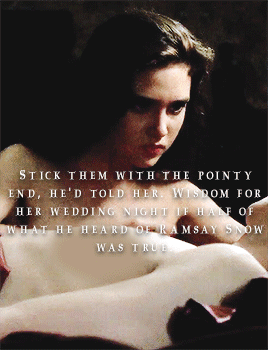 "Would she still have that little sword he’d had Mikken forge for her? Stick them with the pointy end, he’d told her. Wisdom for her wedding night if half of what he heard of Ramsay Snow was true." - Jon XI, a Dance with Dragons