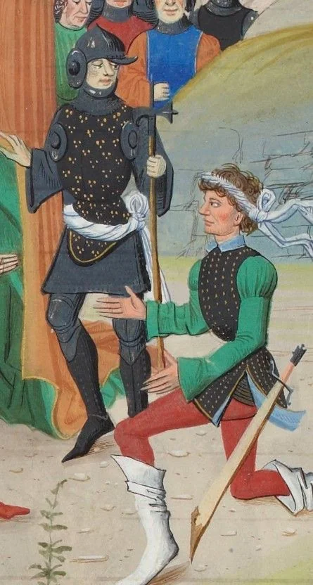 Westerosi armor does not correspond one to one with any single period in European history, but I suppose it is closest to the armor of the Hundred Years War. Not only Agincourt, but also Crecy and Poitiers before that. Of course, there were important changes in armor between each of those battles, but there were also holdovers, individuals who had used or older armor, styled from the earlier period. I took that trend considerably further in Westeros, and felt free to mix armor styles from several different periods. You will also note that Westerosi armor tends to "later" styles as you go south. Plate is more common in the Reach say, while mail is more the rule in the North, and beyond the Wall the wildlings have very crude primitive stuff.