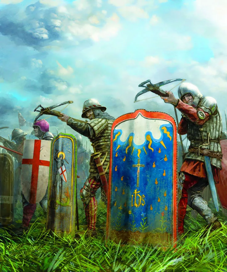 Вот смотри - изо из ирл. Что видим: укол меча пробивает кирасу/бригантину, наносит рубленые раны через шлем, мечи со щитом/баклером - стандартное оружие рыцаря/man-at-arms (фиг знает, как на русский перевести, "тяжёлый воин"?). Алебарда одна- на земле валяется.