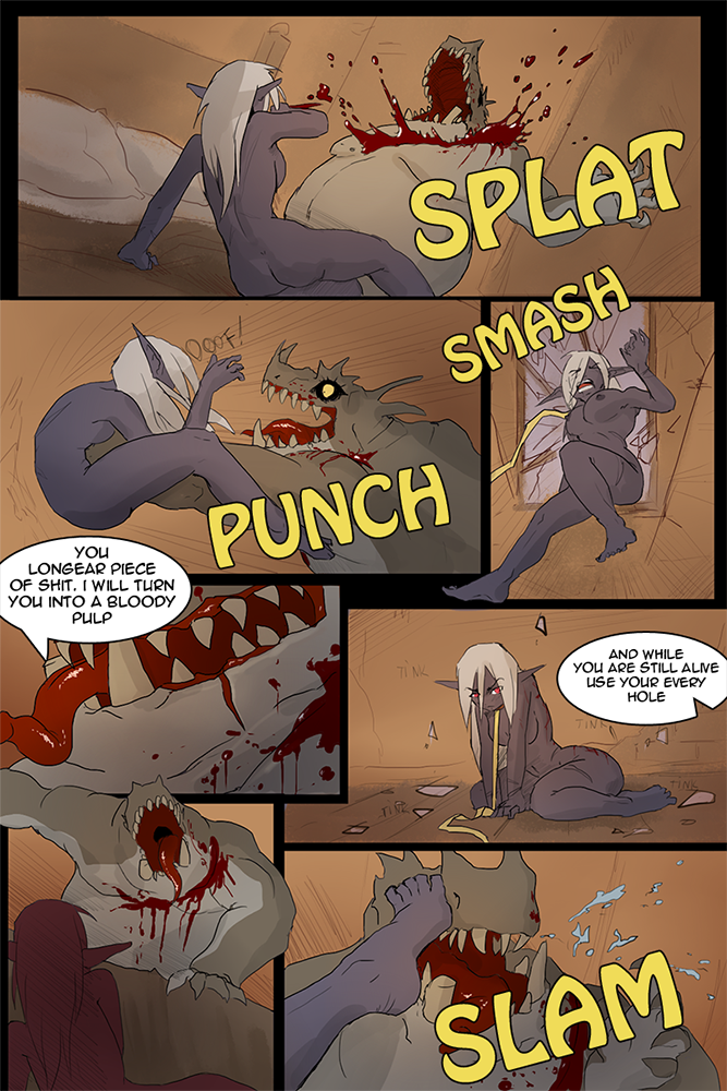 Например, дракон похитил принцессу, благородные рыцари отправились её спасать, выполняя обет, при этом один из них влюблён или даже помолвлен с принцессой, но дракон их победил, кого сжёг, кого в плен взял и доставил в свой замок (скажем, он на самом деле злой колдун-оборотень) где некоторых сломал пытками, заставив выдать важные секреты и отправить в качестве выкупа на съедение/поругание жён и дочерей, а главного героя-рыцаря на глазах у его возлюбленной анально изнасиловал, а потом его оторванной рукой на его глазах (ещё живого), изнасиловал его возлюбленную.