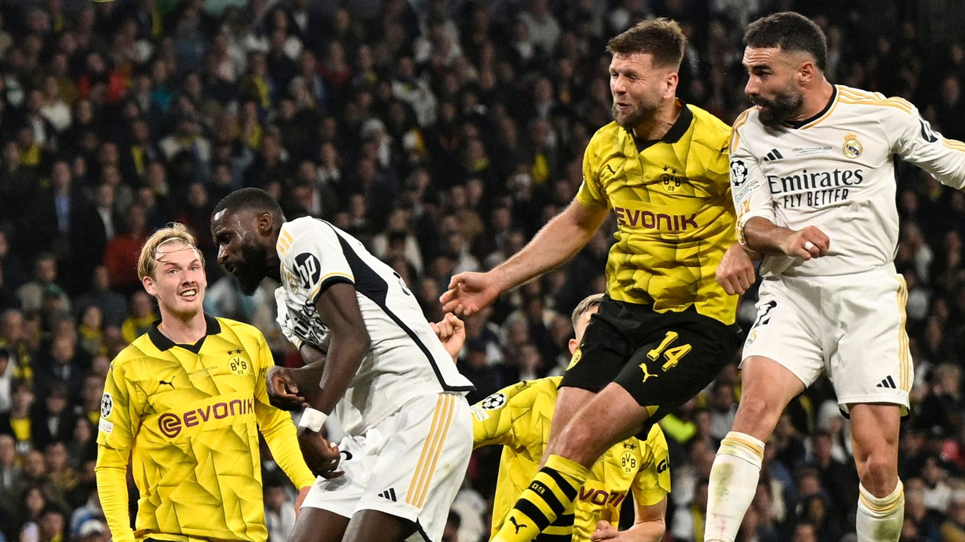 >2024 - даже если забыть 1/4 с Сити, реально случайно вышедший в финал Дортмунд допустил у своих ворот меньше, чем Реал У Боруссии все моменты были в первом тайме. Никто из игроков Реала не был виноват в том, что дегенерат Адейеми запутался в собственных ногах, хотя моменты там были более убойные, чем в финале с Ливером в 2022. Во втором тайме Реал уже на классе таких игроков, как Кроос, Карвахаль и Модрич дожали очередную чашку. Даже если бы боруська запихала гол в первом тайме, я уверен, что Мадрид также бы дежурно отгрузил двушку.