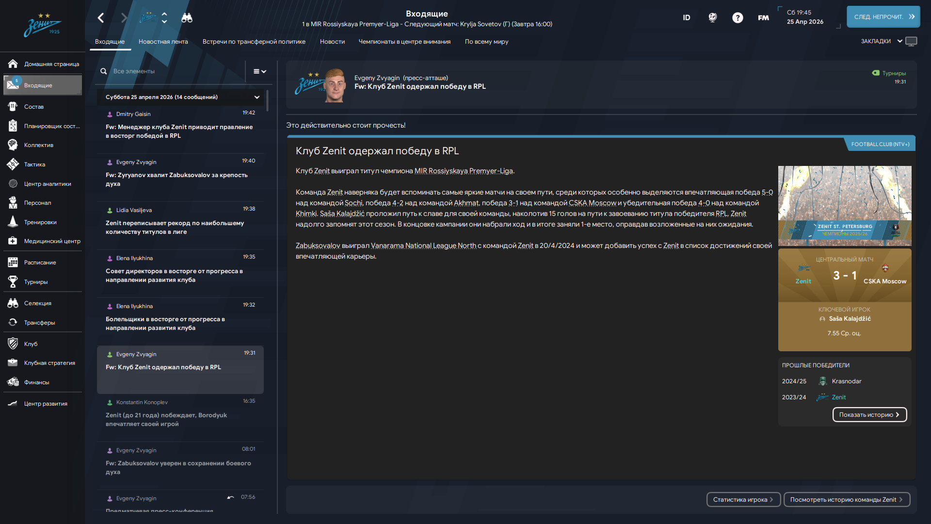 Сначала мы выиграли Северную Ванараму, затем ушли на повышение в дубль Краснодара и после года в ФНЛ перебрались в Зенит, где будем сражаться за титул, качать репутацию с лицензиями и смазывать лыжи в Европу.