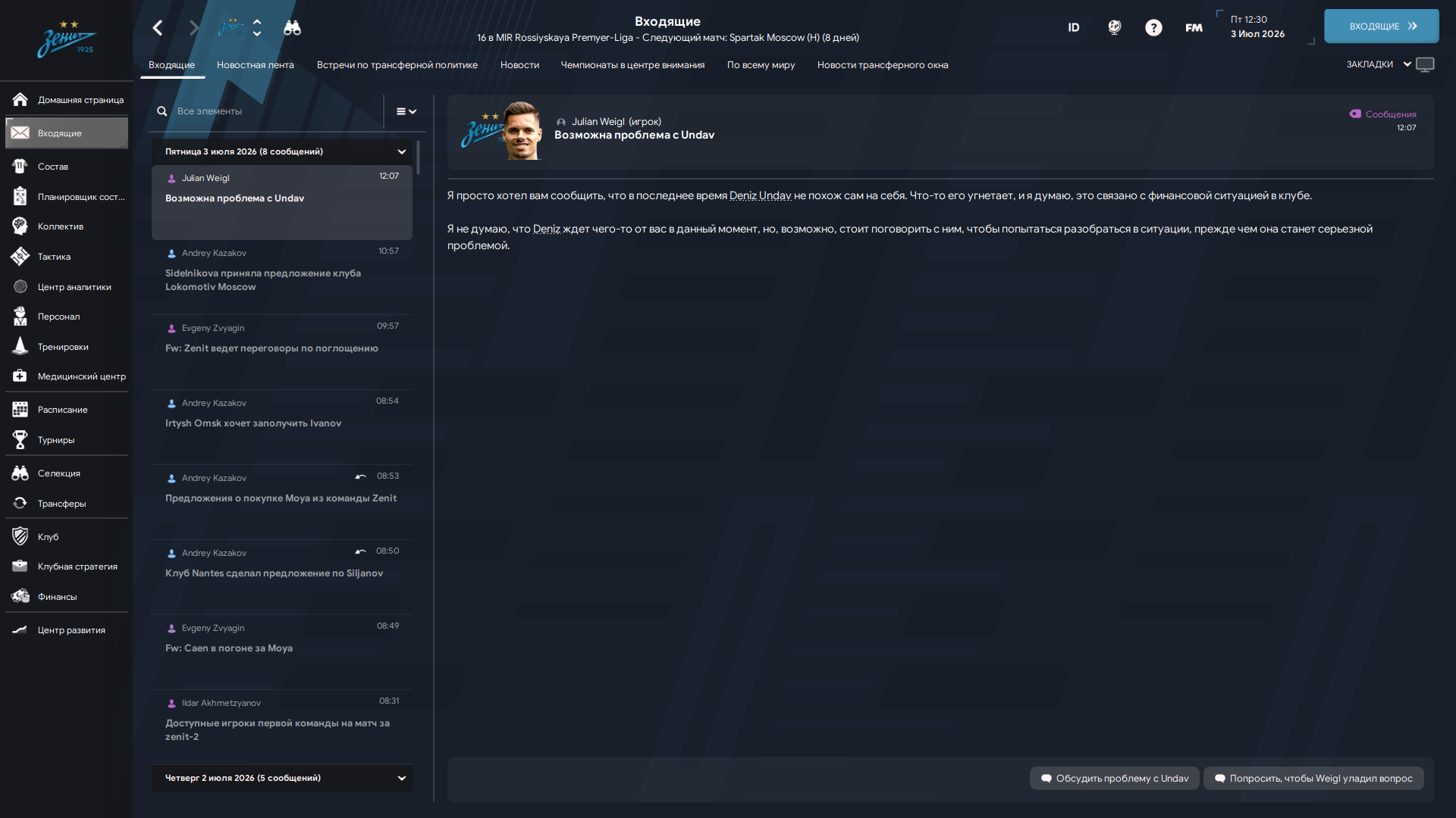 Вот и всё, мужички. Я с Зенита убежал, роняя кал, ещё летом, когда продали Клаудиньо за двадцатку и выстроилась очередь разбирать моих самородков за копейки, посчитал, что найду какой-то клуб явно себе для последней лицензии и для роста репутации - ничего не подвернулось, кроме Болоньи, стал ждать. Осенью-зимой всегда хороший шанс поймать удачу за хвост, ведь все толковые тренеры уже при работе и нужно выбирать из того, что осталось.