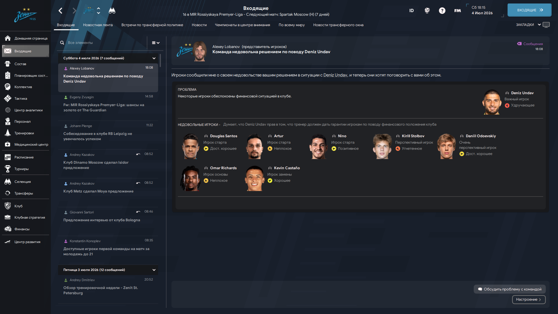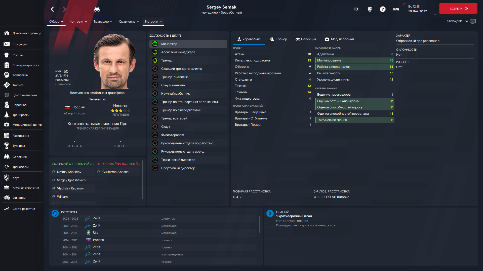 Я разобрался, кстати, с пропажей Семака - он после своей отставки стал директором в Зените, из-за чего стал недоступен в базе, сейчас сменилось руководство, Серёгу выгнали и он снова может тренировать.