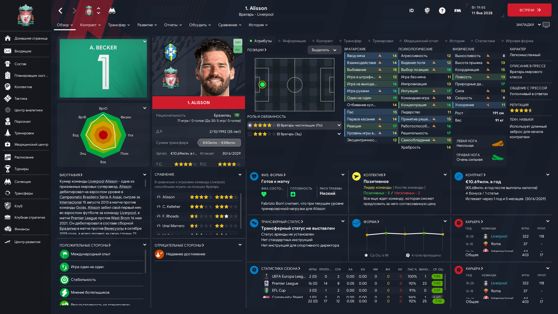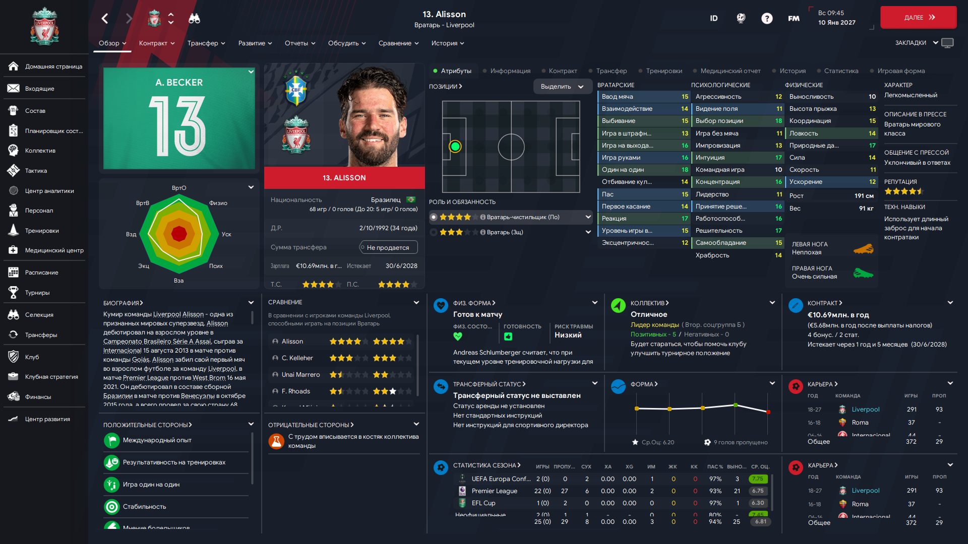 Легендарный голкипер, которого в этом сезоне не пинает под говно только ленивый, сдающий ветеран, но надеюсь, мы вдохнём в него жизнь - Алиссон.