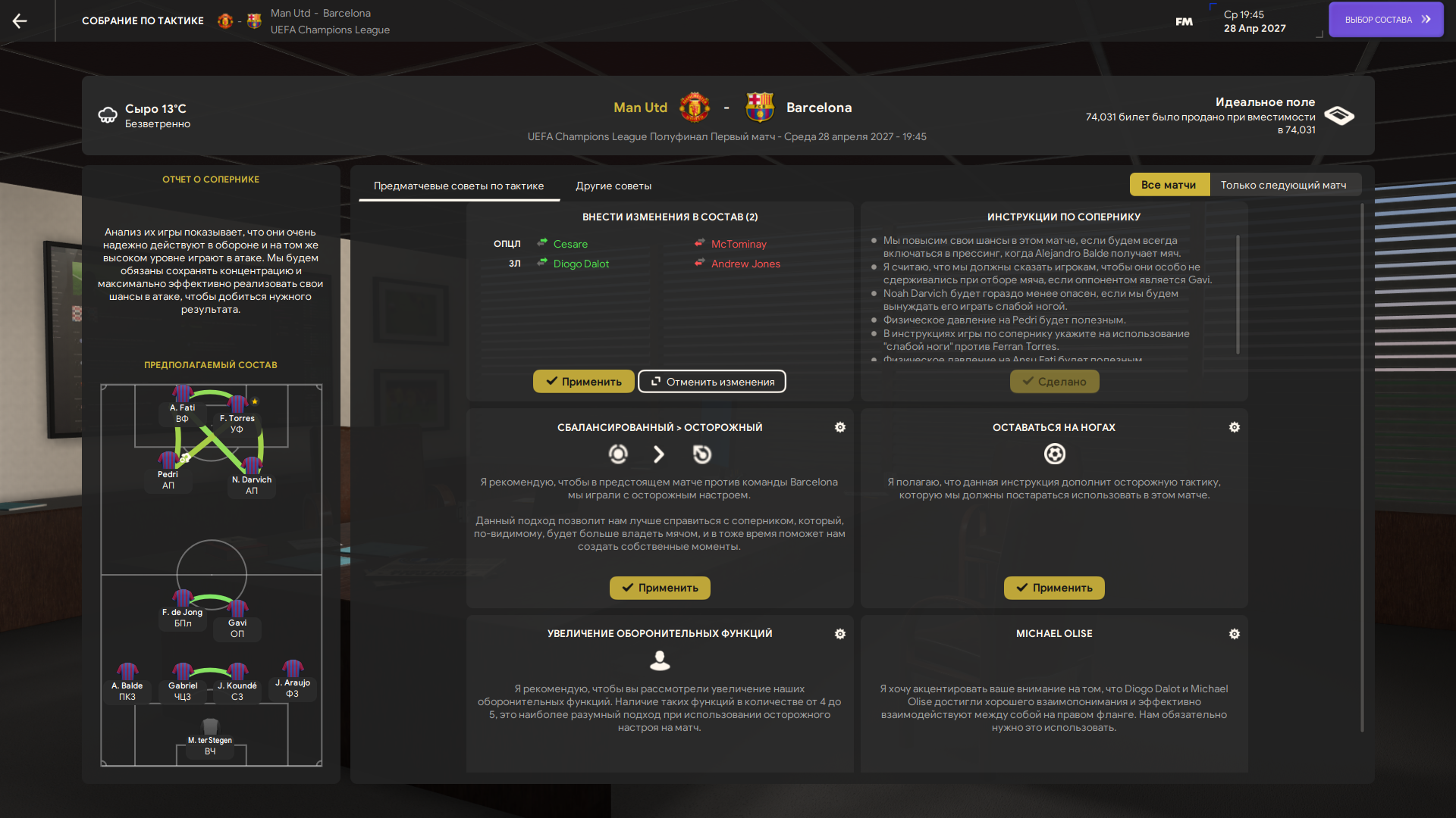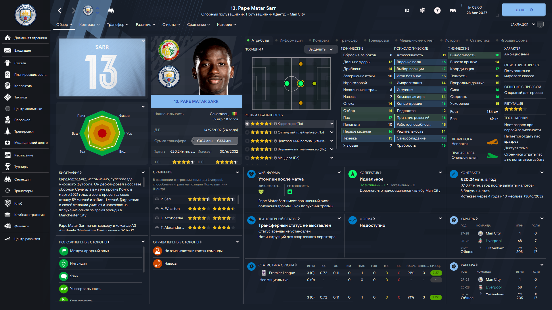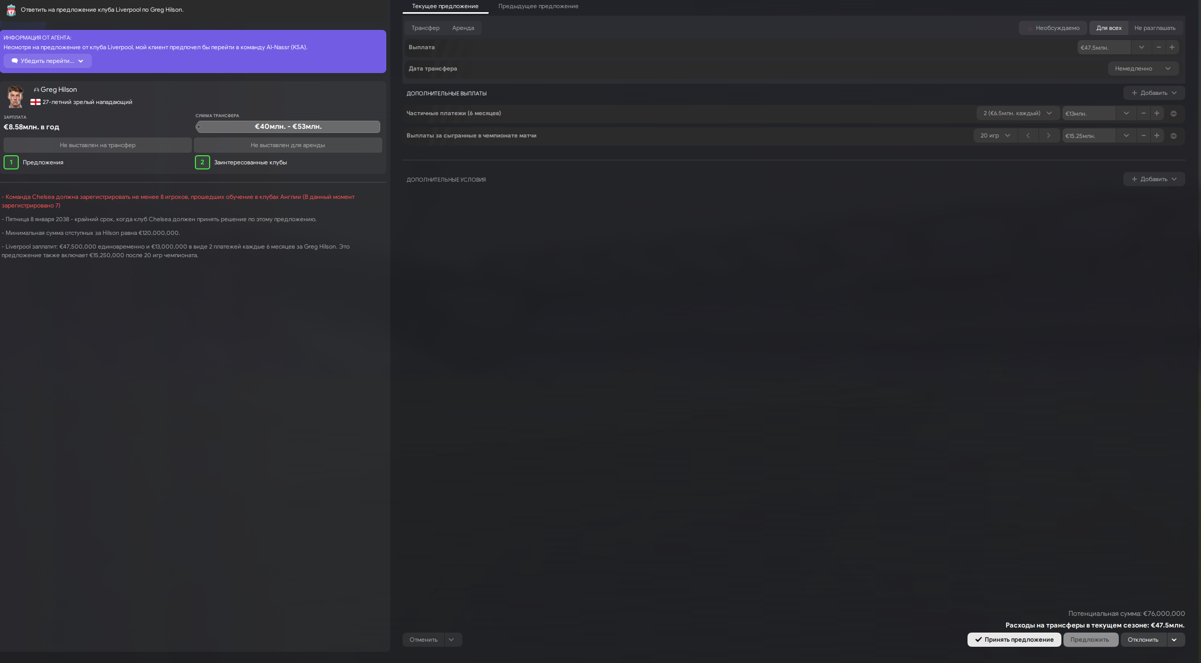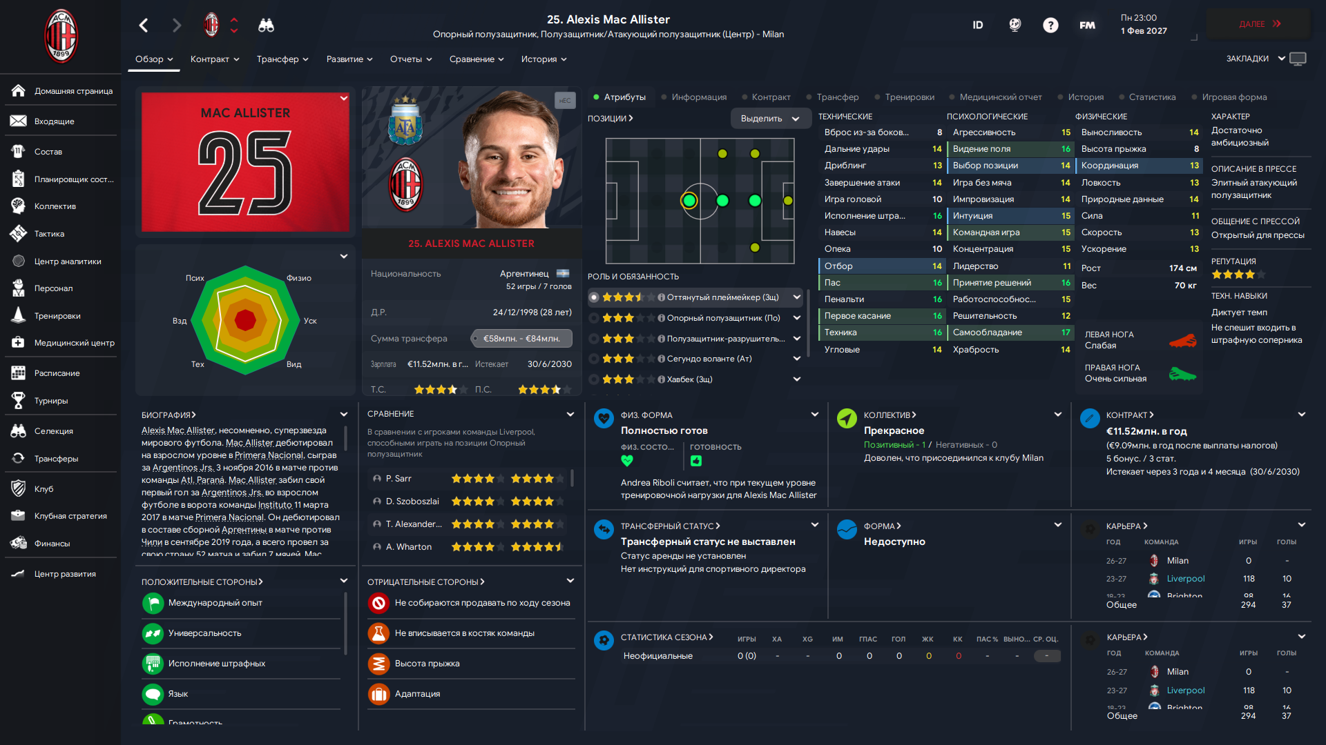 Милан вышел на Маккалистера, тот полез в залупу и мы договорились на 60+ лямов, в итоге отдали в Милан за 64(78) миллионов евро, жаль, но что поделать, беру на вооружение тактику Пепа из реальной жизни и никого силой не удерживаю. Разве что силой европейского рубля, который должен заплатить заинтересованный клуб.