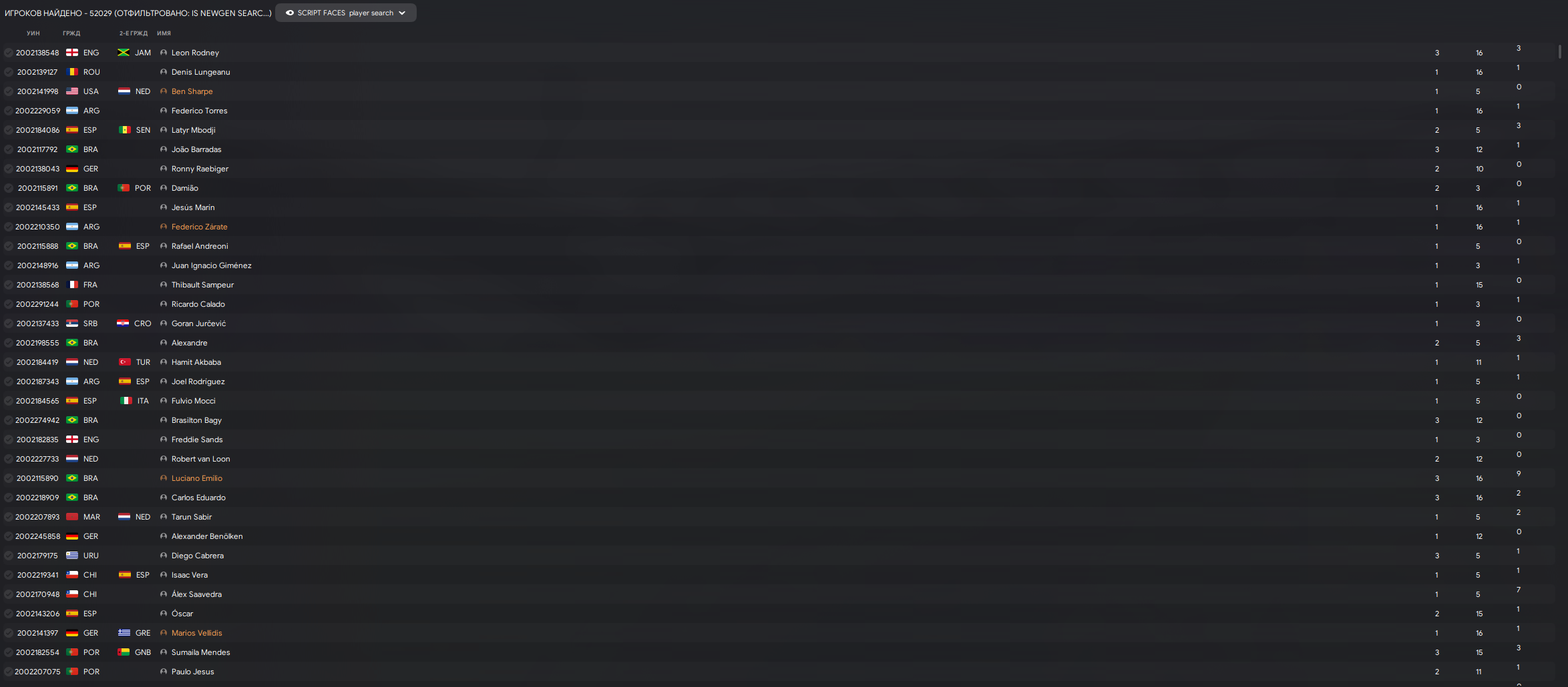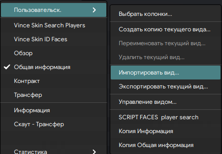 после этого возле кол-ва отсортированных игроков проваливаемся в меню настройки вида как на пике 2. идём соответствующим путём. пользовательский > импортировать вид > документы/sport interective/football manager 24/views/SCRIPT FACES player search снова заходим в настройки вида > пользовательский > выбираем только что импортированный скрипт. если все сделал правильно, то выдача приобретает вид как на 4-ом пике