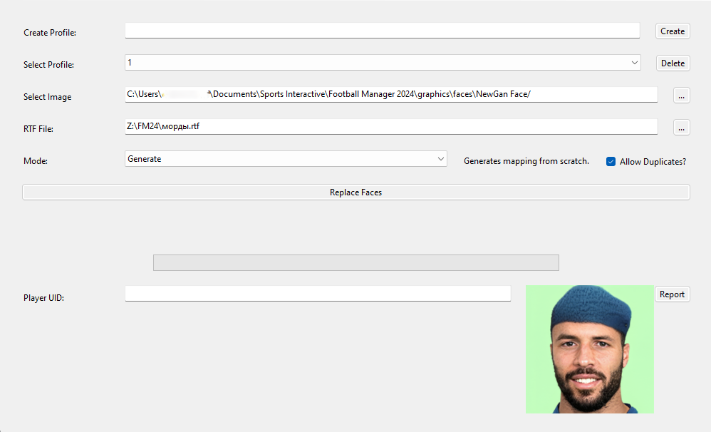 на всякий случай перепроверь в настройках поисках что убрана галочка исключающая из выдачи твоих игроков. дальше. выделяем любого ублюдка прожимаем комбинацию клавиш ctrl + a. игра может зависнуть на несколько секунд. все зависит от твоих железяк. после того как все ублюдки стали выделены прожимаем ctrl + p > в текстовый файл > обзываем и сохраняем в любое удобное место, от себя рекомендую папку faces))))))) теперь пиздуем в утулиту. создаем новый профиль, выбираем его в менюшке ниже, еще строчкой ниже указываем путь к папке с ебальниками, в строке RTF file указываем путь к текстовому файлу который ты сохранил в удобное место. при ПЕРВОМ использовании утулиты в самой нижней менюшке выбираем "generate". в дальнейшем, каждый раз желая обновить ебала вновь родившимся регенам будешь нажимать "preserve". после того как выбрал "generate" жмакаем "replace faces". ждем, разворачиваем игру, заходим в настройки и перезагружаем тему. чекаем результат, все должно быть чин чинарём. всё это так муторно только первый раз. в дальнейшем все что от тебя требуется это раз в год, я обычно это делаю в летнее ТО, так же сортируй игроков используя импортированные ранее фильтры, не забывай снимать галочку, сохранять текстовый файл и в самой утилите не забывай менять "generate" на "preserve". вроде бы всё должно получиться. дерзай
