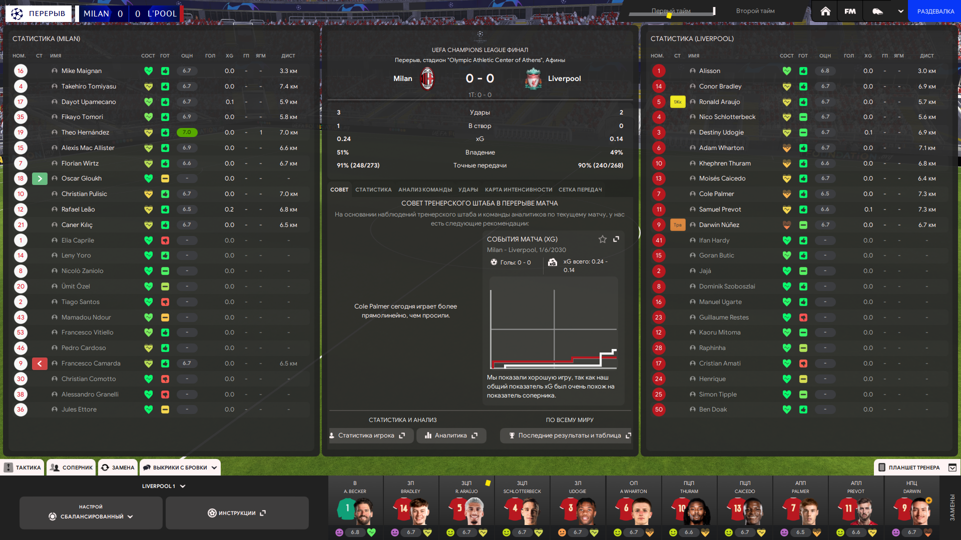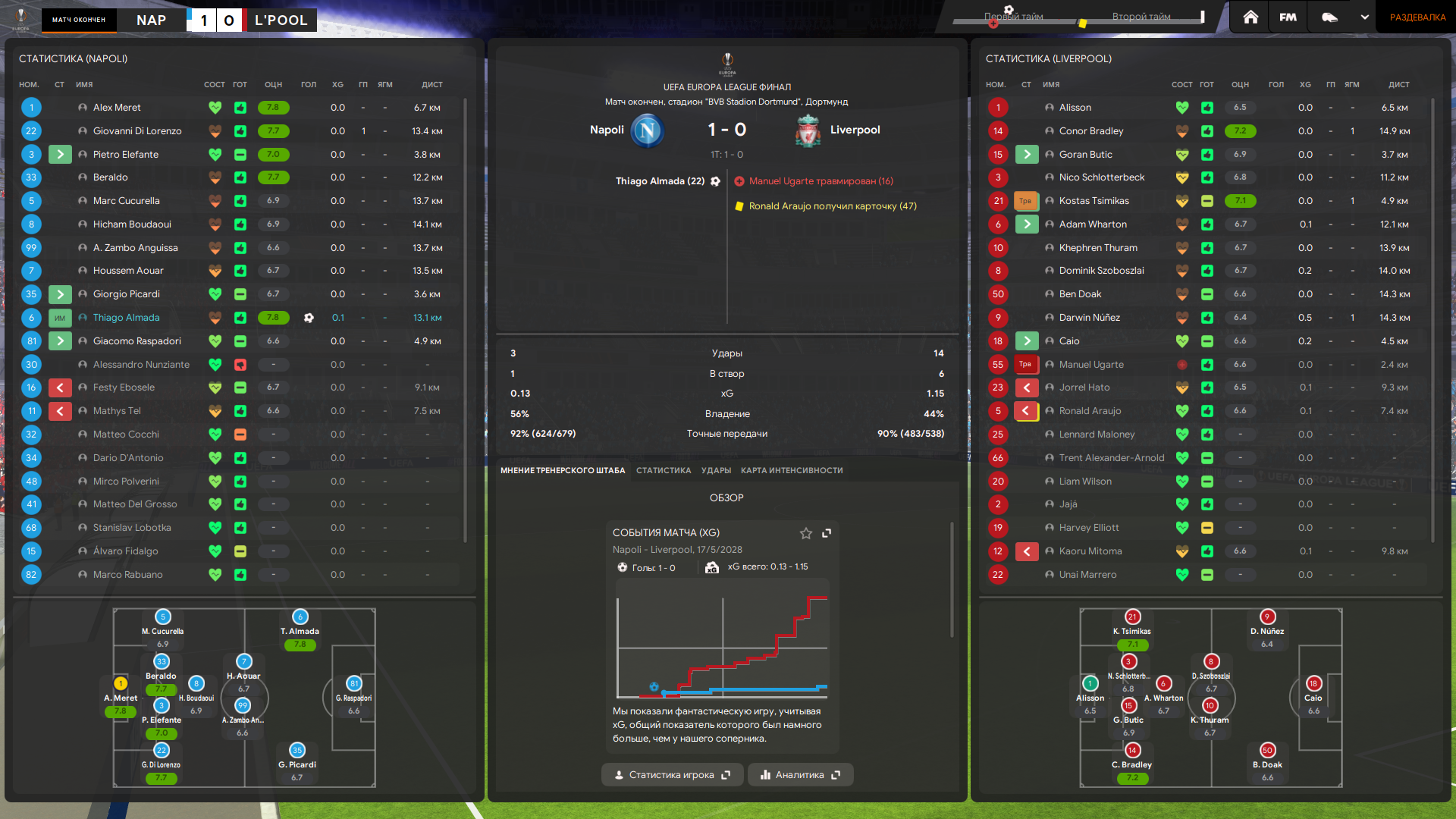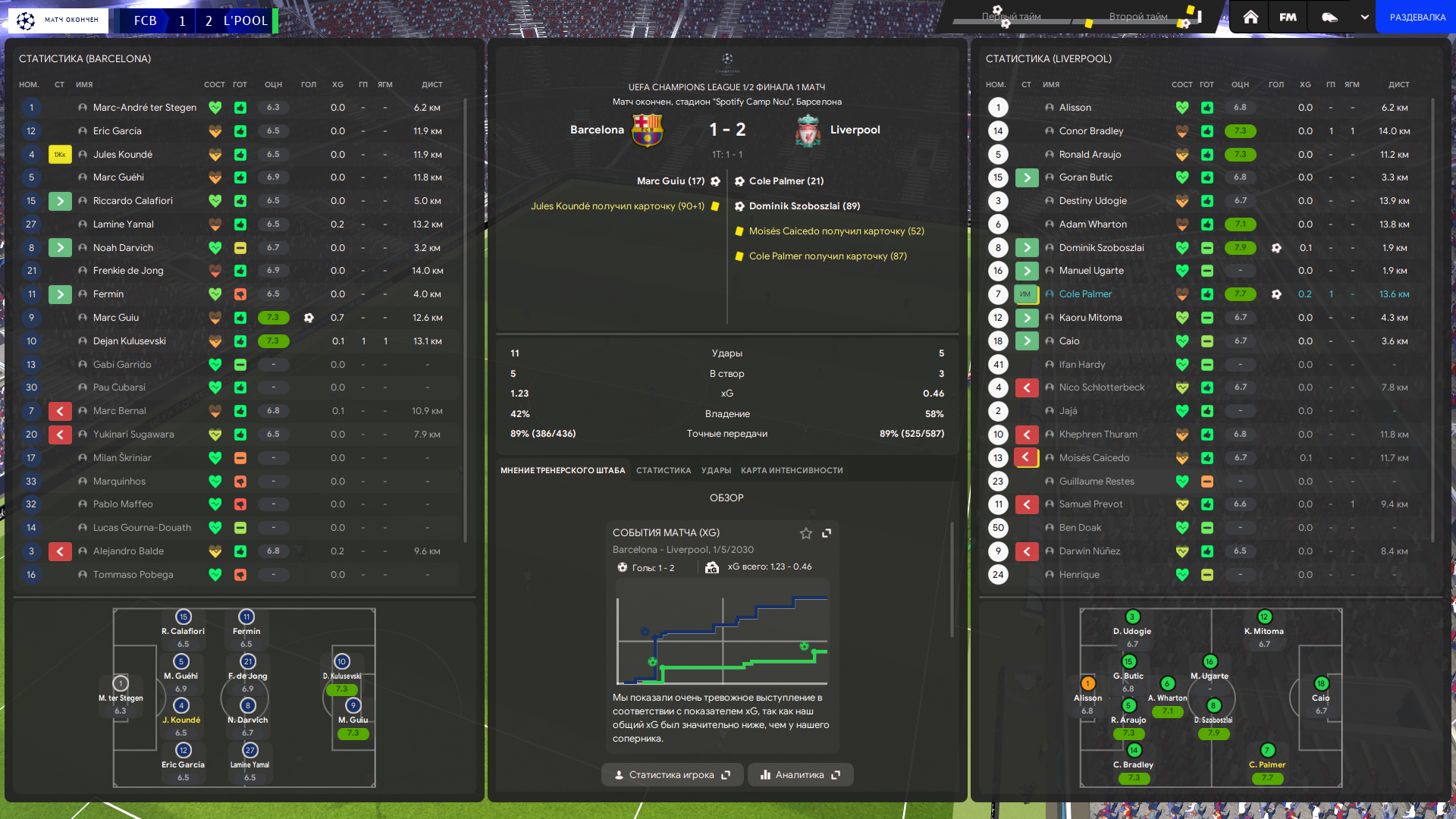 Дальше перестановки, смены тактики, блять, атака, атака, атака, атака - ворота Ливерпуля заколдованы, больше Ливер сам вообще ничего не делает, мы забрали игру, но мяч не заходил, голкипер выдал гигаперформанс.