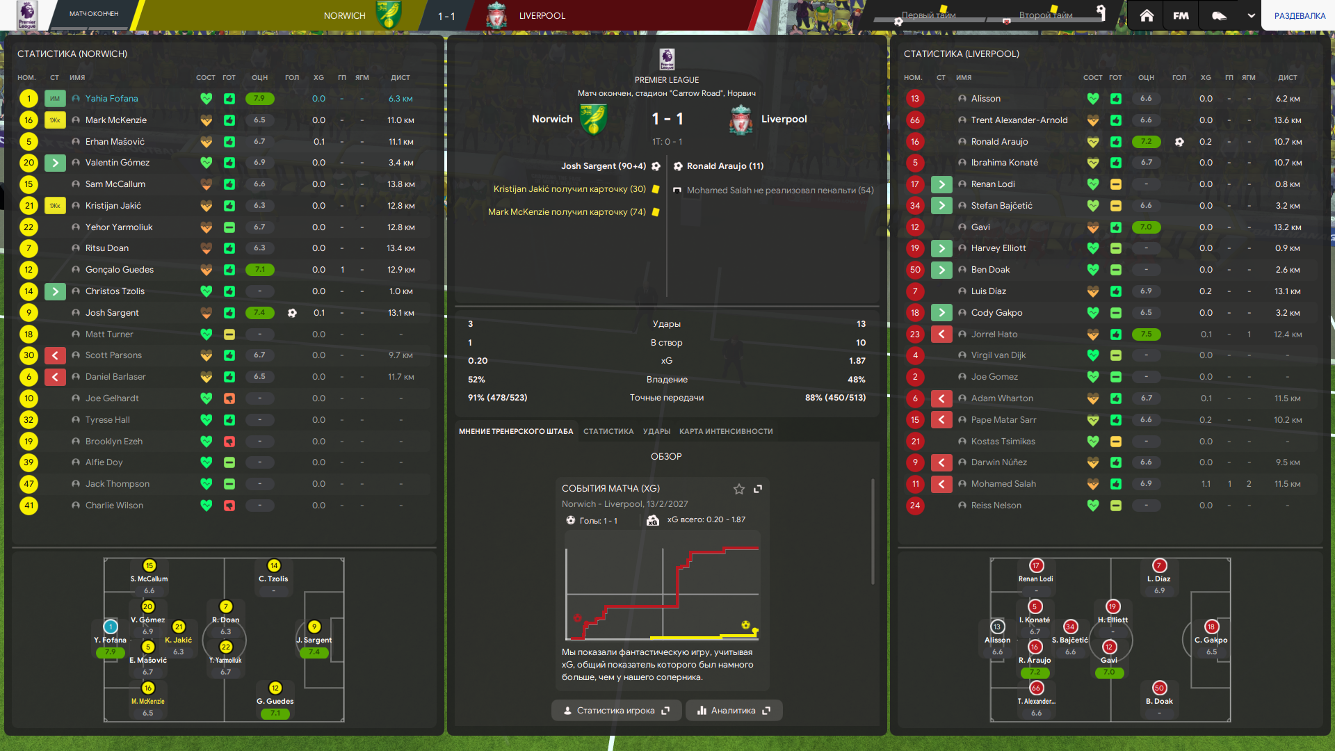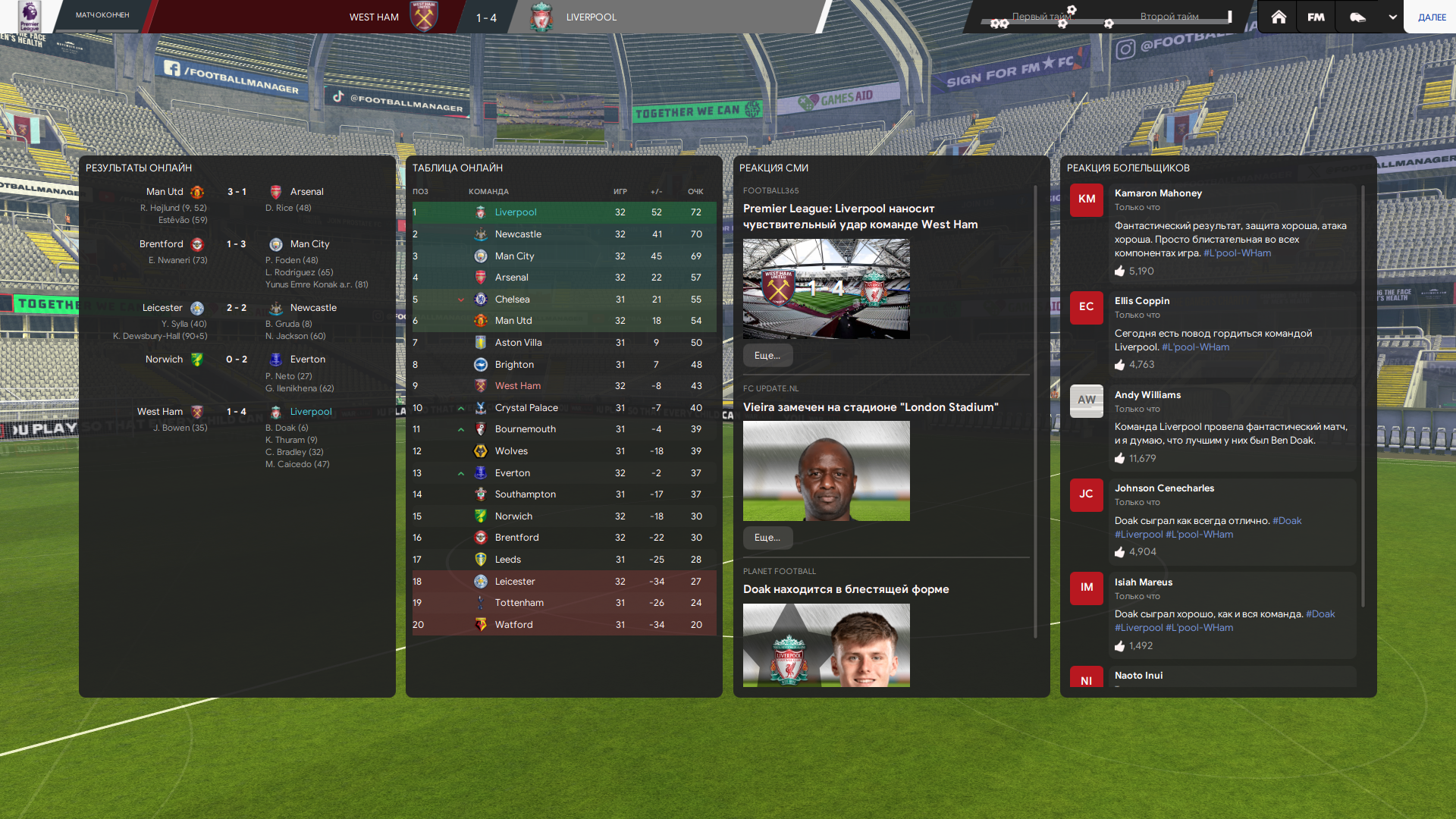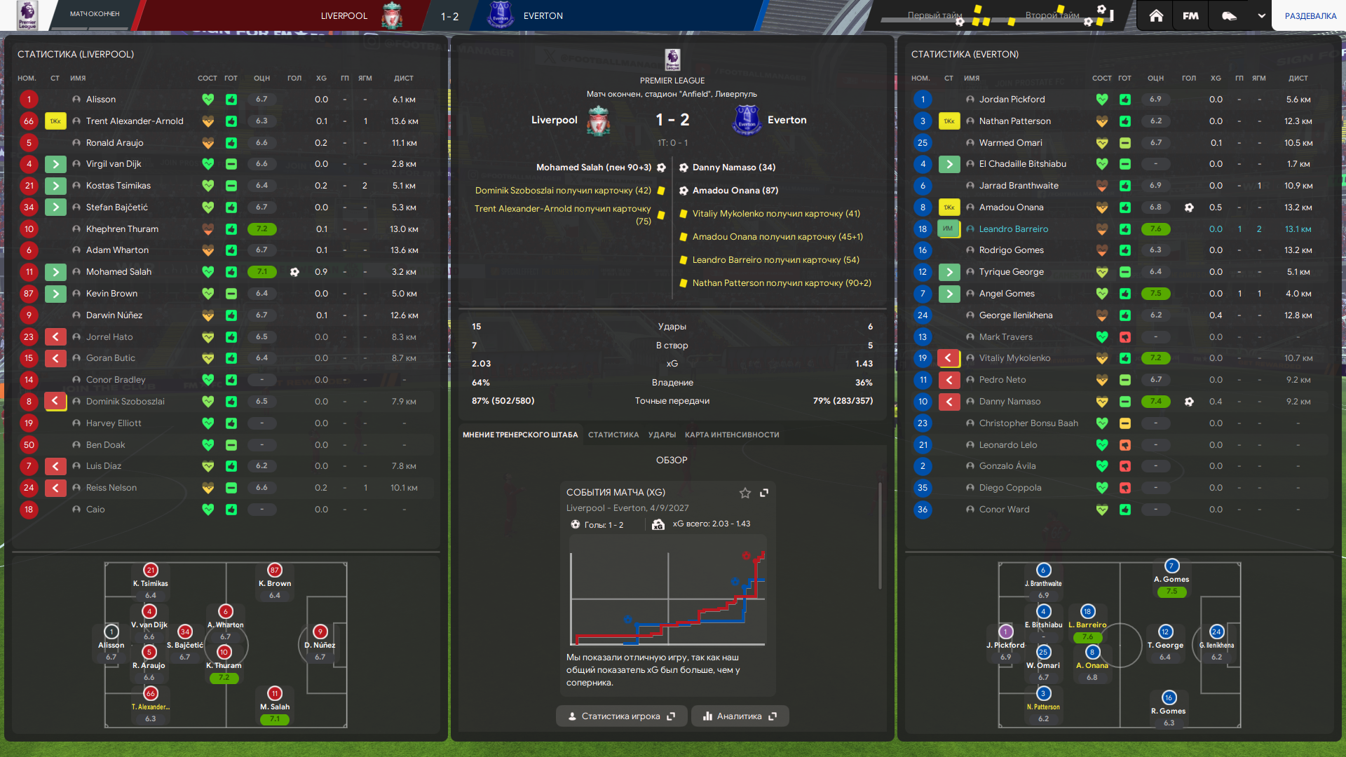 Дальше перестановки, смены тактики, блять, атака, атака, атака, атака - ворота Ливерпуля заколдованы, больше Ливер сам вообще ничего не делает, мы забрали игру, но мяч не заходил, голкипер выдал гигаперформанс.