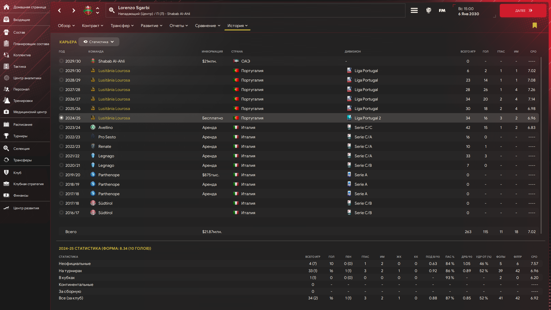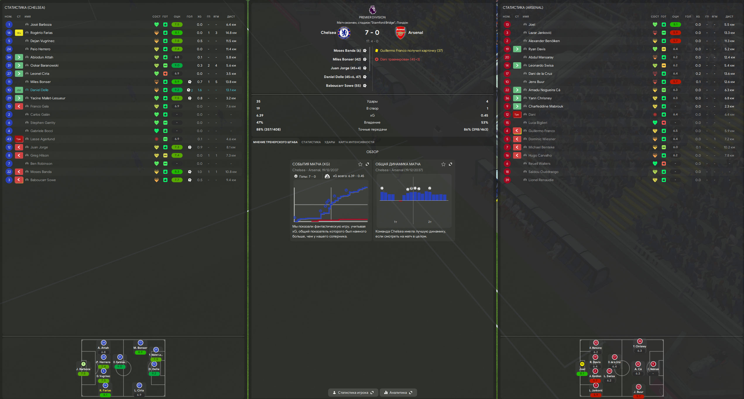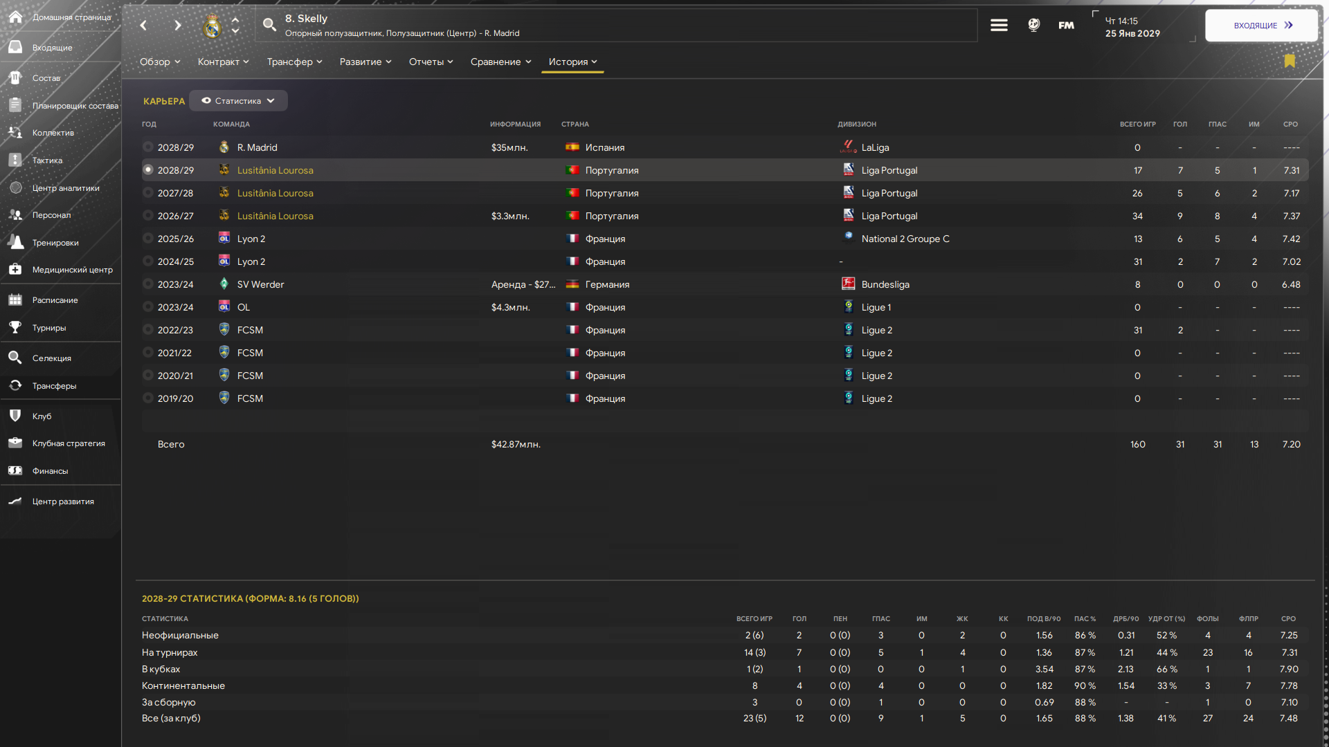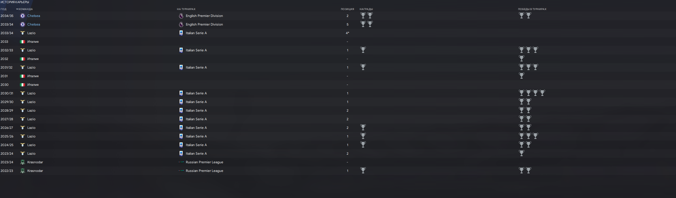 длиннющий, сука, сезон. матчи крутил уже не так активно, чаще только по выходным. у нас АПЛ и ЛЧ. из кубков вылетел в типичных 0.03 xG против 4.68 xG матчах против аутсайдеров АПЛ. сборная сезона в ЛЧ на 90% состоит из моих пиздюков. даже оба Лациале вышли из под моего крыла. чего-то особенного за исключением общего спада формы не наблюдалось. анон из треда подсказал и я буду в следующем сезоне пробовать давать меньше отдыха игрокам. зимой от нас за 105 000 000 в сторону Неаполя поехал Яспер Даль Сёби. молодой и перспективный норвежец, первая замена на правый фланг. отдал только потому что посреди сезона мне резко обрезали зарплатный фонд и скукожили весь трансферный бюджет. усиливать нечего. просто ждем следующий сезон.
