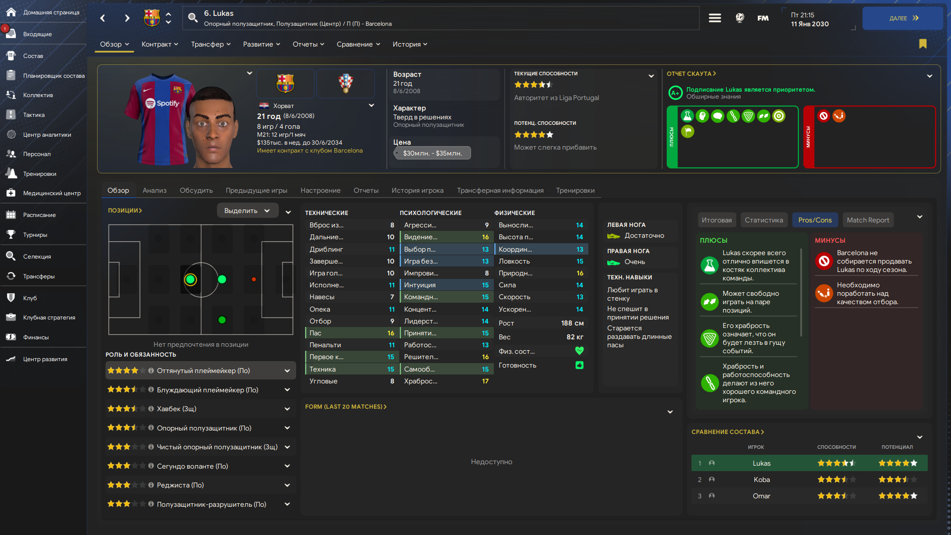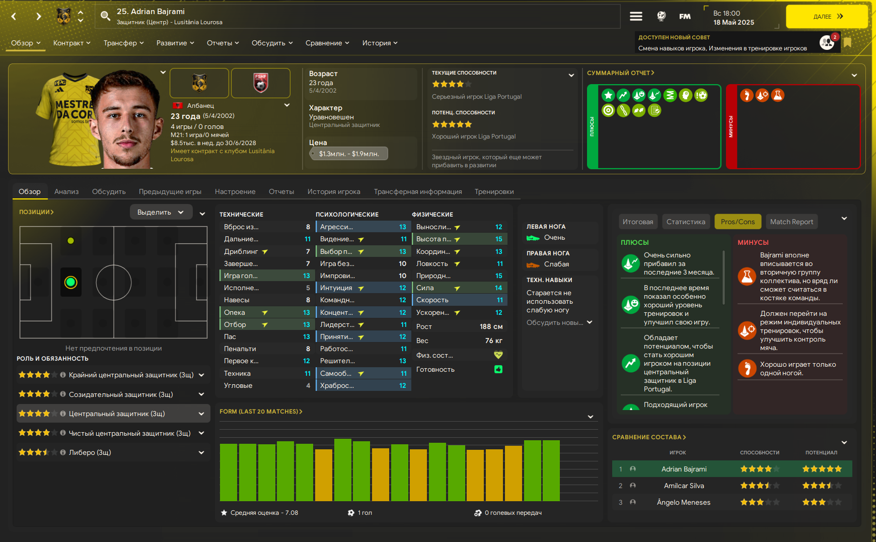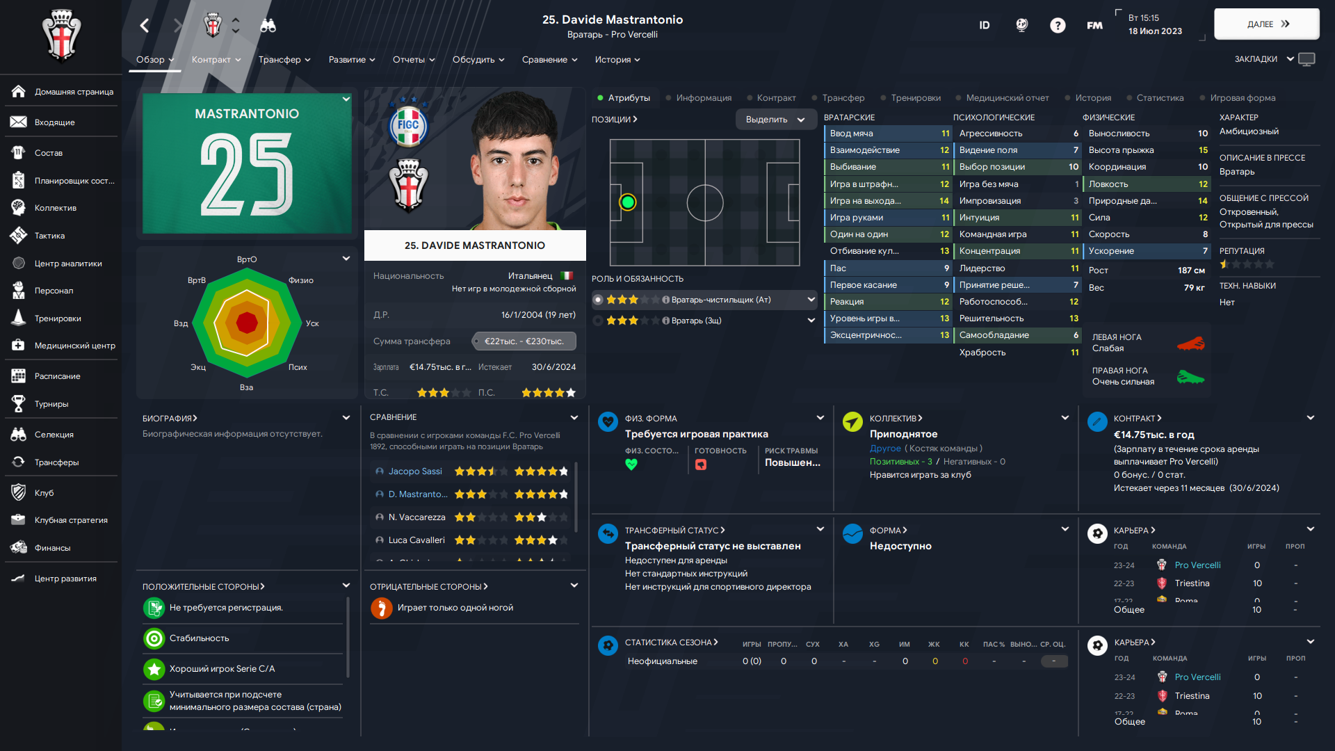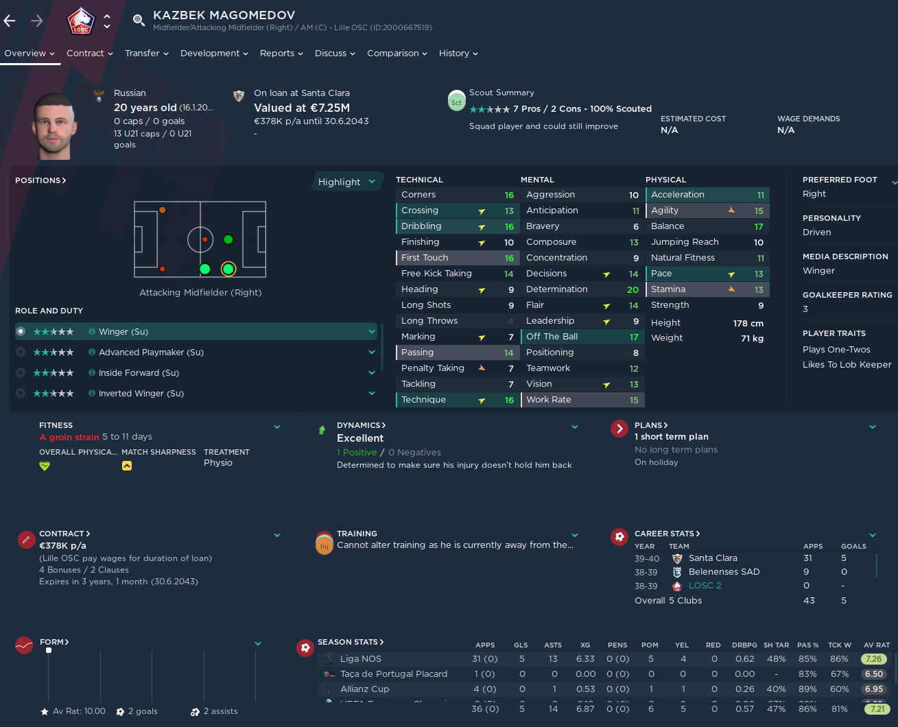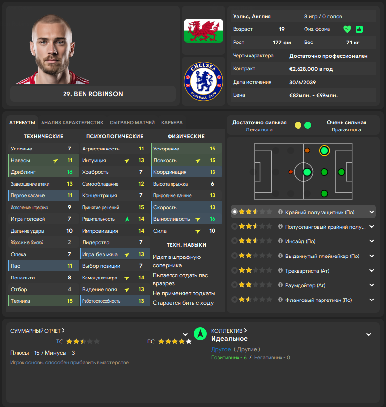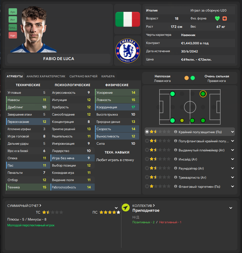С разрывом подколенного будет отдыхать ещё пару месяцев, пропустил вторую половину сезона 23/24 с ахиллом, благо хоть десятку всего получает. Да и диспетчером его хуй назовёшь с 5 голевыми за 3 сезона, да короче не знаю, ну скиллы неплохие, если эта закуска венгерская наконец вылечит свои кривульки, то пошумит, думаю.