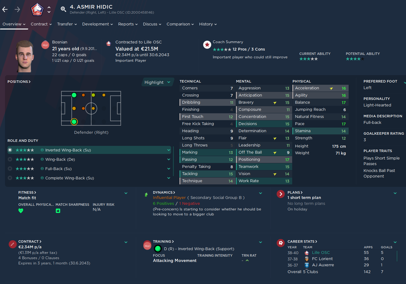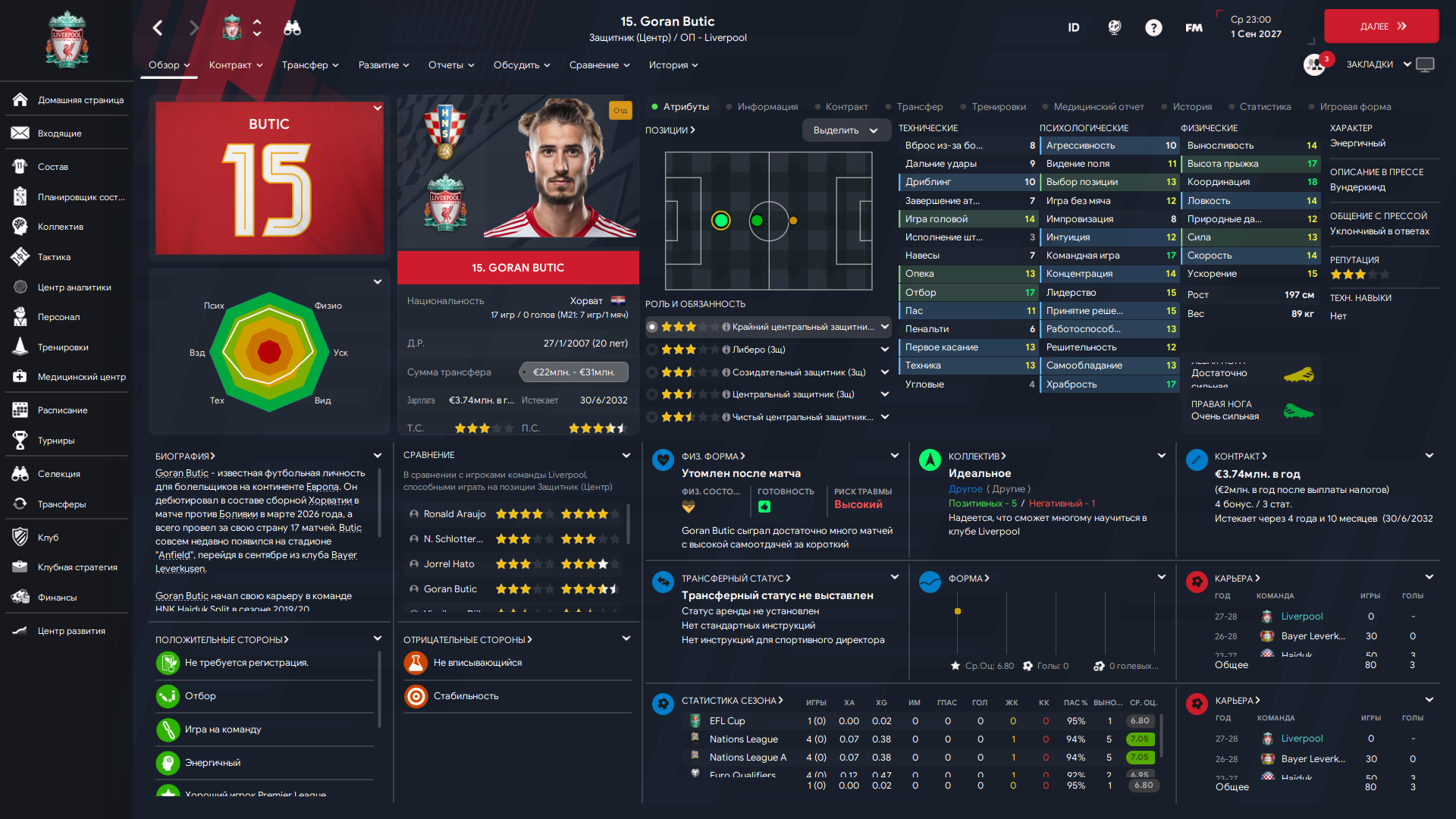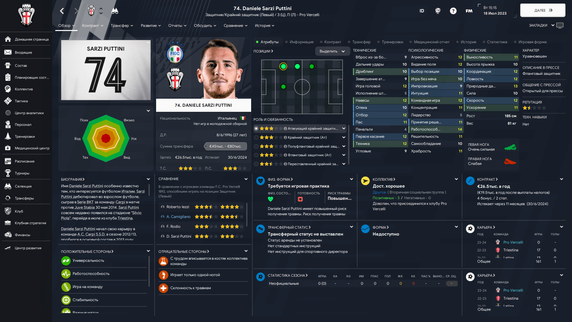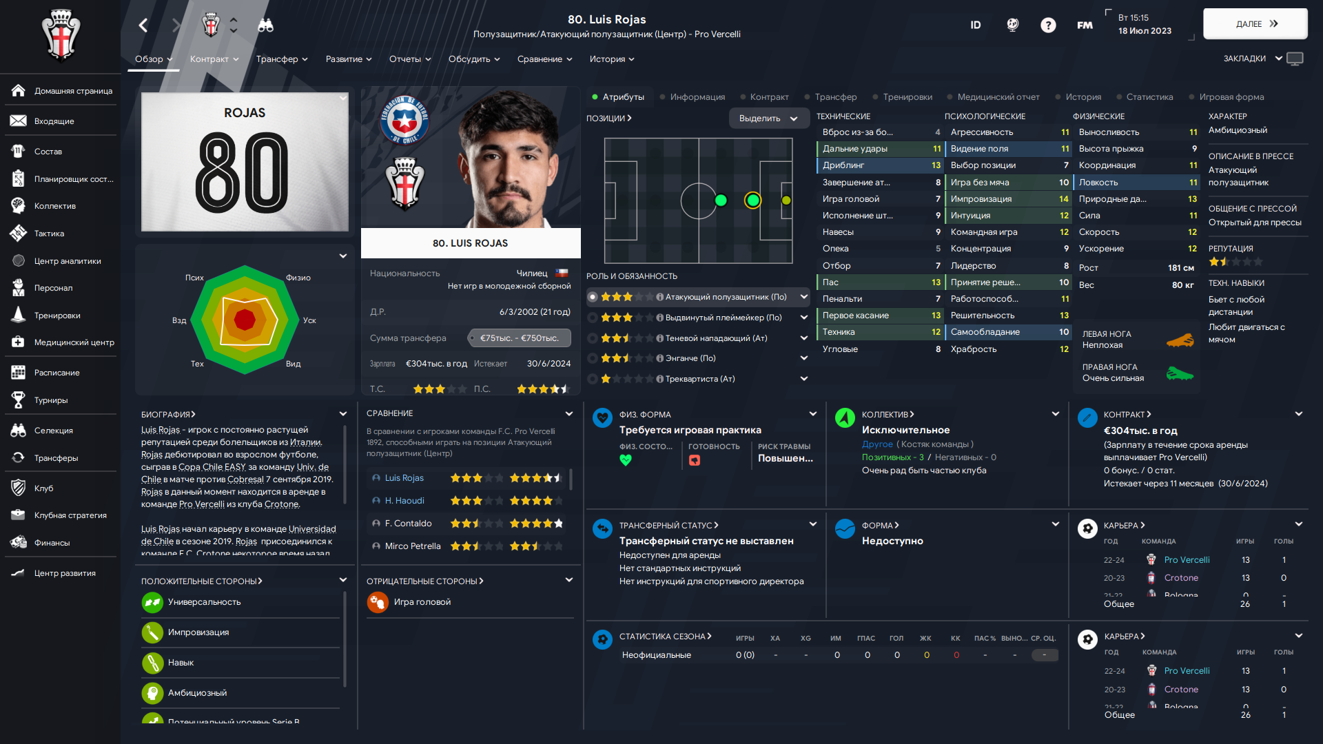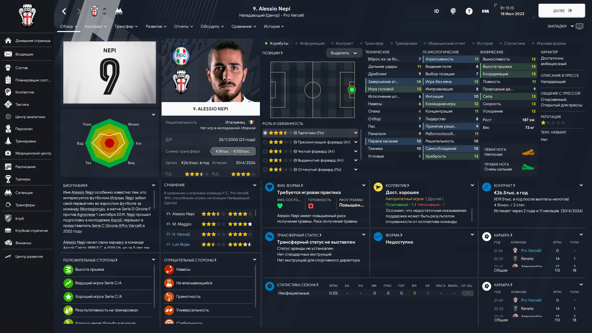 С разрывом подколенного будет отдыхать ещё пару месяцев, пропустил вторую половину сезона 23/24 с ахиллом, благо хоть десятку всего получает. Да и диспетчером его хуй назовёшь с 5 голевыми за 3 сезона, да короче не знаю, ну скиллы неплохие, если эта закуска венгерская наконец вылечит свои кривульки, то пошумит, думаю.