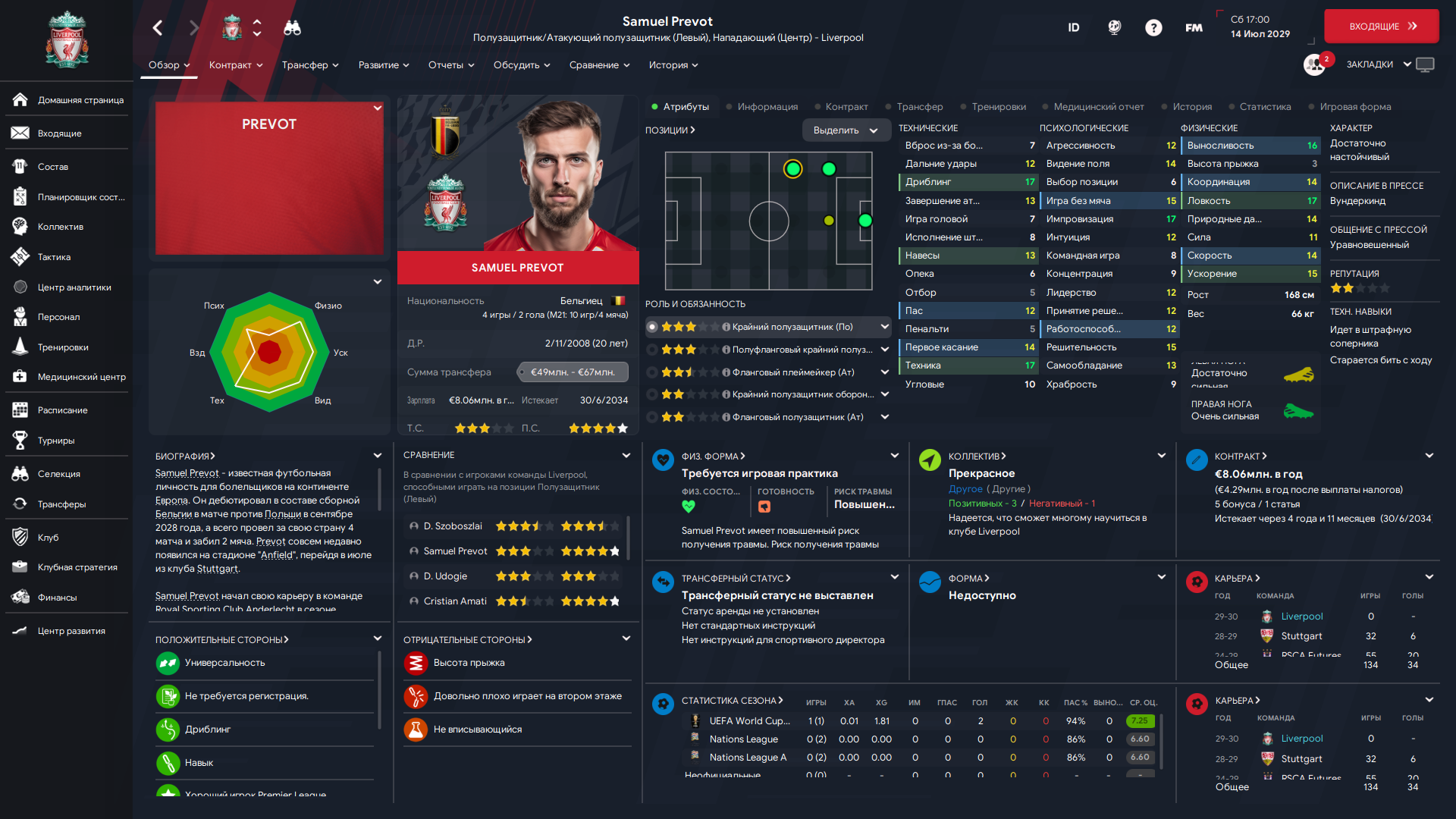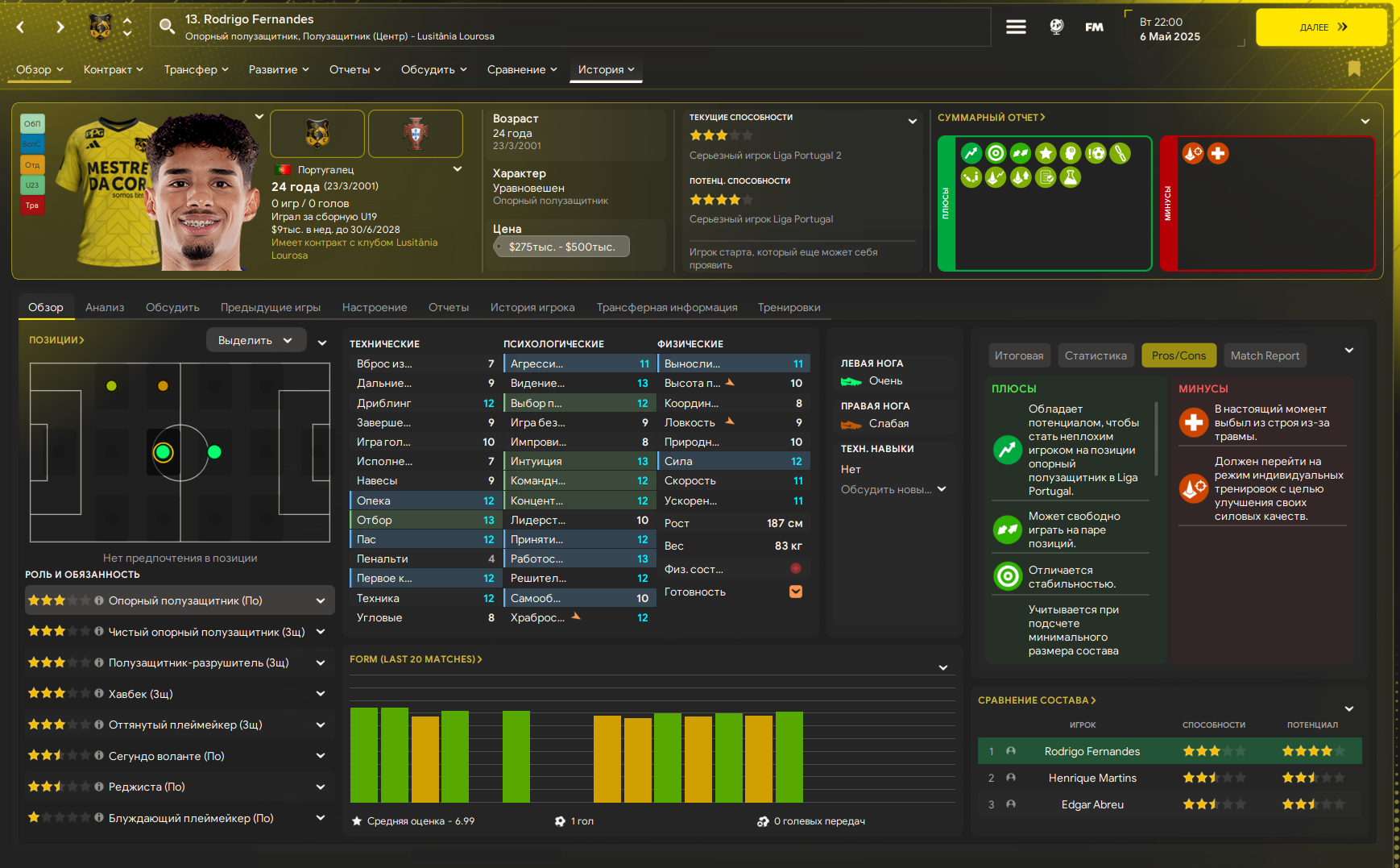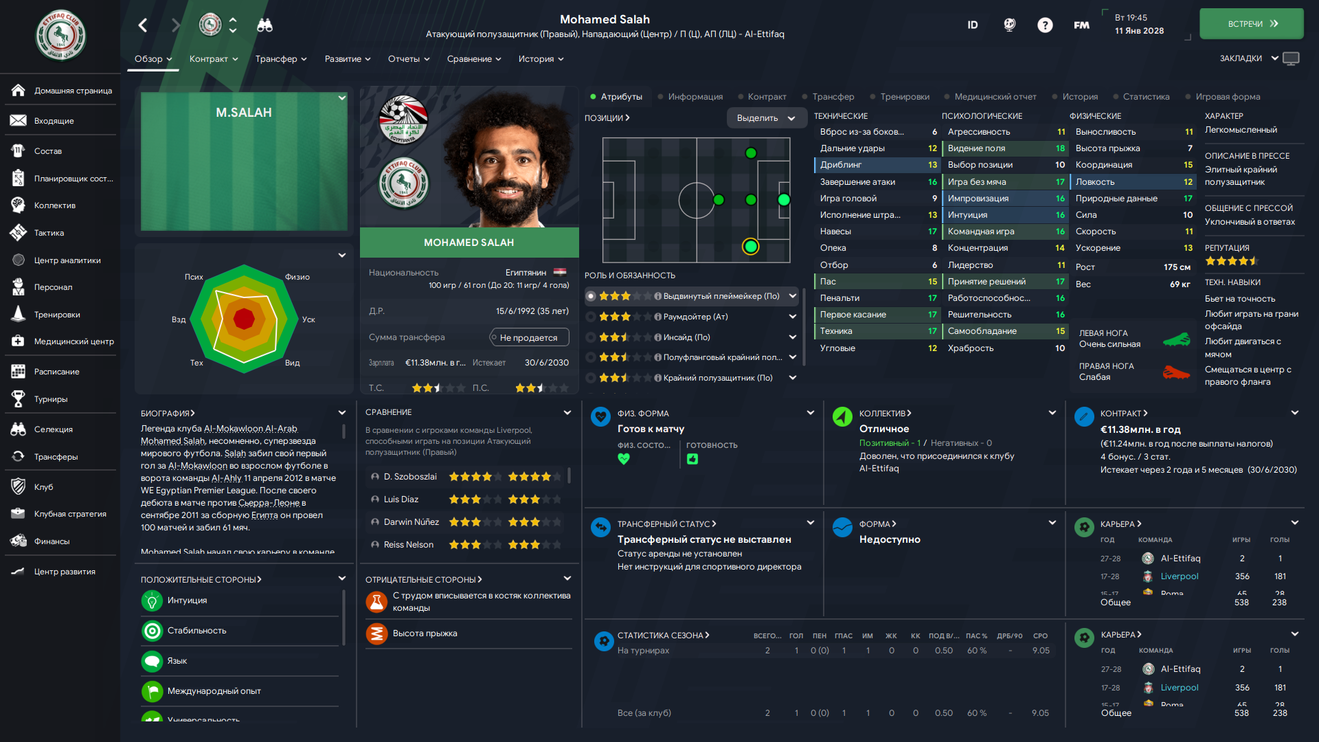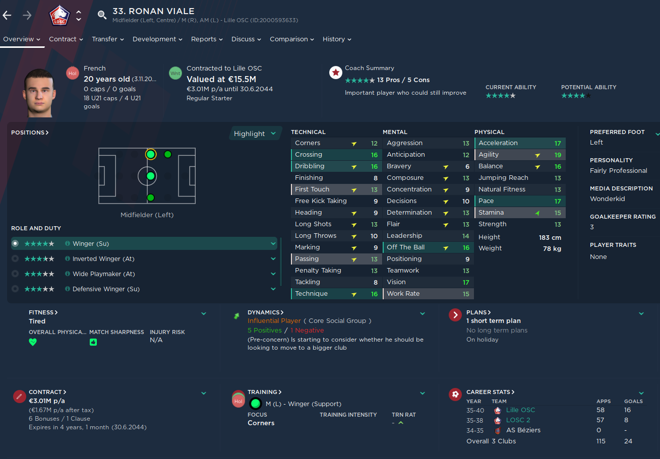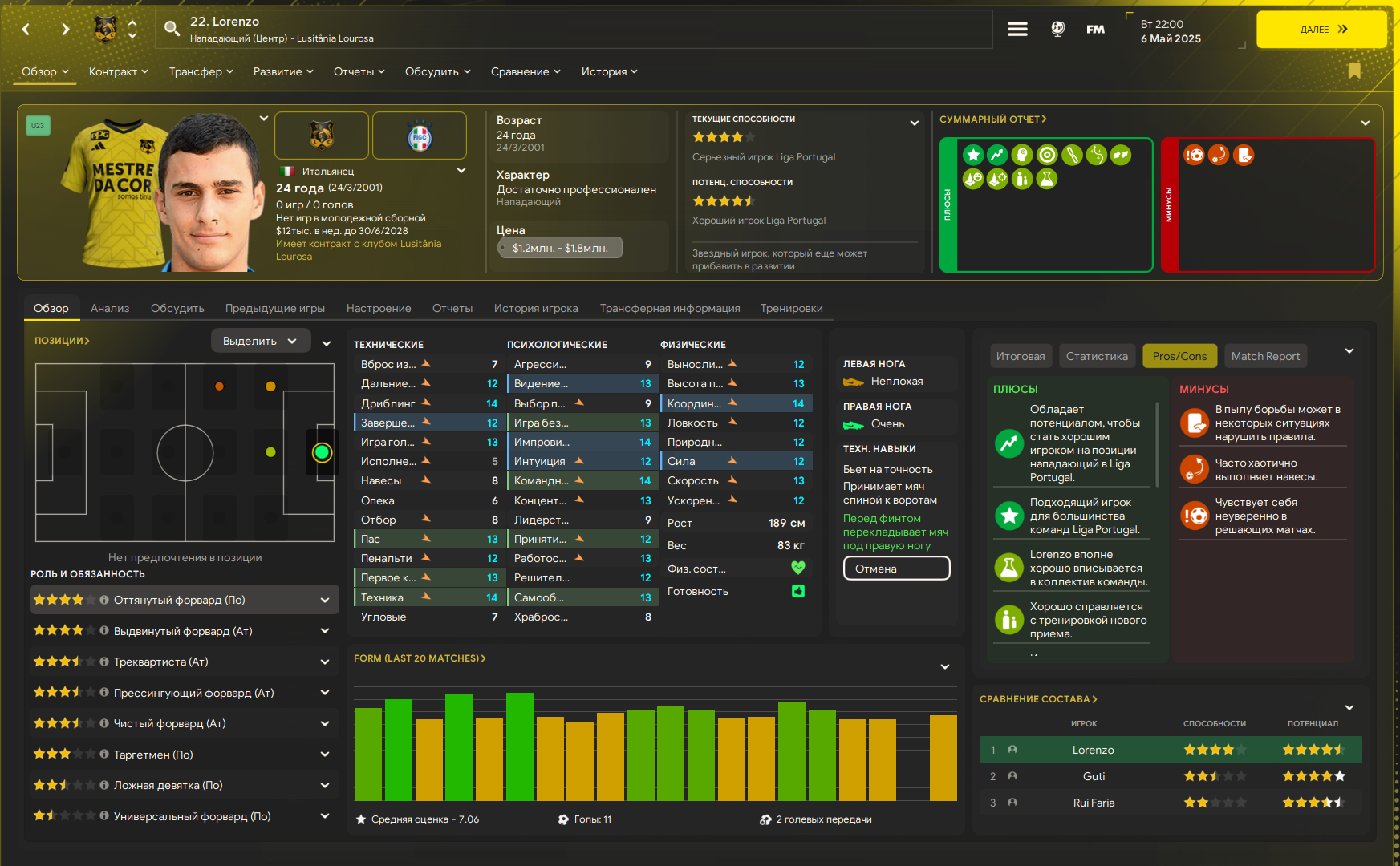 С разрывом подколенного будет отдыхать ещё пару месяцев, пропустил вторую половину сезона 23/24 с ахиллом, благо хоть десятку всего получает. Да и диспетчером его хуй назовёшь с 5 голевыми за 3 сезона, да короче не знаю, ну скиллы неплохие, если эта закуска венгерская наконец вылечит свои кривульки, то пошумит, думаю.
