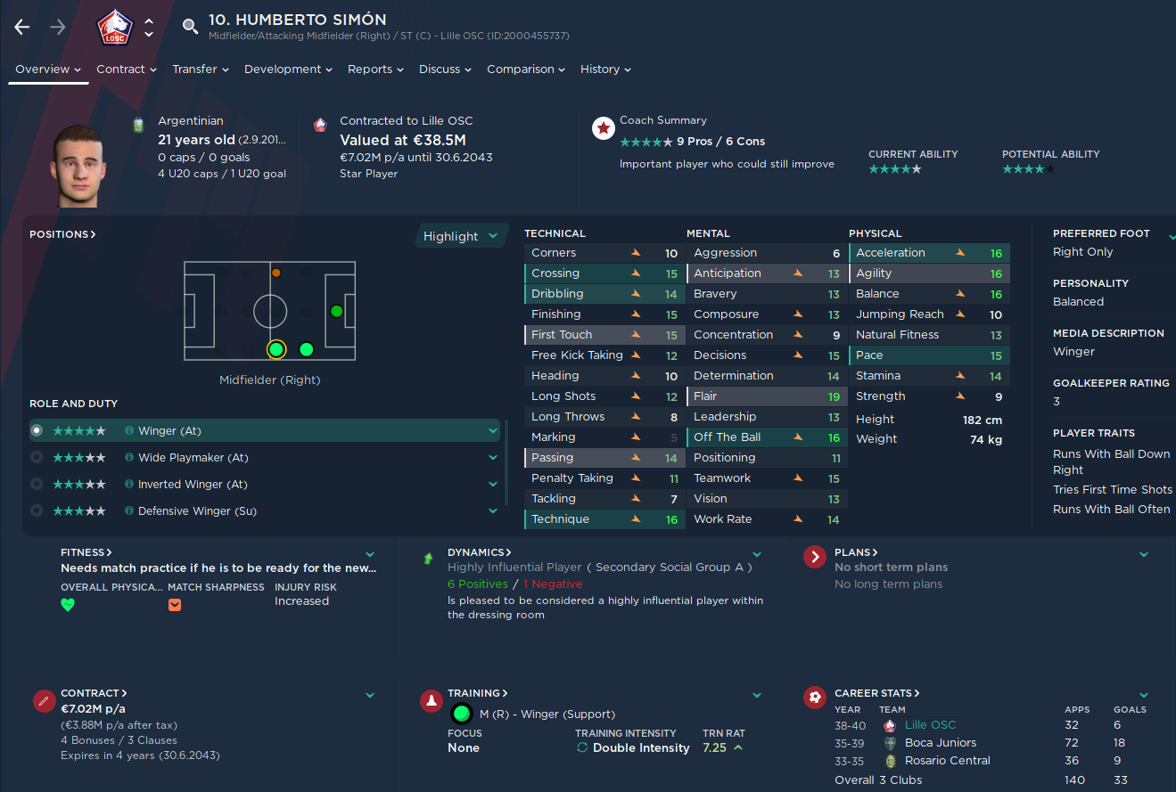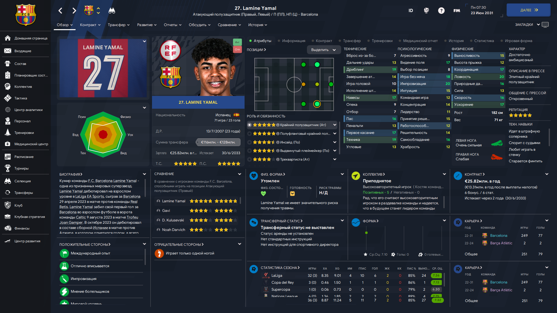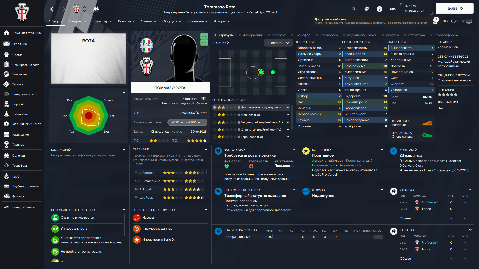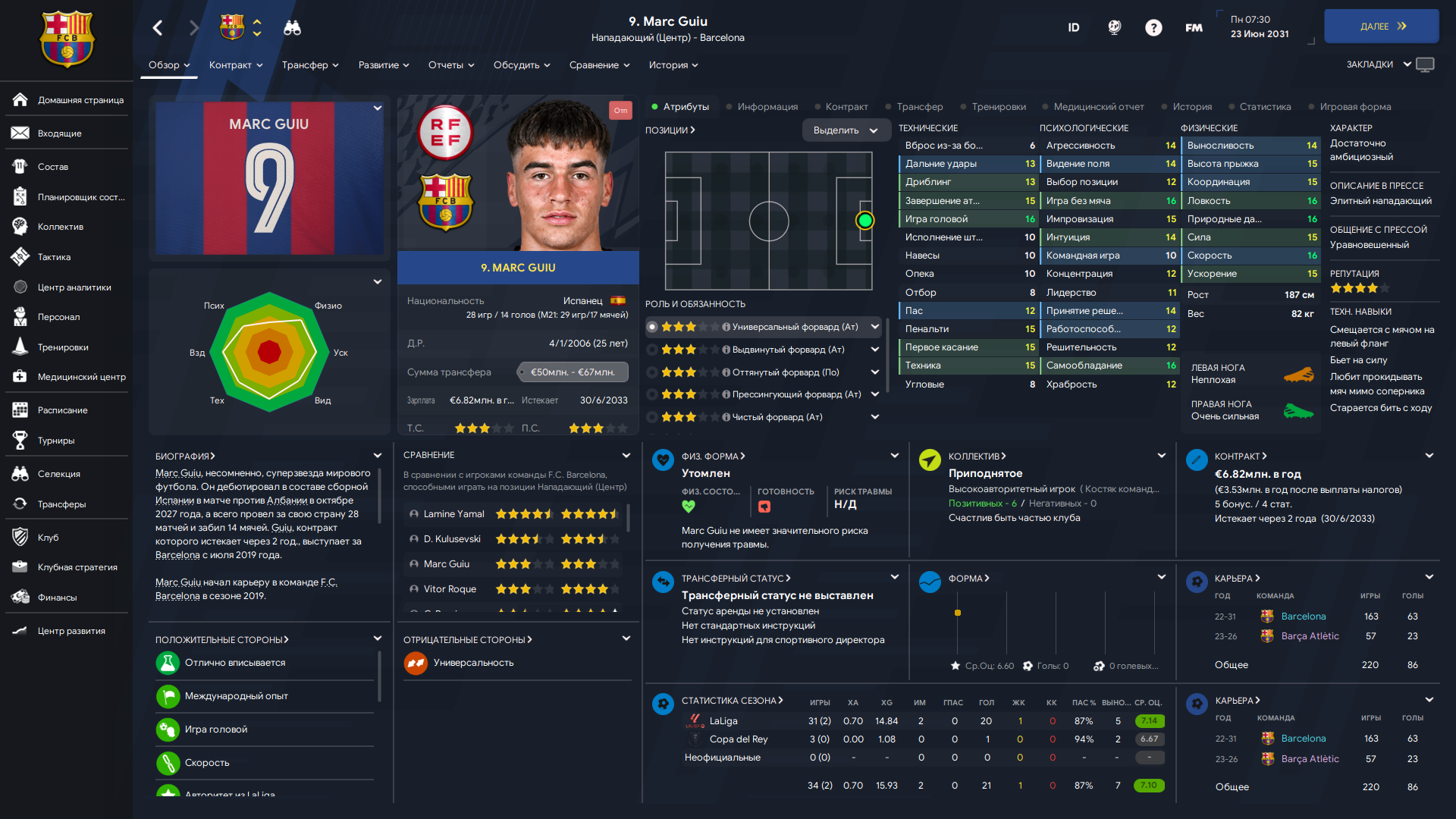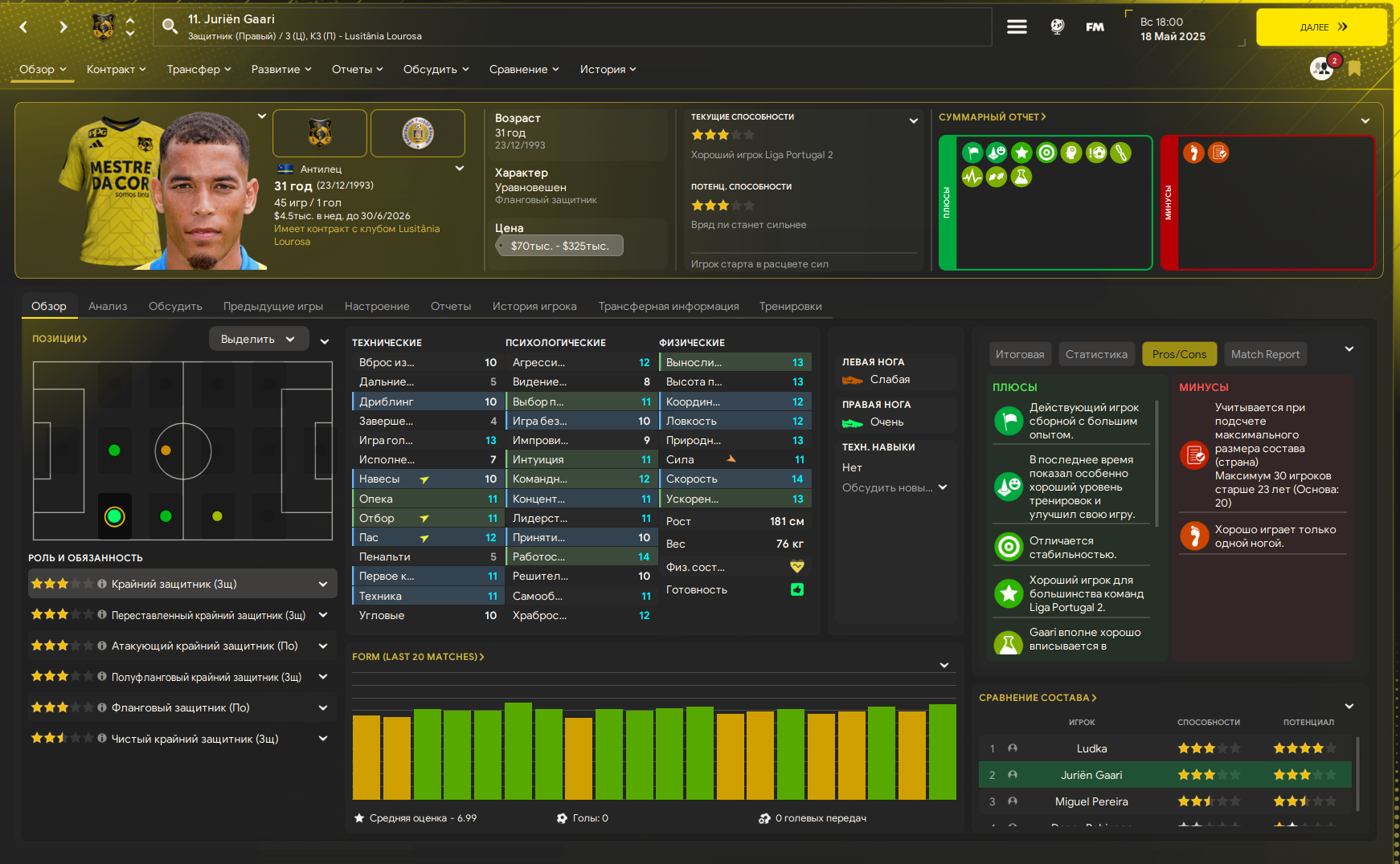 С разрывом подколенного будет отдыхать ещё пару месяцев, пропустил вторую половину сезона 23/24 с ахиллом, благо хоть десятку всего получает. Да и диспетчером его хуй назовёшь с 5 голевыми за 3 сезона, да короче не знаю, ну скиллы неплохие, если эта закуска венгерская наконец вылечит свои кривульки, то пошумит, думаю.
