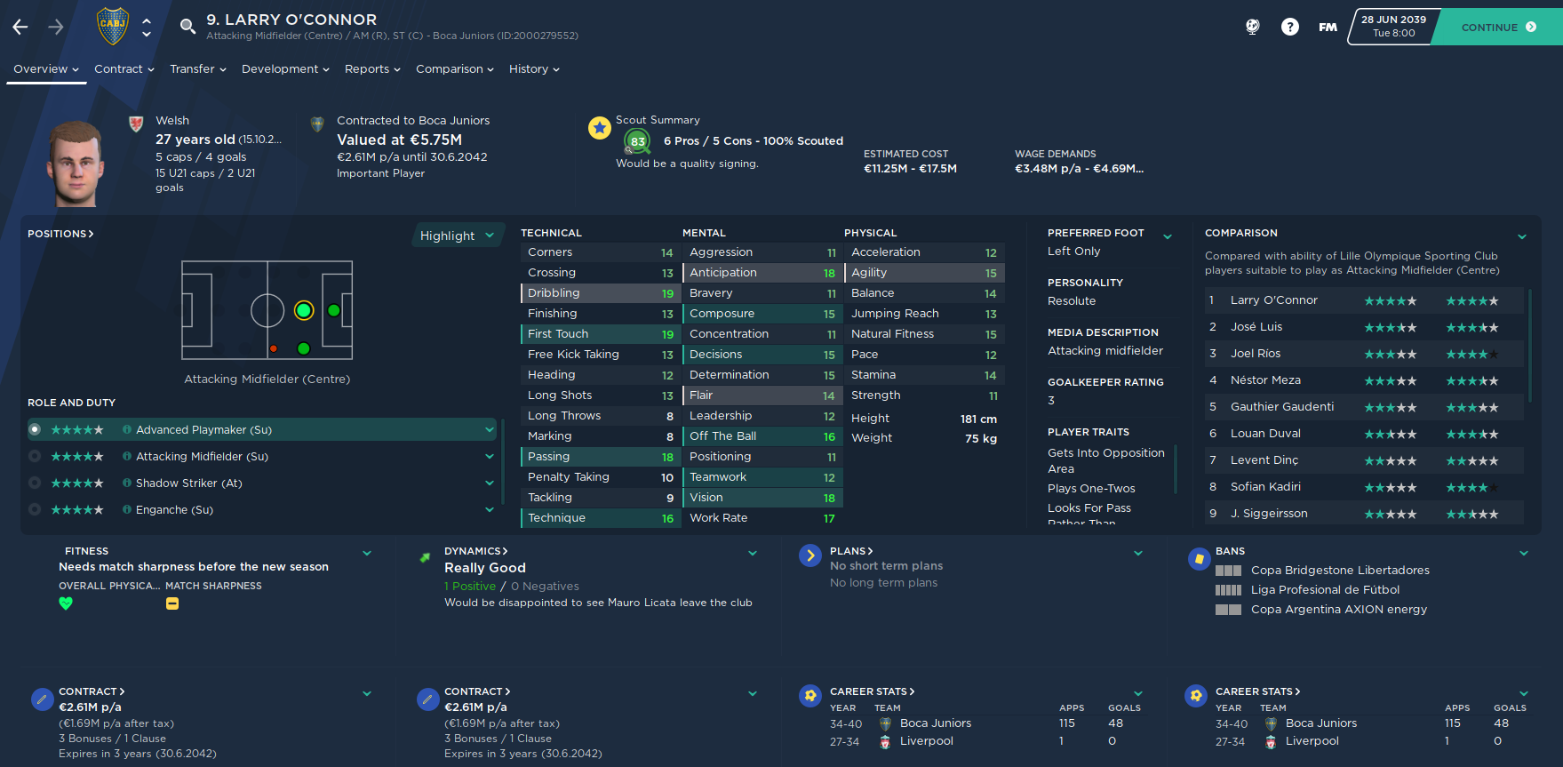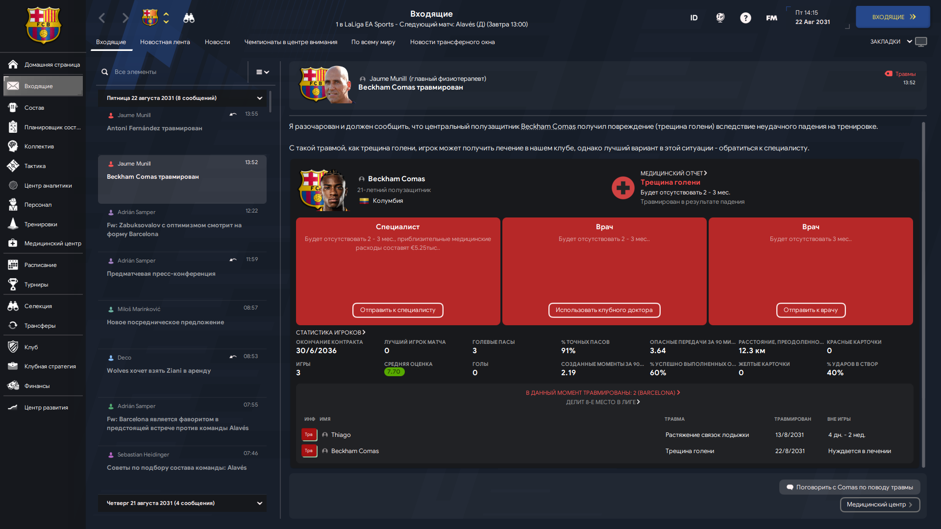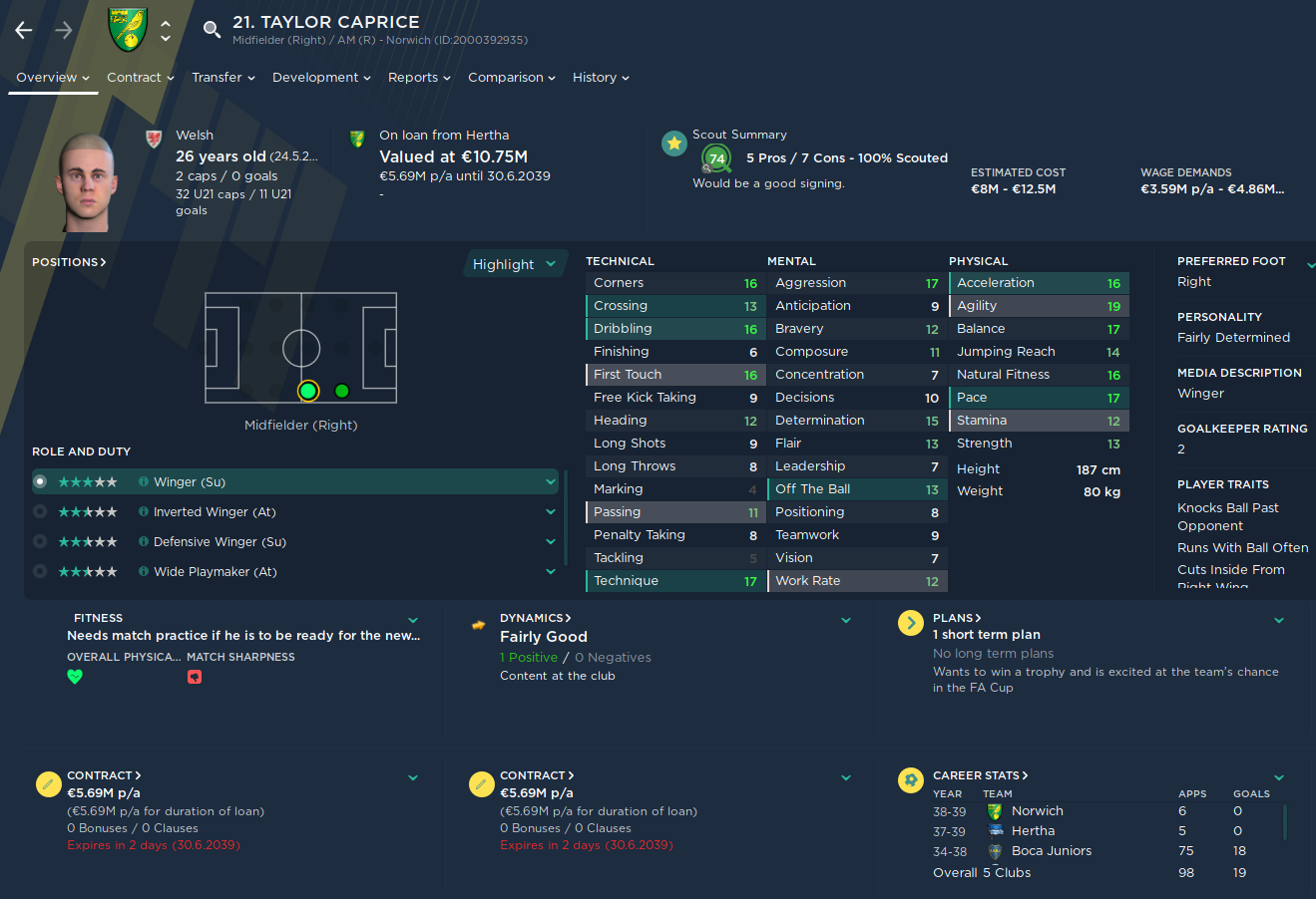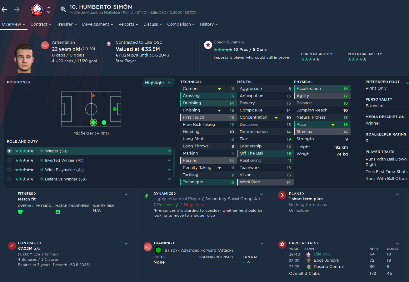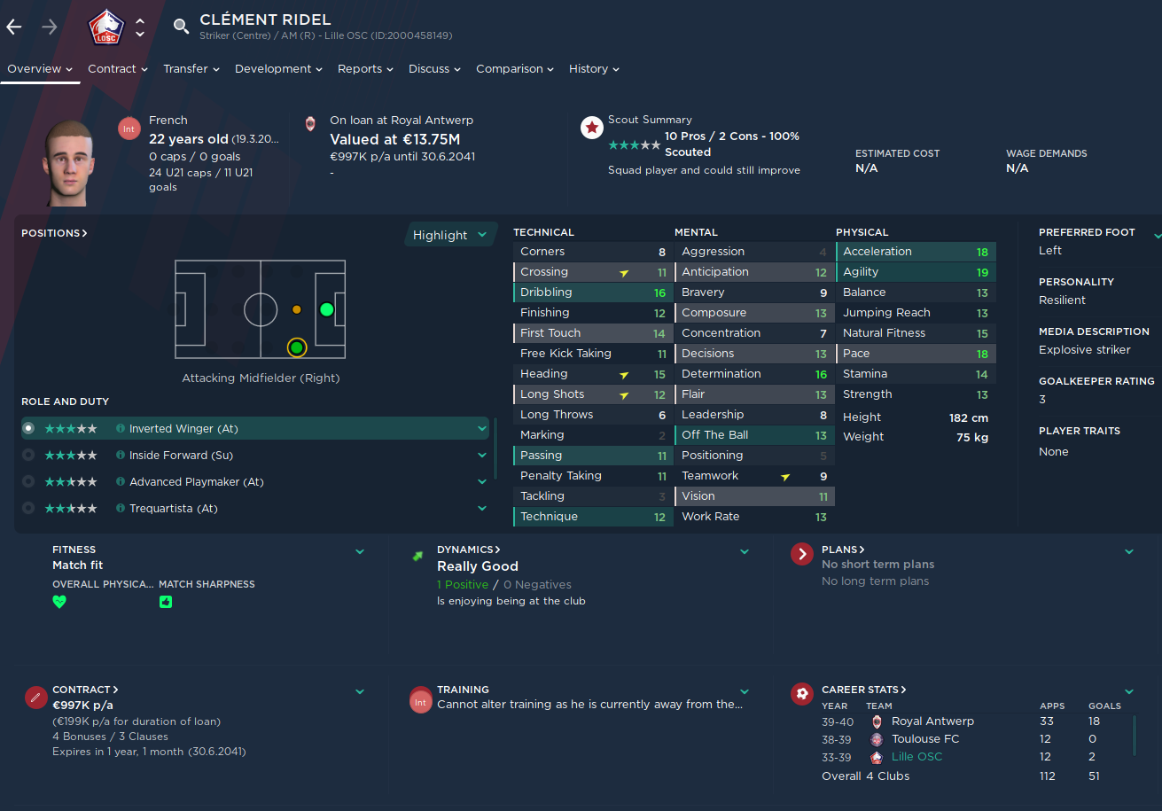 С разрывом подколенного будет отдыхать ещё пару месяцев, пропустил вторую половину сезона 23/24 с ахиллом, благо хоть десятку всего получает. Да и диспетчером его хуй назовёшь с 5 голевыми за 3 сезона, да короче не знаю, ну скиллы неплохие, если эта закуска венгерская наконец вылечит свои кривульки, то пошумит, думаю.