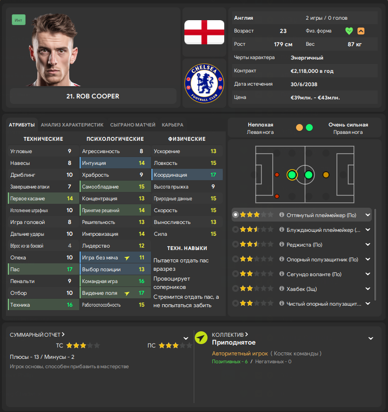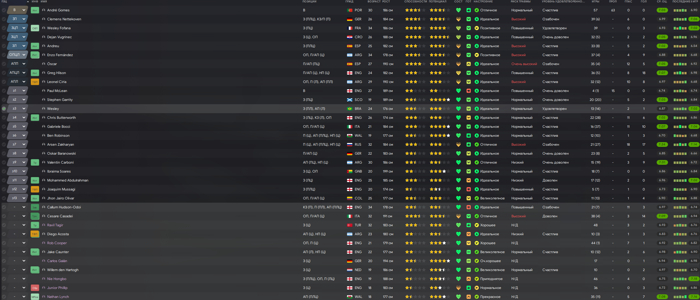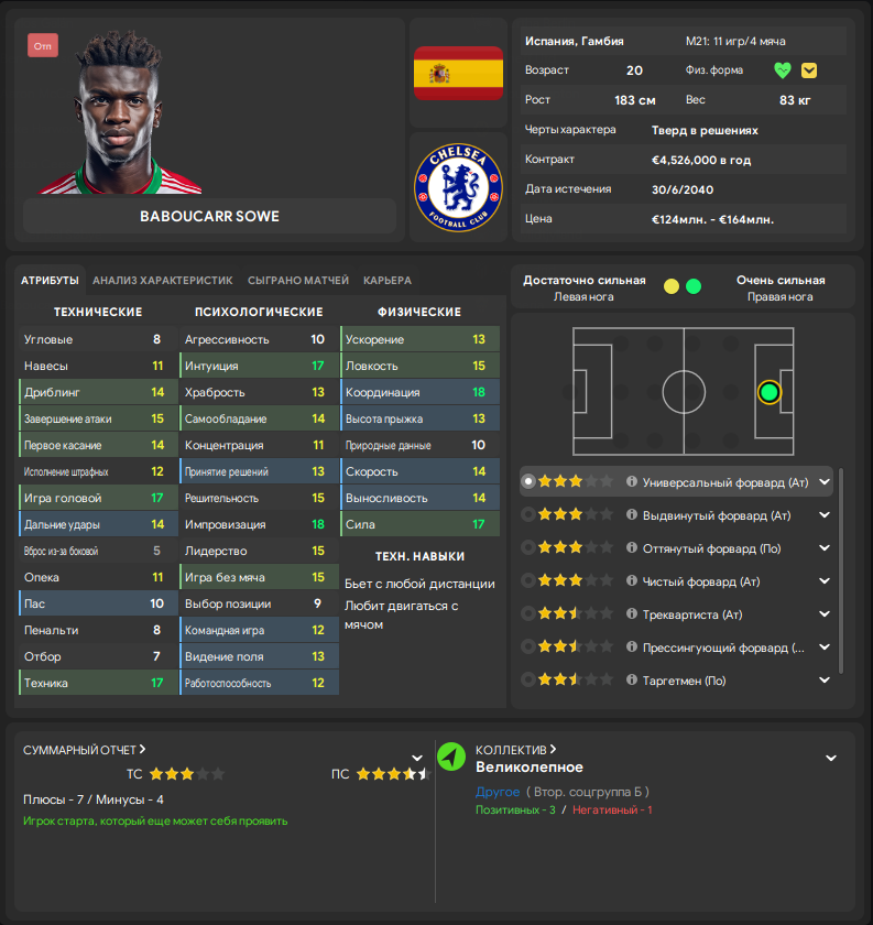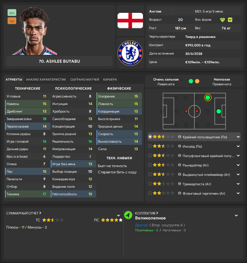 рубрика "нам пишут" > что случилось с Хаверцом попал в восточную сказку. та же перспектива у всех "старичков". арабские шакалы продолжают отрывать от моей команды куски. в след за Джеймсом и Хаверцом отправились Гвардиол и бразил Андрэ. Гвардиол кстати лютый привозила и его трансфер скорее помог, чем помешал. играется апл очень сложно. имея стопроцентный результат в ЛЧ, в апл мы можем проебать и проёбываем какому-нибудь говну из середины таблицы. команда вообще никакого сопротивления в таких играх оказать не способна. в верхней части таблицы все очень туго. примерно как у монашки. пара туров может изменить все до неузнаваемости. ситхи постепенно выгребают со дна, наняв Марка Розе, а Юнайтед так и продолжают сосать встречному и поперечному, делая ставку на легенд у руля. на смену Кришу пришел ван Нистелрой. я продолжаю искать копеечные усиления на рынке. даётся сложно, качество игроков точно не уровня Челси. к сожалению с моими бюджетами чтобы купить достойного игрока придется пропустить несколько окон. приобрёл пару защитников с обратной арендой до конца сезона за 13.5 миллионов на каждого. чтобы это провернуть потребовалось отпустить в Арсенал нашего лучшего бомбардира - регена англо-турка за 70 000 000. от этой продажи в бюджет клуба я получил только 38 000 000. как на эти деньги конкурировать с топами? единственным возможным вариантом мне видится искать дешевых талантливых регенов, качать и терпеть несколько лет, пока они не выйдут на пик. двух новичков прикрепляю ниже))))