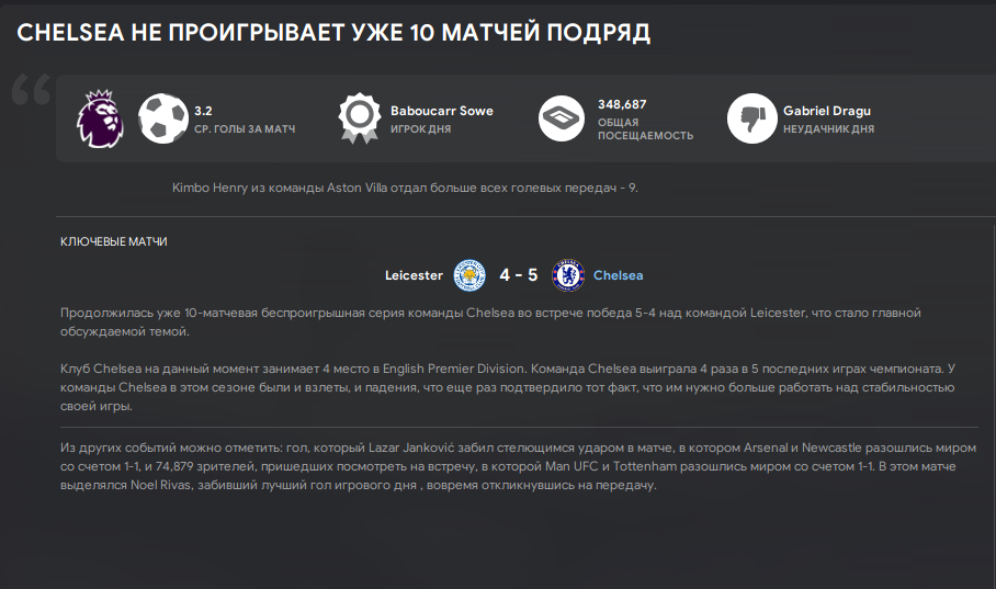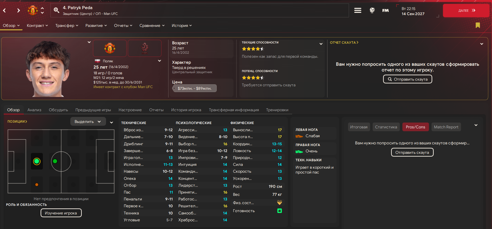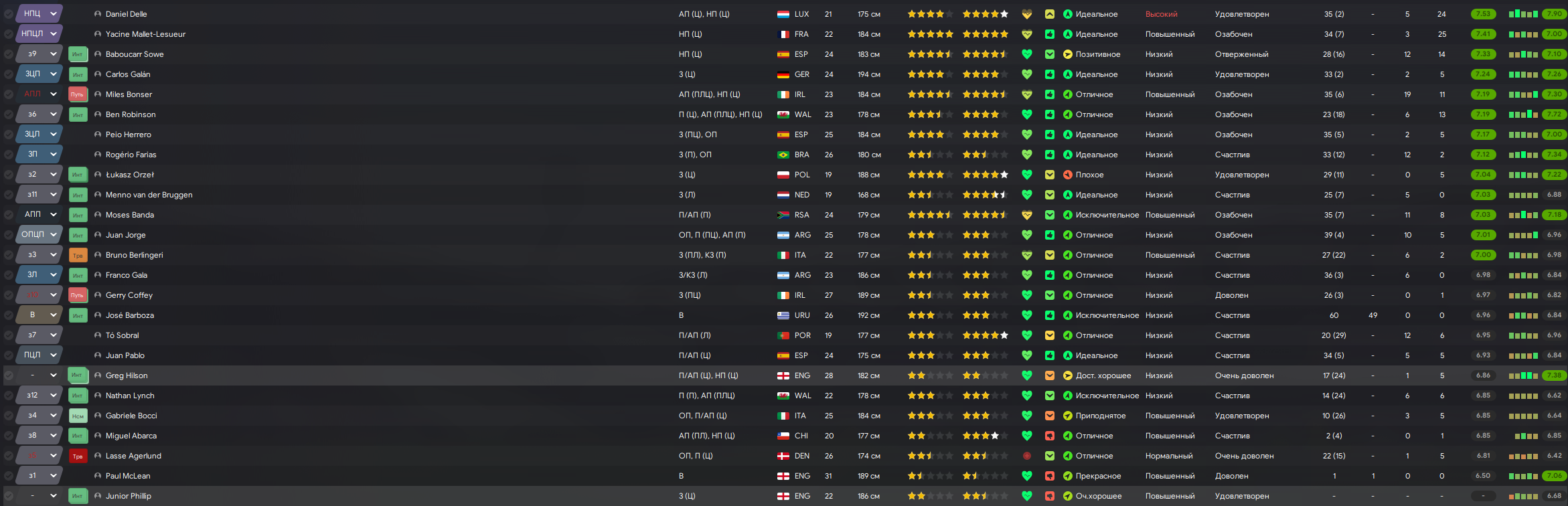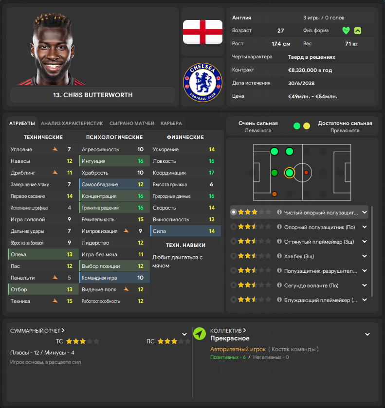 рубрика "нам пишут" > что случилось с Хаверцом попал в восточную сказку. та же перспектива у всех "старичков". арабские шакалы продолжают отрывать от моей команды куски. в след за Джеймсом и Хаверцом отправились Гвардиол и бразил Андрэ. Гвардиол кстати лютый привозила и его трансфер скорее помог, чем помешал. играется апл очень сложно. имея стопроцентный результат в ЛЧ, в апл мы можем проебать и проёбываем какому-нибудь говну из середины таблицы. команда вообще никакого сопротивления в таких играх оказать не способна. в верхней части таблицы все очень туго. примерно как у монашки. пара туров может изменить все до неузнаваемости. ситхи постепенно выгребают со дна, наняв Марка Розе, а Юнайтед так и продолжают сосать встречному и поперечному, делая ставку на легенд у руля. на смену Кришу пришел ван Нистелрой. я продолжаю искать копеечные усиления на рынке. даётся сложно, качество игроков точно не уровня Челси. к сожалению с моими бюджетами чтобы купить достойного игрока придется пропустить несколько окон. приобрёл пару защитников с обратной арендой до конца сезона за 13.5 миллионов на каждого. чтобы это провернуть потребовалось отпустить в Арсенал нашего лучшего бомбардира - регена англо-турка за 70 000 000. от этой продажи в бюджет клуба я получил только 38 000 000. как на эти деньги конкурировать с топами? единственным возможным вариантом мне видится искать дешевых талантливых регенов, качать и терпеть несколько лет, пока они не выйдут на пик. двух новичков прикрепляю ниже))))