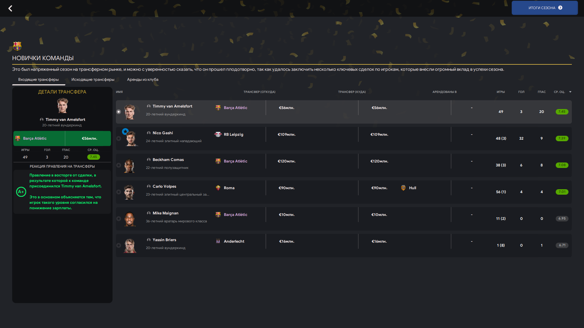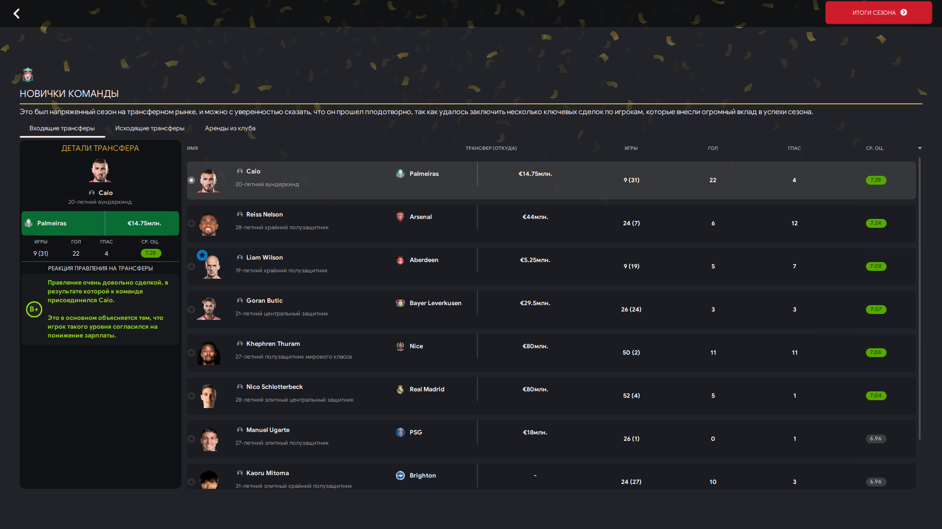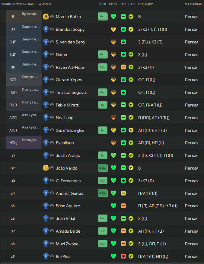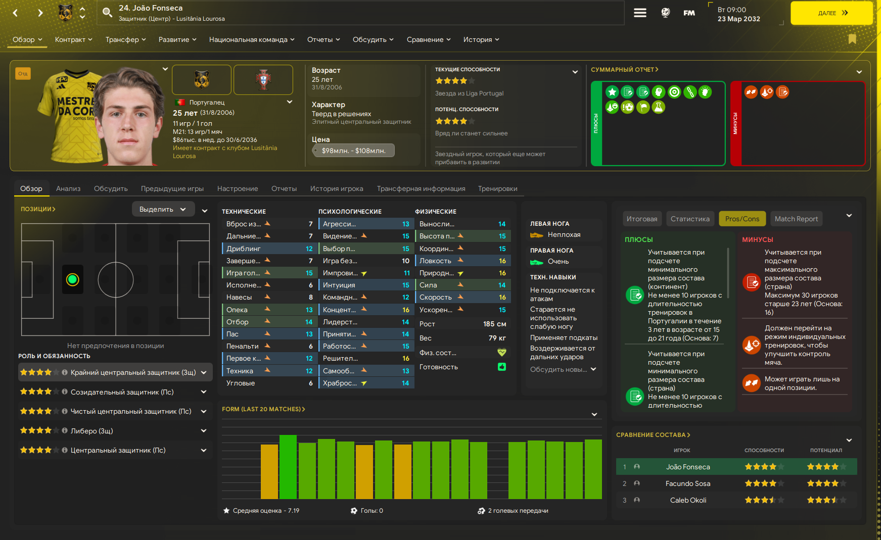 В следующем сезоне ставлю на прокаченную линию обороны - на репутацию от предыдущего финала удалось выцепить двух отличных защей - Жоау Фонсеку и Калеба Околи, плюс Марцин Булка, вытянутый из тонущего Порту, еще в расцвете сил. Плюс может урву хорошего нападающего, ибо в составе только рахитные карлики.