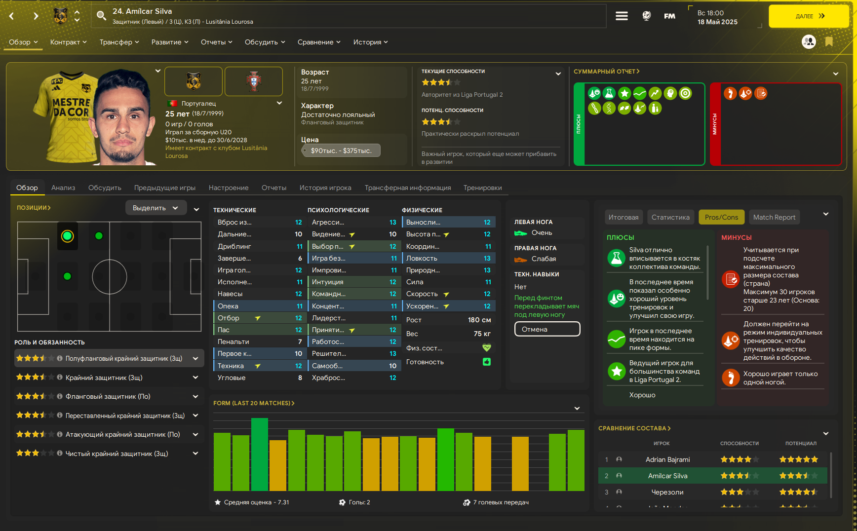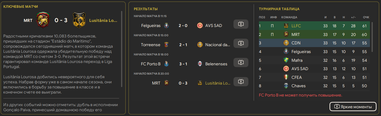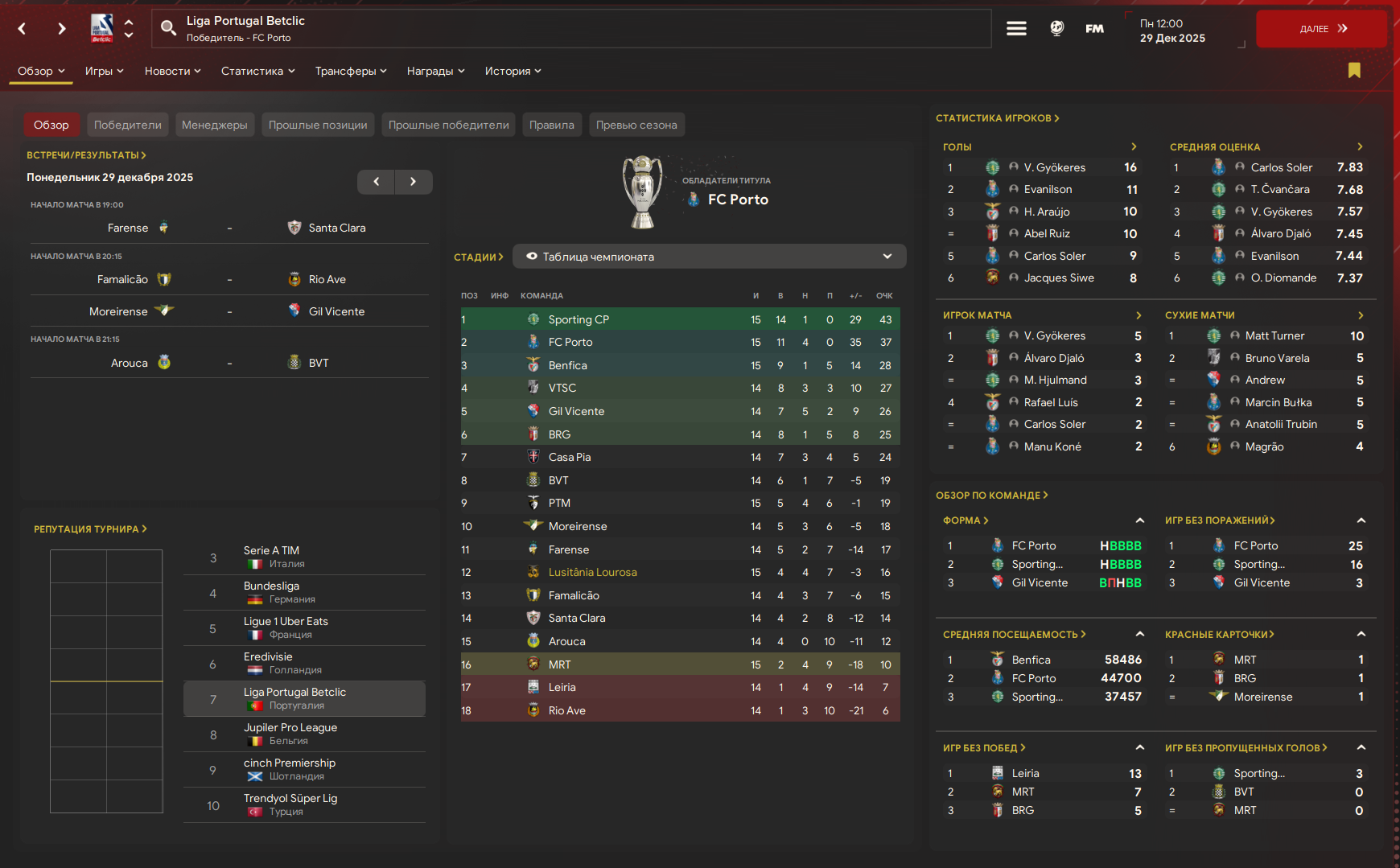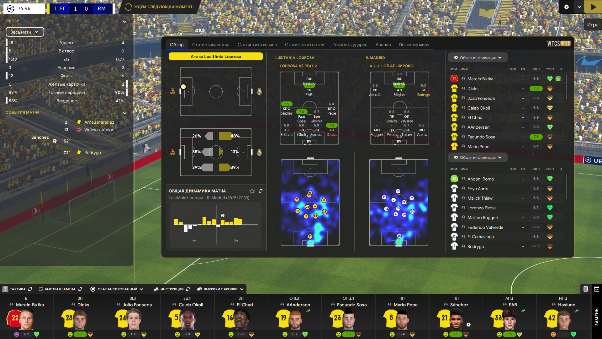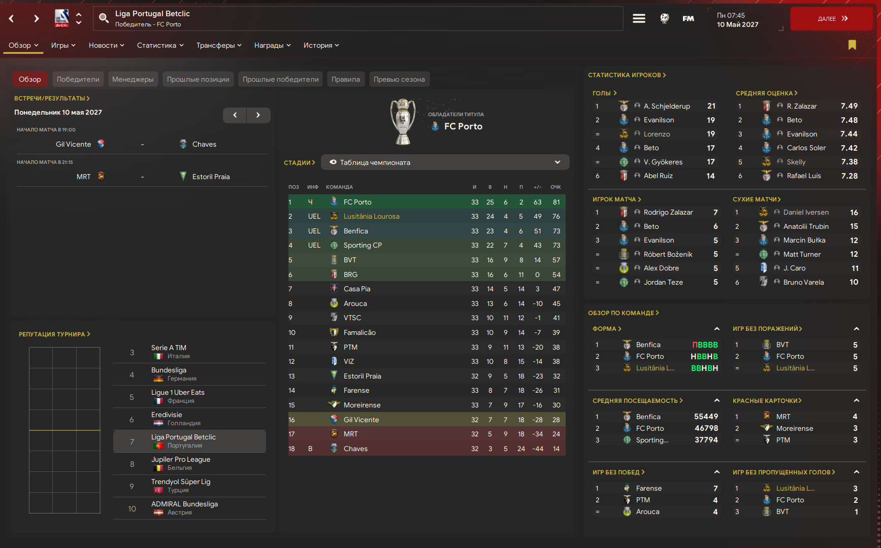 В следующем сезоне ставлю на прокаченную линию обороны - на репутацию от предыдущего финала удалось выцепить двух отличных защей - Жоау Фонсеку и Калеба Околи, плюс Марцин Булка, вытянутый из тонущего Порту, еще в расцвете сил. Плюс может урву хорошего нападающего, ибо в составе только рахитные карлики.