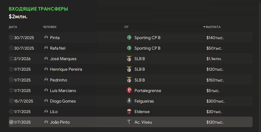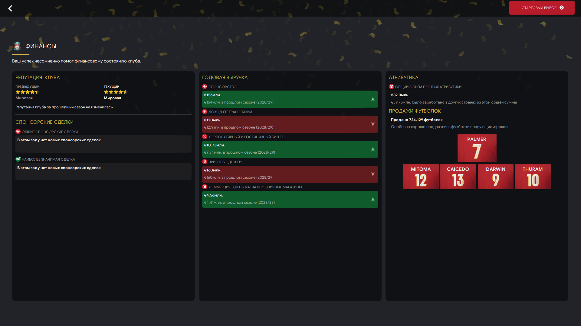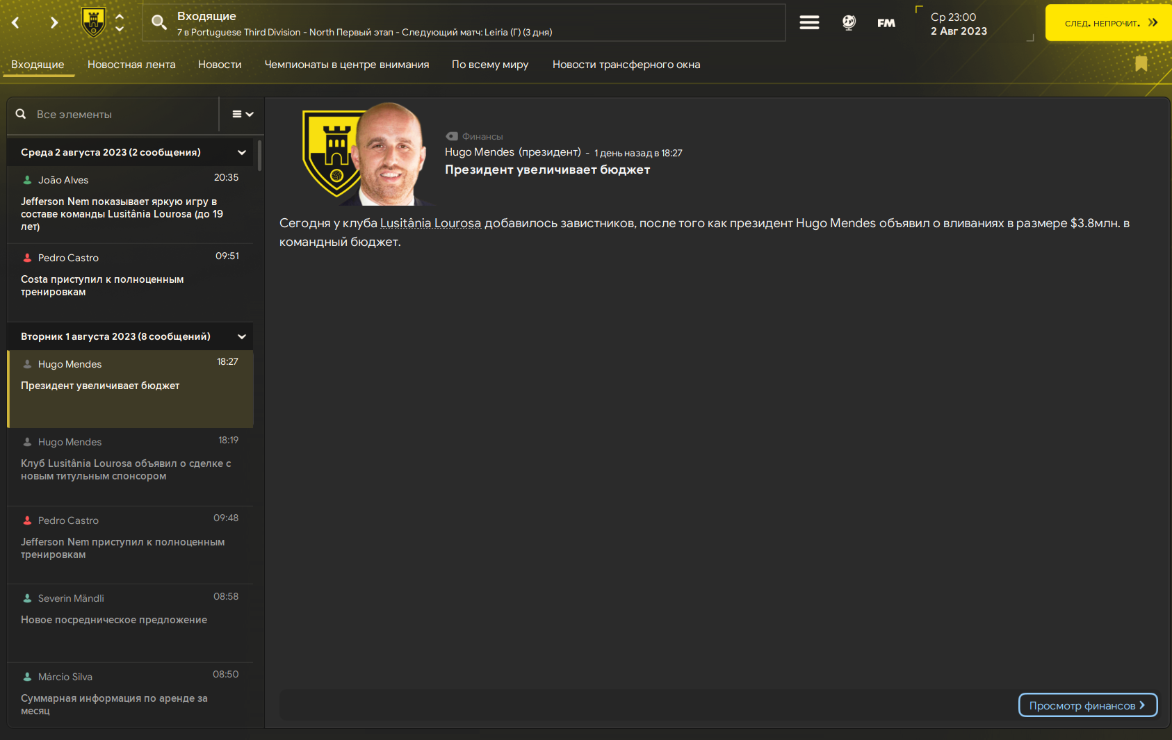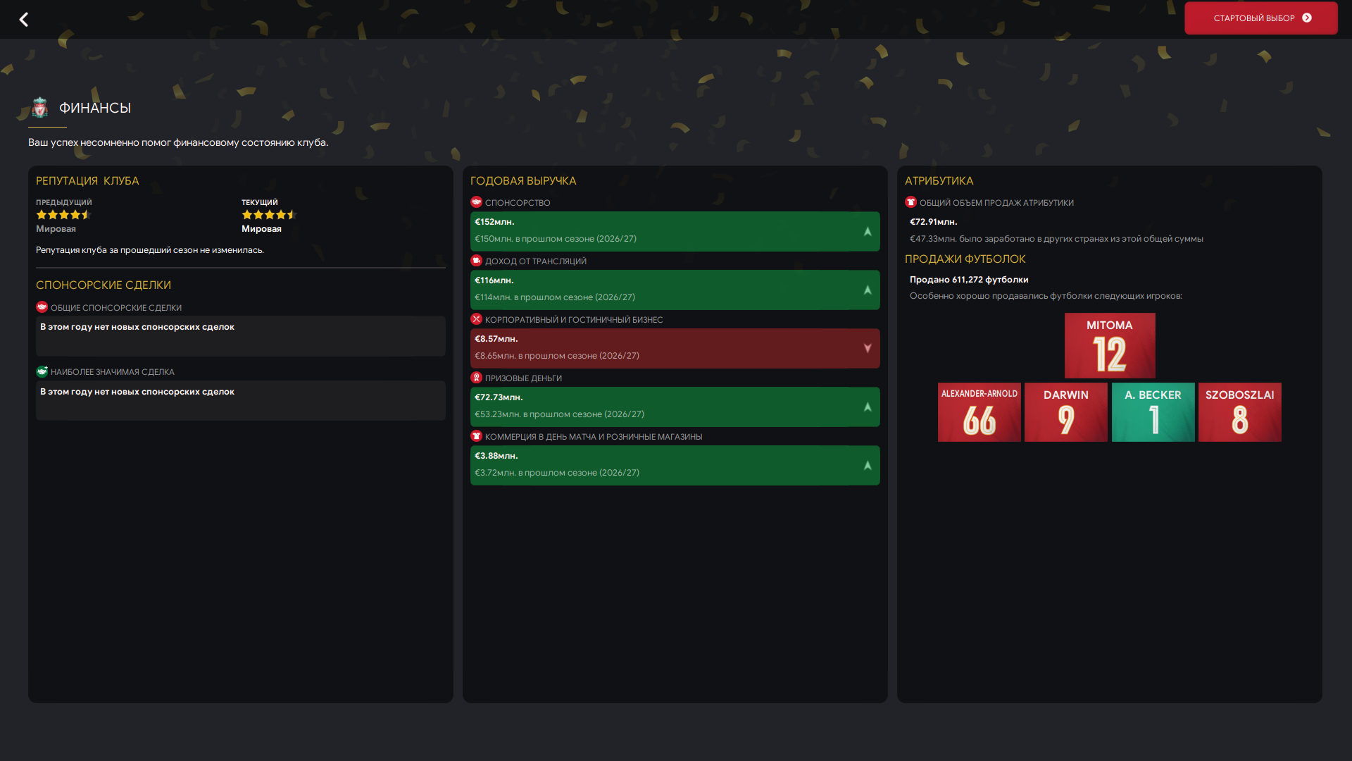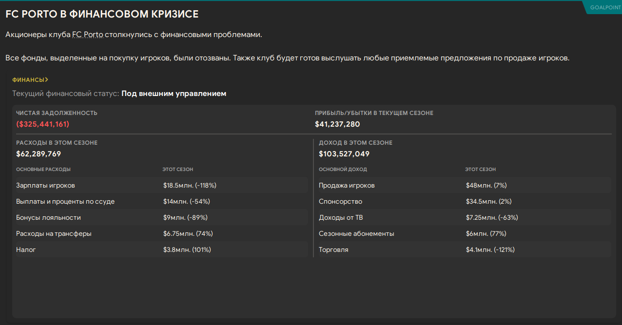 В клубе не очень финансовое положение, поэтому мы получили только 40% от этих сделок в бюджет, ну и ладно, главное дыры залатать в нашей копилке, плюс зарплатный фонд облегчили, теперь не горит красненьким.
