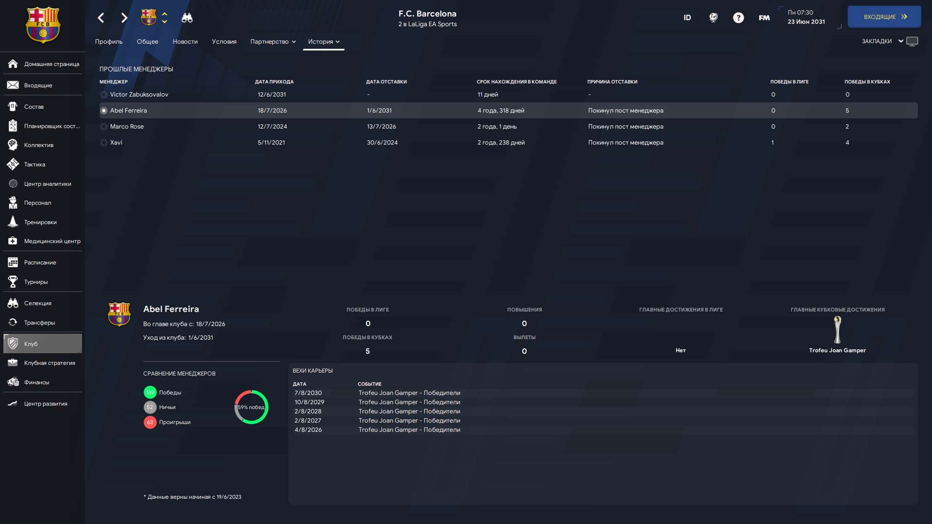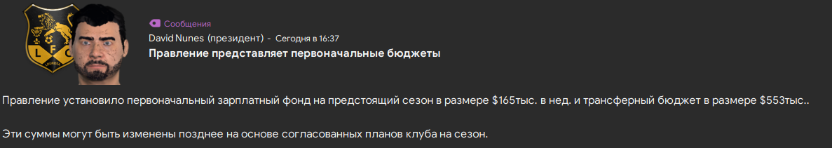 Видел тут недавно типов, которые тоже играют сейвы в Канаде. Расскажу, что у меня во втором сезоне за York United произошло. В общем, всё прошло +- гладко, без проблем выиграл лигу (с 1 места регулярка и две победы в плей-офф), Кубок Канады завалил во втором раунде против Ванкувера из MLS (счёт близкий 2-3). Вроде про местную ЛЧ рассказывал, она перед сезоном была. Там слил Сан-Хосе из MLS. В первом матче пробал, во втором 1-1 героически, но по сумме двух матчей гг. В целом всё очень хорошо. Отметил победу значит, наградили лучшим тренером года, моих игроков там понаграждали, всё круто и классно. И тут моё руководство (которое вогнало в долги клуб, там немного -100к, но всё же) выкатило трансферный бюджет и з/п на сл. сезон... и там жопа. Всего меньше, чем в предыдущем сезоне. Трансферный бюджет придётся весь перевести в з/п и на скаутов, поэтому ничего от него не останется. А запросы у руководство ахунные: выиграть CPL. + к этому уйдут несколько норм игроков с приемлемой з/п, на их место того же уровня придут только с з/п в 2-3 раза выше. Поэтому хз как быть. Сейчас прокручу, мб руководство разведётся на увеличение бюджета или спонсоры какие подъедут. Третий сезон на выживание будет))
