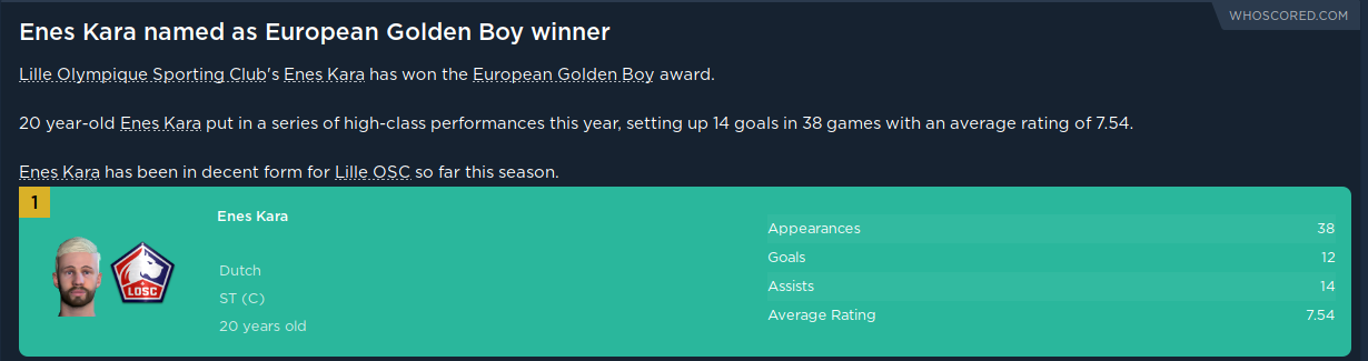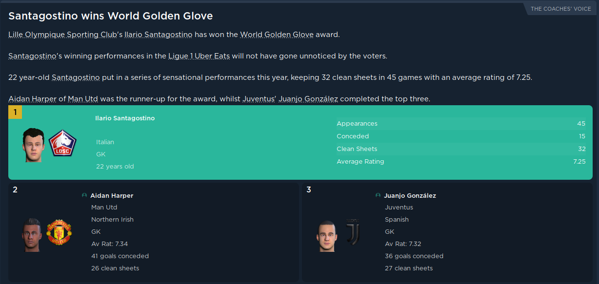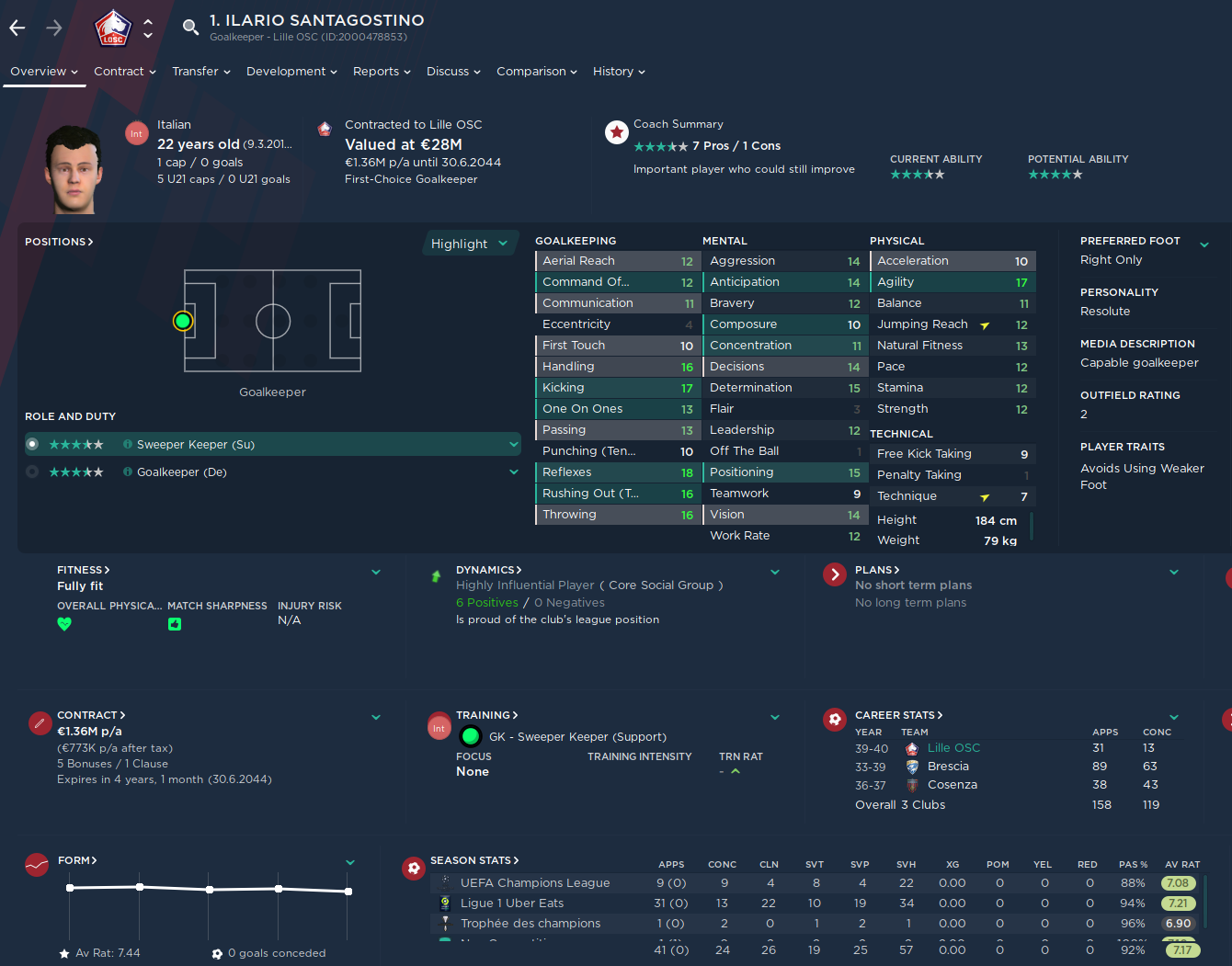 Ну да, так и вышло что ЛЧ взяли ребята c CA ~150. Никаких сюрпризов. Удивлен, что среди игроков, набранных по скидке, оказались такие большие потенциалы. Если японец был хорош с самого начала, то этот немец с ПА 193 весь сезон выходил только с лавки. И охуеть мне повезло с воспитанниками-вратарями...