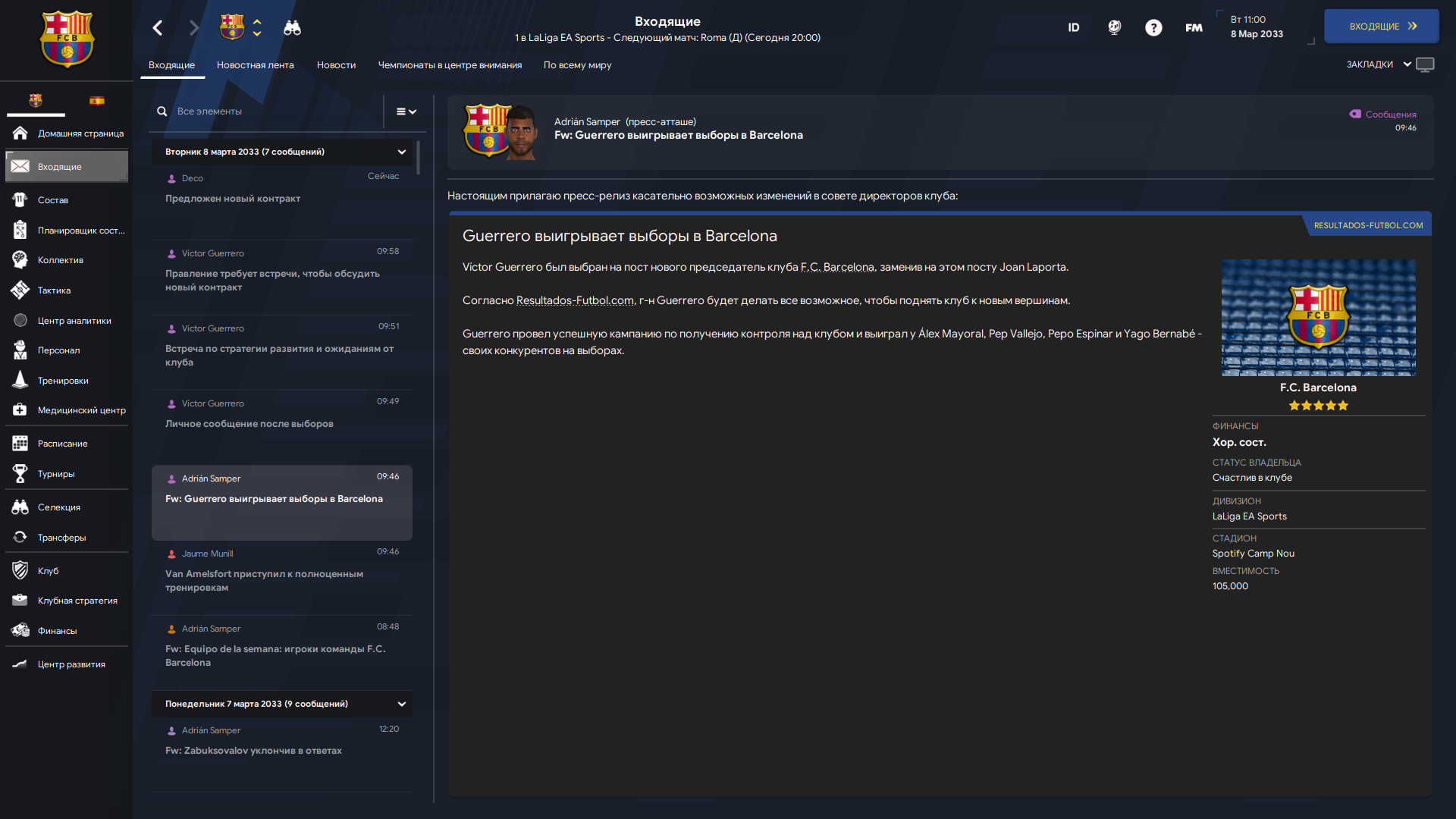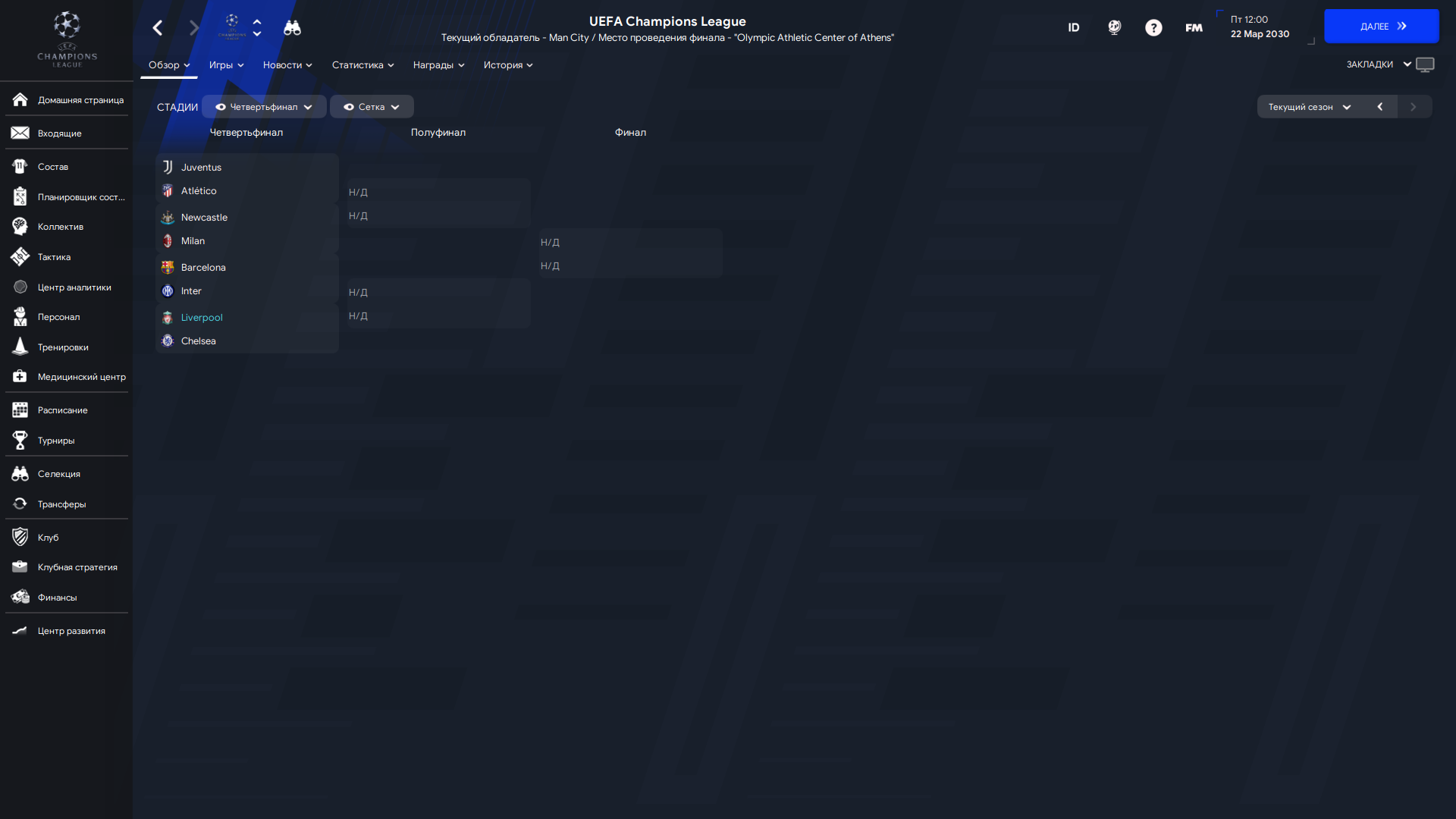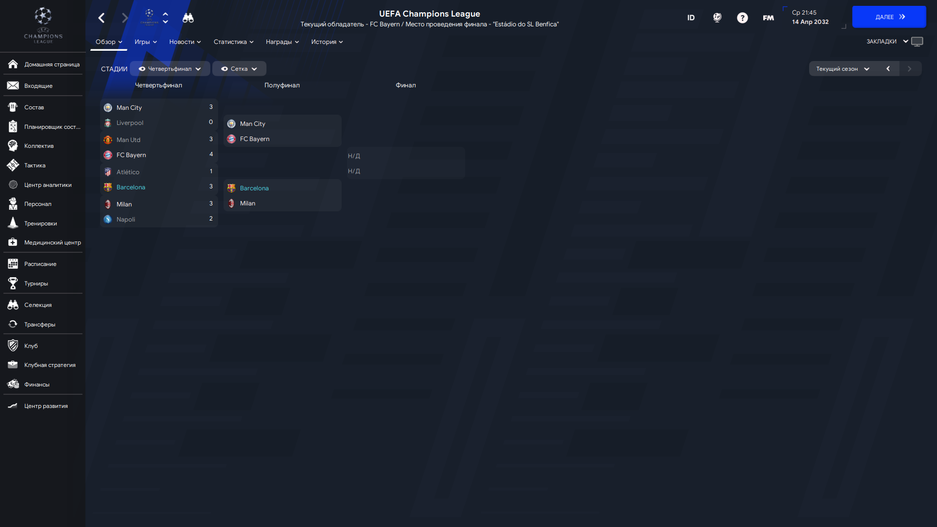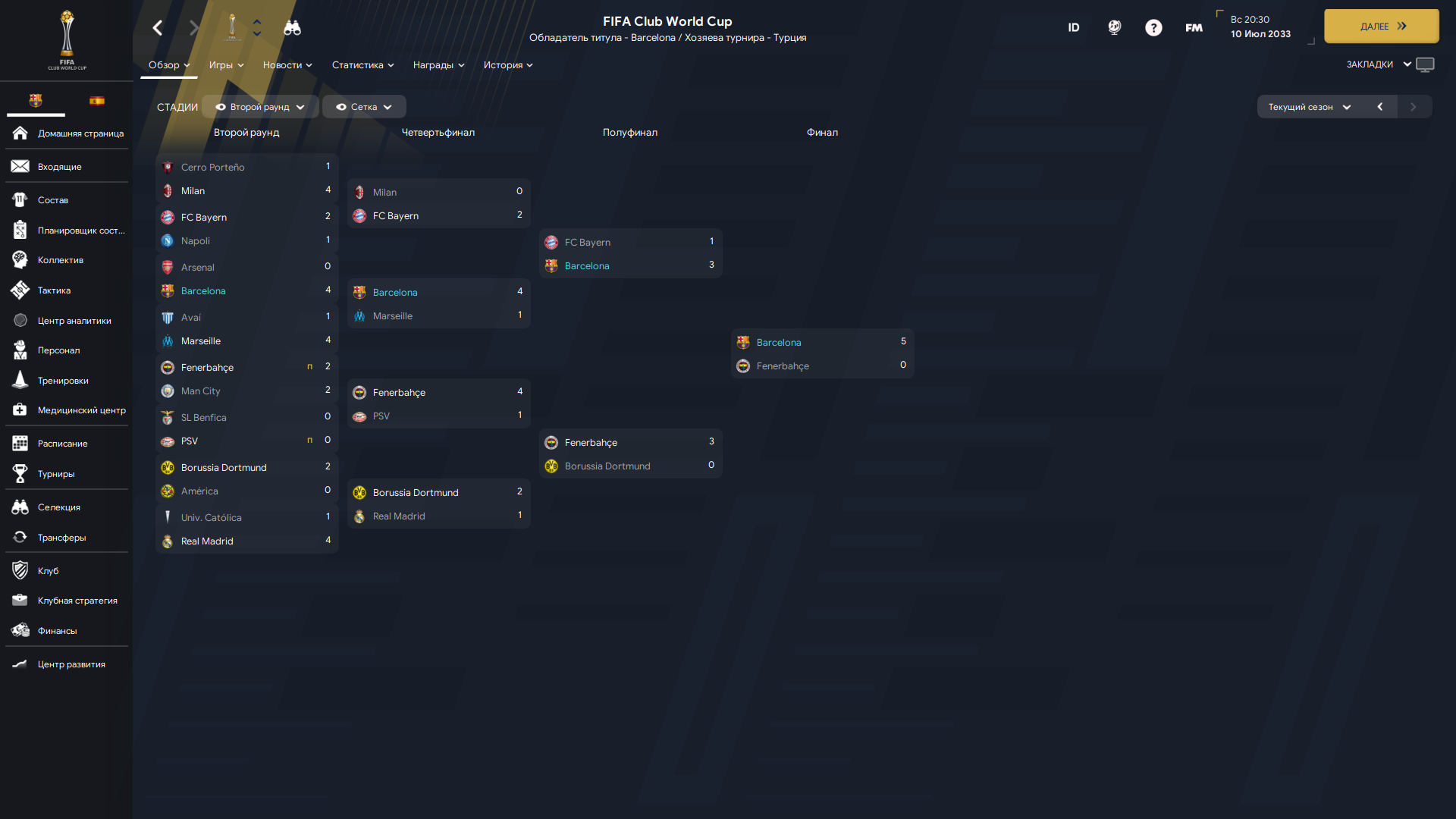 >>3346499 Ставка на проход в 1/8 сработала, получается. Плюс я немного оптимизировал тактики против сильных соперников и местами вышло гораздо лучше. Ну и повезло нарваться именно на итальянские команды. Они куда мягче, чем испанские или английские. Особенно понравился ответный домашний матч против Интера, которым командует Гвардиола. Там же в составе нашелся Руни Барджи. Шведский месси и испанский Гвардиола нашли друг-друга.