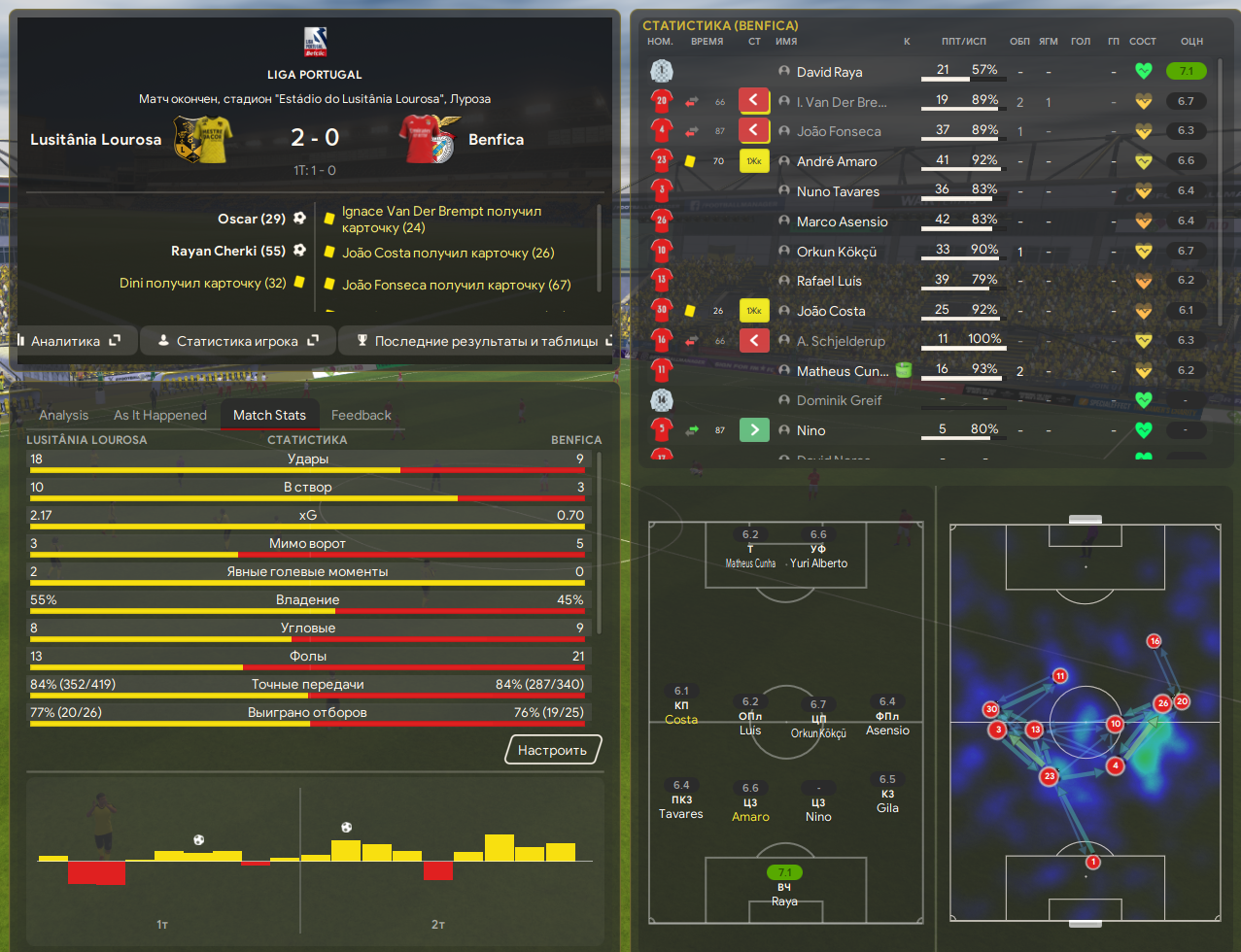 Вопросы к судейке еще есть - хуле у нас так много желтых, если фолов у Бенфики даже больше?..