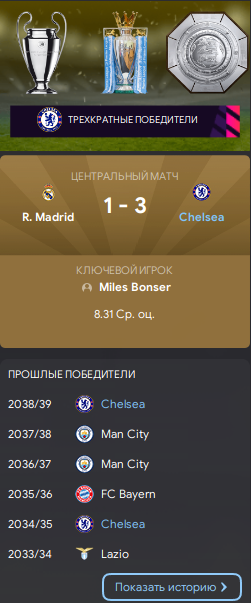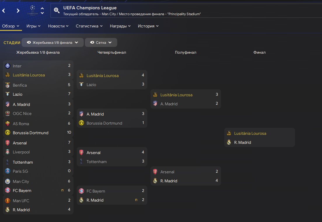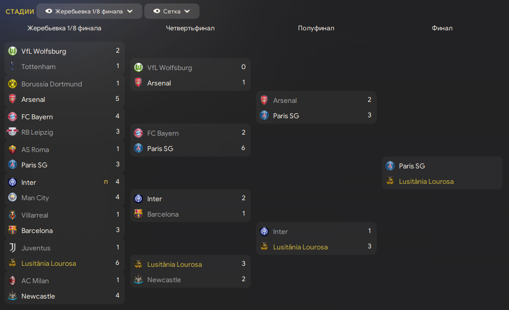 Чет утомила игра за Лурозу и я для разнообразия попылил за Муму. Понравилось что у них со старта долгов на 1.5 лярда и наверное худший состав из команд, претендующих на ЛЧ. Ну ничо, 3 годика отмотал, 2 года подряд сыграл с Реалом в плей-офф, на одной и той же стадии, 2 раза подряд их разьебали (в какой-то момент Реал продавал своего Винисиуса за 100 лямов потому что в Ромбе Папы Карло не было места для этого бездаря. Ливер чуть не купил). В первый год мы не смогли, разьебались об Баварию в первом раунде плей-офф. Во второй год - об МС в полуфинале. В третий год наконец-то смогли выйти в финал против ПСЖопы Луиса Энрике, у которой все еще Мбаппе в составе. Тут уже конечно театр случился, апофеозом которого стали 2 отбитых пенальти от Онаны.