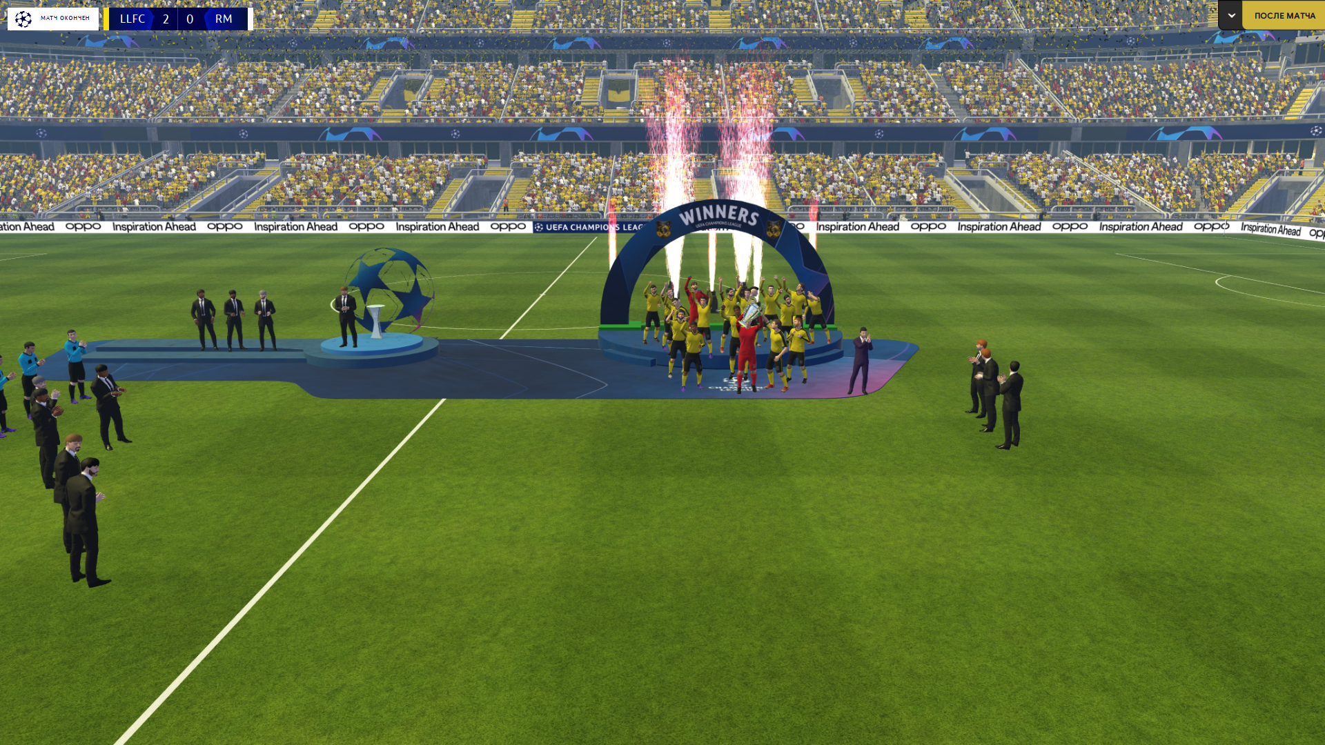 В ЛЧ... Опять играли с ПСЖ. В полуфинале в этот раз. В финале был Реал, против которого играли вдесятером весь матч - удалился Нико Вильямс на 6 минуте за хуевый подкат на Родриго. Даже не сломал его... Я думал уже что команде начинает аукаться отьезд нашего талисмана Андре Обереганы из команды, но к концу первого тайма мы вели 2-0. У Реала пошли жирные моменты только во втором тайме, НО МЕНТАЛЬНЫЕ МОНСТРЫ ИЗ МЮ НЕ ДАЛИ СЛИВОЧНЫМ РЕАЛИЗОВАТЬ ПРЕИМУЩЕСТВО и мы забрали очередного ушастого. Четвертого за 5 лет.