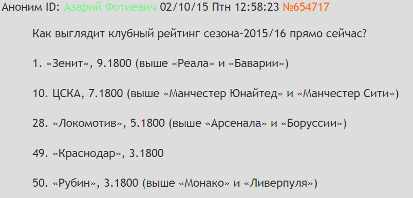 Ты всё мриешь о чемпионстве дерьнамо в обход счётчика?