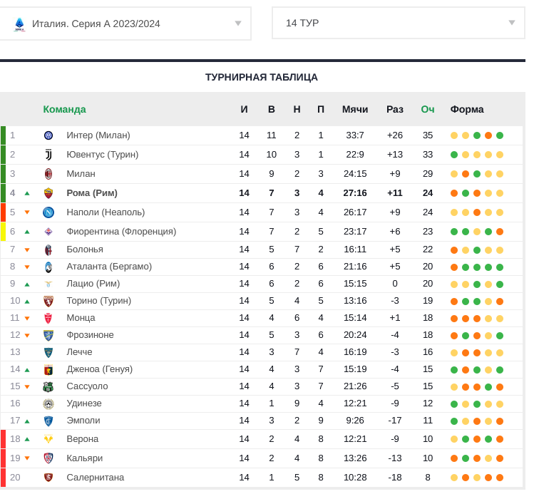 14 января римляне проиграли «Милану» (1:3) в матче 20-го тура Серии А. Сейчас команда занимает 9-е место в таблице, отставание от 4-го места – 5 очков.