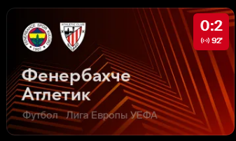 >>3351464 Странноватая штуковина, излишне как-то что ли Типа видеть название команд, время и счёт настолько же важно, как и замены. Другое дело, когда красную карточку показывают - это важно