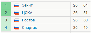 >>3208542 ЧВРП теперь: 1. Нулевая интрига по чемпионству 2. Нулевая интрига всех остальных мест — никаких еврокубков. 3. Нулевой интерес на трибунах из-за фануйди, болел нет, будто тренировку смотришь питерские льготники не в счет.