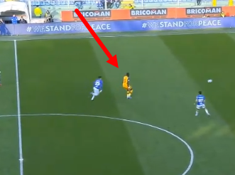 вот тут: >>3410037 очевидный проеб защищающихся, они в 4 побежали накрывать 1-го игрока, тут нет никакой заслуги атакующего, это просто локальная ситуация на поле, которая еще и ничем не закончилась, более того игрок синих с мячем завозился и пролюбил две возможности отдать передачу, сначала на ход - потом в дом. Пока он возился и крутился три игрока белых вернулись за линию мяча, в чем профит?