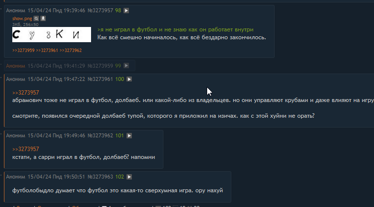 >Не вижу тут никакого приёма. Вижу как дурачок пнул мячик, а тот отскочил от другого игрока, впоследствии он его подобрал. Блядь, чел ты тупой. Я тебе про ситуацию созданную говорю, где мой прием был бы применим, а не про то что там произошло и в каком виде? Шариш? Нет, не шариш. Иди нахуй. Но офк я свою теорию, свое открытие, буду развивать и показывать здесь. Я сказал, если увижу этот момент я опубликую его тут. И ты будешь извиняться(ой нет, не будешь, ты же чсв хуесос)