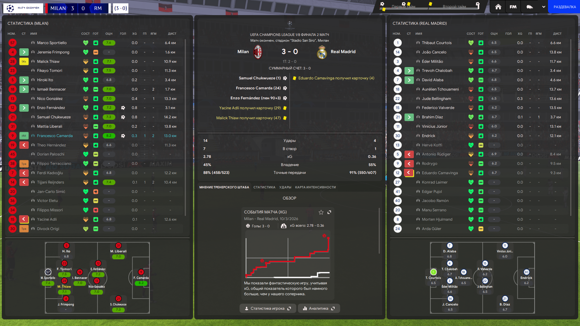 Начал проводить эксперименты. Сейвскамил три игры - с заведомо более сильной командой (условно, я середняк премьер лиги, они чемпионы лиги уже три года подряд), с примерно такой же и с очень слабой. Состав на момент начала матча один и тот же, слова в раздевалке одни и те же, тактики - в общем, всё, сохранение, по сути, перед нажатием кнопки "Начало Матча".