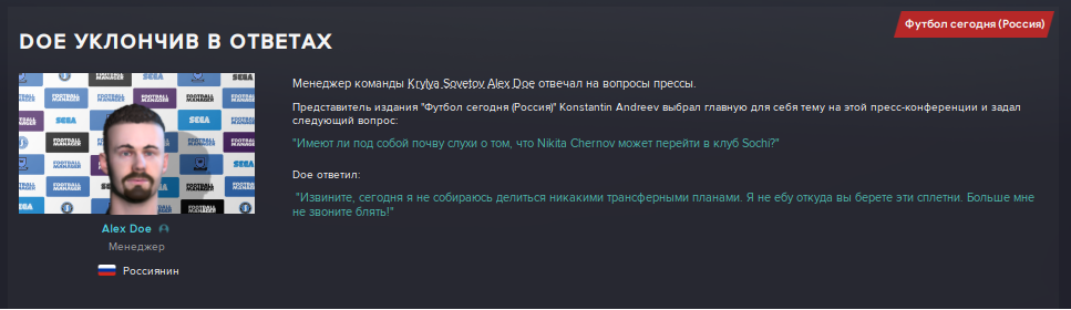 Мне больше нравилось, когда он записывал фм13 за Локомотив или фм20 за Крылья Советов. Первые 2 сезона были классными, потом просто прогонял дни и ныл, что игра не правильно играет.