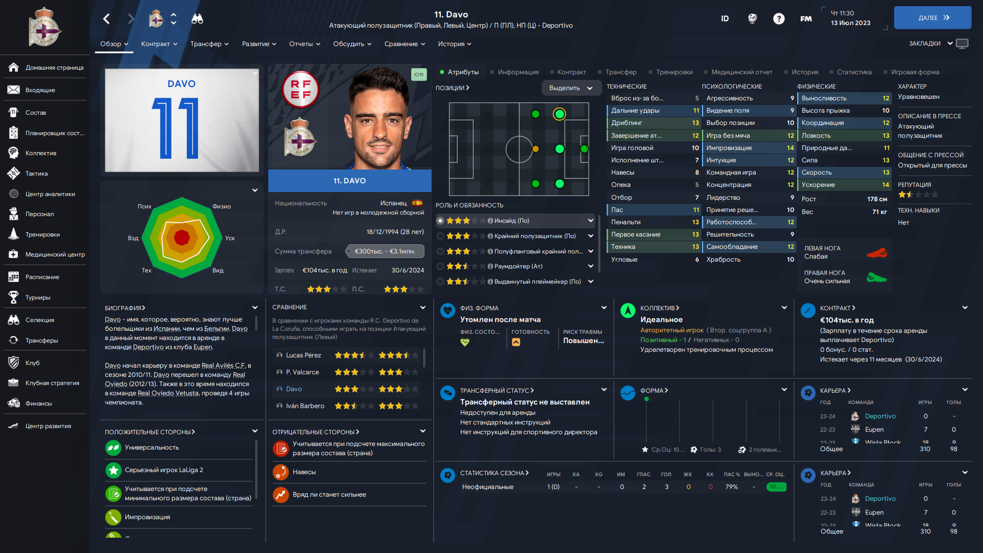 Очень перспективный игрок по мнению фм, воспитанник клуба, крайний полузащитник, надеюсь раскачается - Давид Мелья.