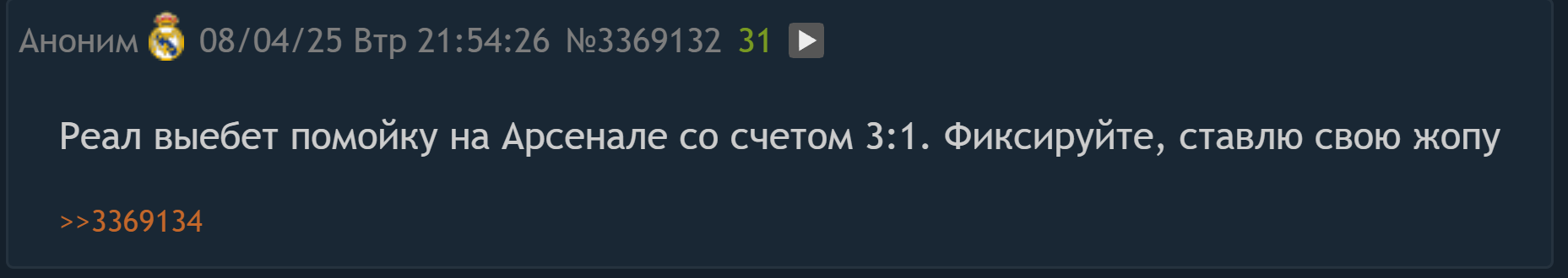 >>3369249 У Арсенала тоже есть бегунки, они будут играть просто -сушить и бить вперёд, а защита у Реала кал, они забить то могут и 3, но то что не пропустят врядли