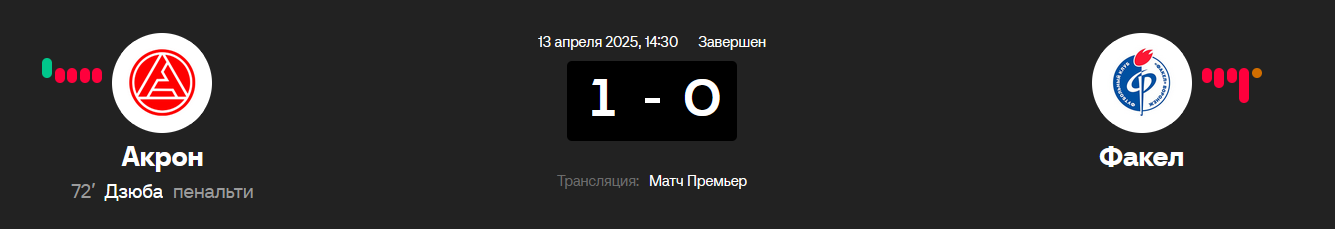 Сегодня, 13 апреля, состоится матч 24-го тура Российской Премьер-Лиги, в котором встретятся тольяттинский «Акрон» и воронежский «Факел».Команды будут играть на стадионе «Солидарность-Арена» в Самаре. Встречу обслужит бригада арбитров во главе с Василием Казарцевым. Стартовый свисток прозвучит в 14:30 мск.